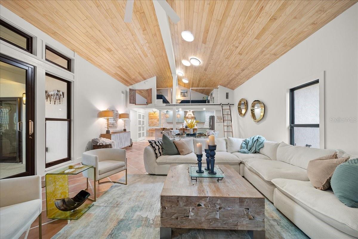 One or more photo(s) has been virtually staged. A Reimagined Gulfside Retreat at Golden Beach. This direct beachfront residence at 718 Golden Beach Blvd #1 redefines coastal living. Encompassing 2,252 sq. ft. with 3 bedrooms, 3 bathrooms, and a loft, the home has been fully renovated with thoughtful detail. Designed for those dreaming of a seasonal getaway or serene year-round sanctuary, this one-of-a-kind condominium lives like a private single-family home while offering the ease of beachfront living. With the Gulf as your backdrop, every moment here feels like a page out of a coastal lifestyle magazine. Inside, elegance meets practicality. Chipped-edge travertine floors guide you to a kitchen with soft coastal tones, new cabinetry, leathered stone countertops, custom pantry shelving, and brand-new stainless KitchenAid appliances with reverse osmosis. The open layout keeps the space as tranquil as the views beyond. The living room unfolds past the kitchen with vaulted Radiata Pine ceilings, terracotta porcelain tile, and a striking wood-burning fireplace. A soon-to-be-installed hurricane-impact picture window frames Gulf sunsets while flooding the room with natural light. Above, a loft accessible by a rolling ladder now has central heat and air, creating a year-round cozy retreat for guests. The primary suite continues the coastal palette with a shiplap accent wall, adorned pendent lights, and sliding doors to the lanai. Directly across from the bed, a new hurricane-rated window is being installed to capture unobstructed Gulf views without leaving your pillow. The ensuite bath has been completely transformed with an oak vanity, granite counters, and a luxurious walk-in shower with pebble stone flooring. A spacious walk-in closet leads to the newly envisioned laundry room, now equipped with a new washer and dryer as well as central heating and air for comfort. Here, large bay windows fill the space with natural light, while a coffee bar, including a wine and beer storage, beverage fridge, and ice maker, creates a space as practical as it is beautiful. A remodeled guest bath features granite counters, new cabinetry, tiled shower, and shiplap. The adjacent bedroom has lanai access and a bright, inviting feel. A third bedroom off the kitchen offers a private suite with full bath, patio entrance, and quick access to the resort-style pool. The lanai seamlessly connects indoors and outdoors—perfect for grilling, laughter, and sunsets. Steps away, the resurfaced pool and private gated beach entrance make relaxation effortless. With few primary residents, Ocean Sands feels like your own enclave by the water. Upgrades include all-new electrical wiring, a brand-new flat roof, and a new elevator in the main building. Offered mostly turnkey furnished with ample parking, it’s move-in ready. The remodeled storage room with built-in cabinets and an outlet can easily convert to a golf cart garage. For peace of mind, the home also features updated wiring with an additional breaker panel, a raised AC unit, and a new tankless water heater. Beyond this coastal sanctuary, Venice offers oceanfront dining at Sharky’s or Fins, Paw Park dog beach, boutique shopping, cafés, and farmers markets on historic Main Street. Nearby hospitals, golf, cultural events, and natural parks make every day an adventure. This home is more than a residence—it’s a lifestyle of quiet luxury and coastal ease. Discover why Golden Beach is the epitome of Endless Summer Living. See virtual tours under the facts & features section.