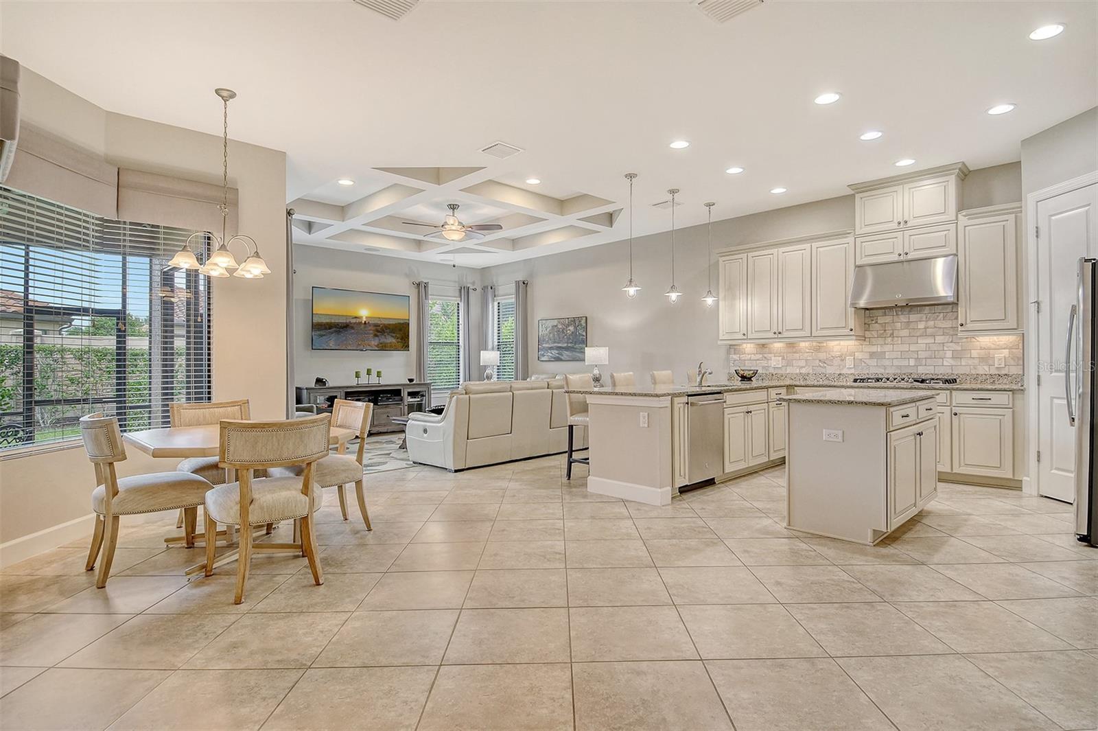 - Eat-in Kitchen, L Dining, Primary Bedroom Main Floor, Split Bedroom, Walk-In Closet(s), Window Treatments