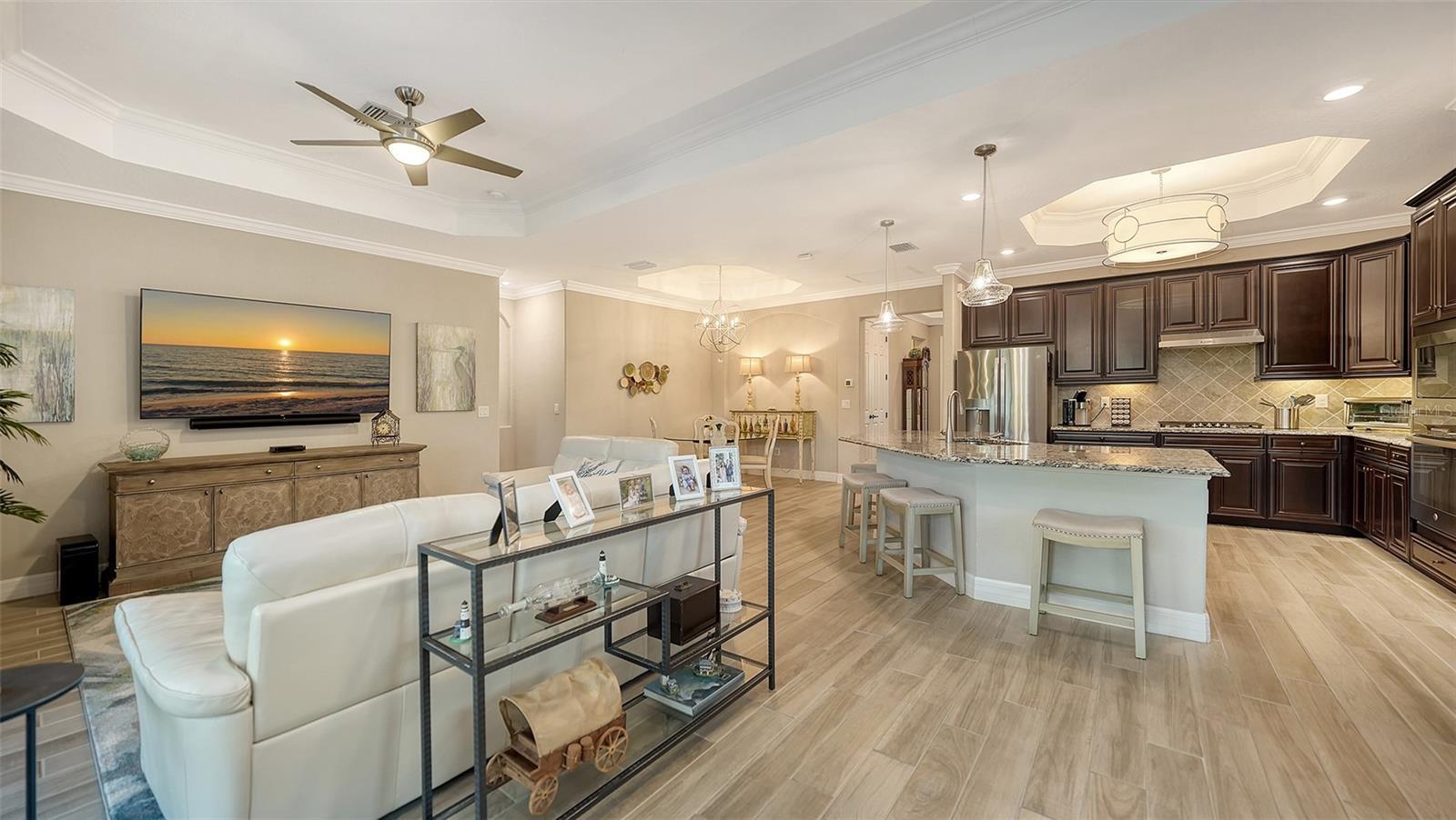 - Crown Molding, Eat-in Kitchen, Living Room/Dining Room Combo, Open Floorplan, Primary Bedroom Main Floor, Thermostat, Tray Ceiling(s), Walk-In Closet(s), Window Treatments
