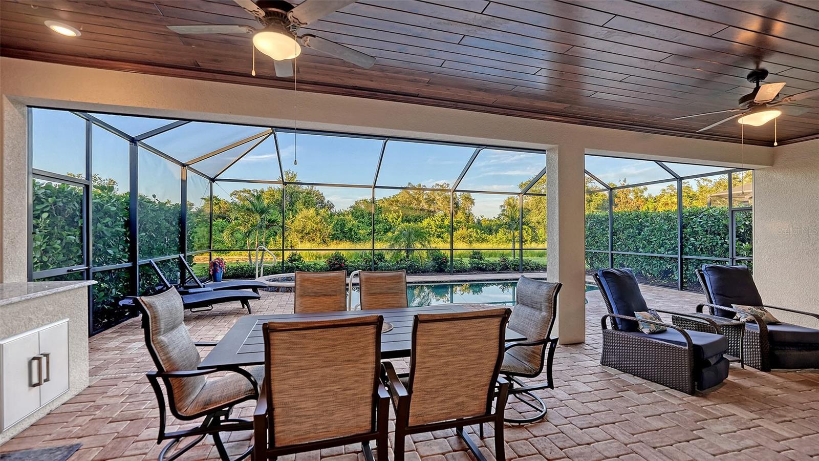 Discover the rarest find in Lakewood National: True RESORT LIVING without the fishbowl effect. Located on a Premium Nature-Preserve lot, this FULLY GOLF-DEEDED home offers total Seclusion and Silence. Say goodbye to early morning mowers and golfers in your backyard—here, your morning coffee is accompanied only by the Sounds of Nature. Designed for those who love to entertain, the heart of the home features a gourmet kitchen with granite countertops and Stainless Steel Appliances that flows effortlessly into a Great Room crowned with elegant tray ceilings. Need extra space? The oversized den is a true standout—large enough to serve as a comfortable Third Bedroom, executive Home Office, or Media Lounge. Step through the sliders to your personal tropical oasis. The expansive screened lanai is an absolute showstopper, featuring a heated pool and relaxing hot tub alongside a full outdoor kitchen perfect for weekend BBQs. Best of all? Powered hurricane screens allow you to secure the patio instantly or create a shaded, bug-free environment at the touch of a button. This home is built like a fortress for total peace of mind. It comes equipped with IMPACT GLASS WINDOWS, Powered Storm Shades on the Lanai, a state-of-the-art Security System, and a Whole-Home GENERATOR, ensuring you are never left in the dark. Your HOA includes membership to the One of the Best Golf Course communities in the country! Enjoy 36 holes of Arnold Palmer-designed Championship Golf, a resort-style zero-entry pool with waterfalls and a TIKI BAR, a full-service Day Spa, 8 clay Tennis Courts, Pickleball, and a brand-new grand Clubhouse with Fine Dining. This is the perfect blend of high-energy Resort Living and private, quiet Luxury.
