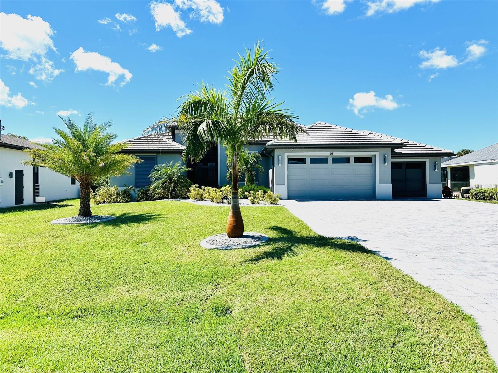 Welcome to this stunning 3-bedroom, 2-bath, move-in ready home in the desirable Rotonda West community. Built just 3 years ago, this single-story residence offers nearly 1,900 sq. ft. of thoughtfully designed living space with a split bedroom layout, soaring 13-foot ceilings, and an open concept that’s perfect for entertaining. The owners spared no expense with the upgrades and selections you'll find here! The coastal-inspired décor and finishes set a relaxed tone throughout, while the upgraded 60-year tile roof, hurricane-impact windows and sliders, garage doors as well as newly installed automatic shutters for the front door & front windows that provide peace of mind. The spacious kitchen, dining, and living areas flow seamlessly to the outdoors, where a heated in-ground pool, covered patio, and paver lanai with screen enclosure invite year-round enjoyment. Overlooking the golf course and surrounded by lush professional landscaping with irrigation, this home is as beautiful outside as it is inside. The primary suite features two walk-in closets, dual vanities, and a large walk-in shower. A 3-car garage adds convenience and storage, making this home as functional as it is stylish. The Kitchen boasts stainless appliances, large island, complete with a walk-in pantry. The laundry room includes the washer and dryer along with a large sink. Rotonda West is a charming and established Golf community on Florida’s southwest coast, nestled in the scenic Cape Haze area. With 26 miles of canals, 5 Golf Courses, Miles of Trails for walking and biking, Park, abundant wildlife, close to sandy beaches, and access to world-class boating and fishing along with plenty of shops and dining options, it’s the perfect place to embrace your Florida Lifestyle.