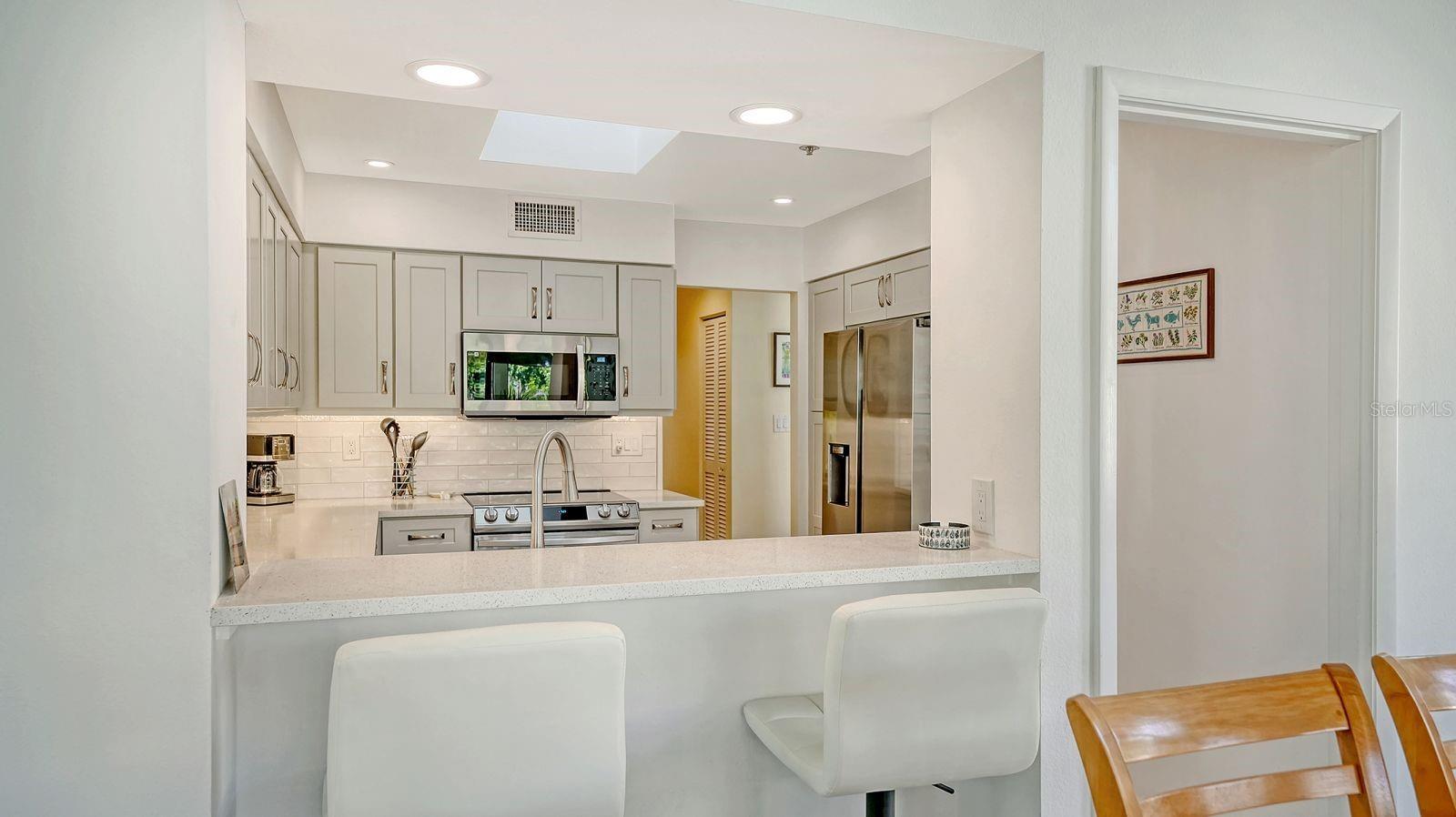Experience the ultimate resort lifestyle—where every day feels like a vacation. Take a refreshing dip in the pool, enjoy a tranquil walk along the bay, or bask in the warm Florida sun on the white sandy beach. This spacious 2-bedroom, 2-bath townhome offers both comfort and elegance, featuring soaring ceilings and an open-concept floor plan. The recently updated kitchen is equipped with all the modern upgrades, making it perfect for both casual meals and entertaining. The guest bedroom includes custom built-ins with ample storage and a convenient desk, ideal for a home office. The primary suite is both roomy and inviting, enhanced by built-in bookshelves and an en-suite bath filled with natural light from a skylight above the tub. Additional highlights include an interior laundry room and an oversized garage with sleek epoxy flooring, easily accommodating 4–5 vehicles. Step out onto your private lanai, where serene views of the community pool create the perfect setting for relaxation and contentment. Located in the prestigious, guard-gated community of Bay Isles, this residence is just a short stroll to shopping and the newly opened St. Regis Resort. Community amenities abound, including tennis courts, a fitness center, and onsite management. Residents also enjoy access to a private beach club offering Longboat Key’s famous white sand beaches, a shaded pavilion, restrooms, and event space. Enhancing this resort-style living, Bay Isles residents may also enjoy memberships at the exclusive Longboat Key Club, featuring a world-class marina, championship golf courses, renowned tennis gardens, and fine dining. This is more than a home—it’s a lifestyle. Welcome to your Longboat Key retreat.