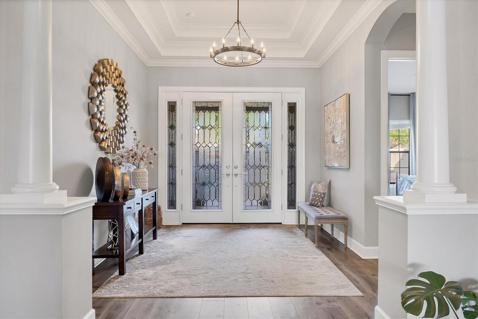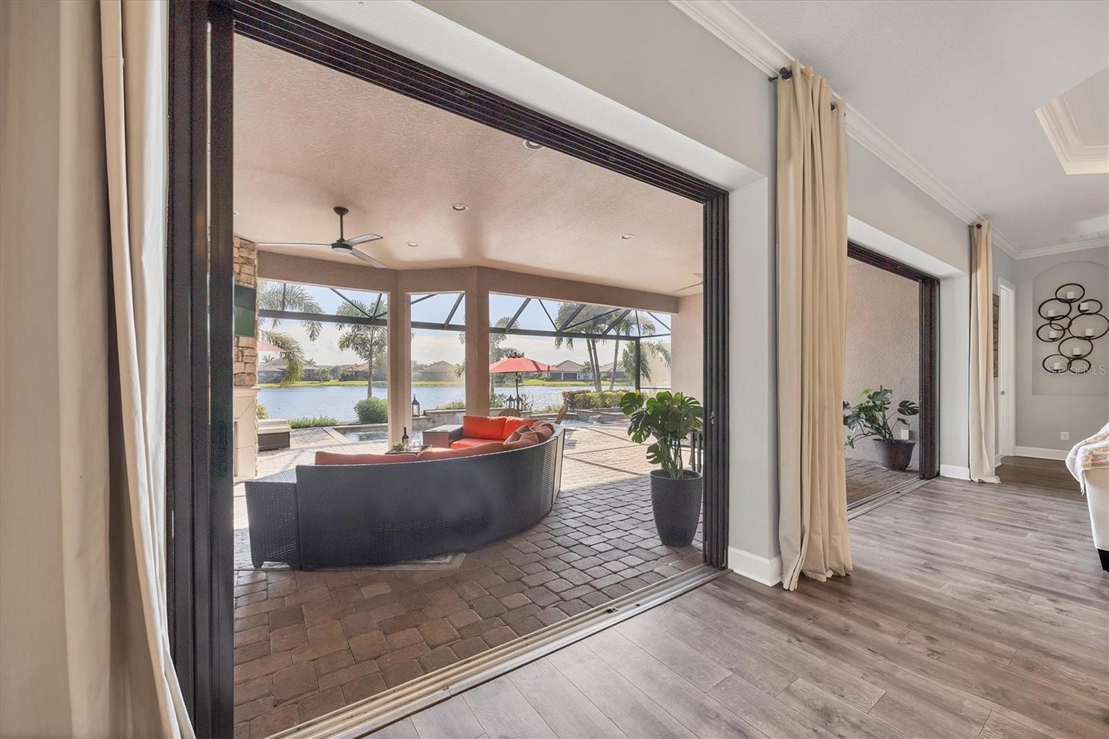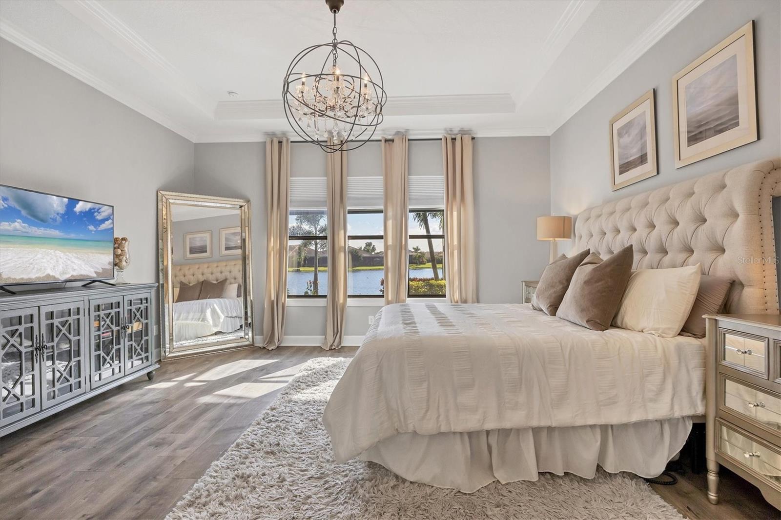 Under contract-accepting backup offers. Embrace the ultimate resort-style living in this stunning water view home, featuring the coveted Pallazio VII floor plan with an added nook. This residence boasts an expansive outdoor living space with a gas fireplace, perfect for both relaxation and entertainment, enhanced by Elevation C with a 4 ft garage extension. With a FULL GOLF MEMBERSHIP included, you can enjoy the best of golf and leisure right at your doorstep! As you enter through the charming, gated courtyard and double doors, you will be welcomed by impressive columns and soaring ceilings that set the tone for elegance. The open-concept great room, adorned with crown molding and bathed in natural light from disappearing pocket sliding doors, seamlessly connects to the lanai with breathtaking southwest facing views of the pool and outdoor oasis. The upgraded gourmet kitchen is a chefs dream, featuring stainless-steel appliances including Quartz Cambria countertops, a 36-inch natural gas cooktop, and a built-in oven. The oversized island, highlighted by stylish pendant lighting, offers ample storage and is perfect for entertaining or family meals. Enjoy morning coffee in the extended breakfast area, with sliding glass pocket doors that open to the lanai. Retreat to the grand primary bedroom, a private sanctuary complete with a spacious en-suite bathroom featuring dual sinks, a frameless glass shower, and a large walk-in closet. Two guest bedrooms provide comfort and privacy, one with an en-suite bathroom and the other with convenient access to a separate bath. The generously sized study/den, accessible through elegant 8 ft. French double doors, offers versatility for work or can easily be transformed into a fourth bedroom. Step outside to the extended screened lanai, where the expansive paver deck and endless water views invite you to soak up Florida’s sunshine. With a wealth of community amenities, including an 18-hole championship golf course, tennis and pickleball courts, two resort-style pools, and a full-service spa, you will never run out of things to do. Enjoy fine dining at the Barrel House Bistro, or casual meals at the Bahama Bar, along with an active social calendar filled with events. Located in award-winning Lakewood Ranch, you are just moments away from shopping, dining, local farmers? markets, scenic trails, and beautiful beaches. Don't miss your chance to own this meticulously designed home in one of Florida's premier communities, schedule your showing today and step into your dream lifestyle! GREAT ROOM AND PRIMARY BEDROOM LIGHT FIXTURES DO NOT CONVEY.