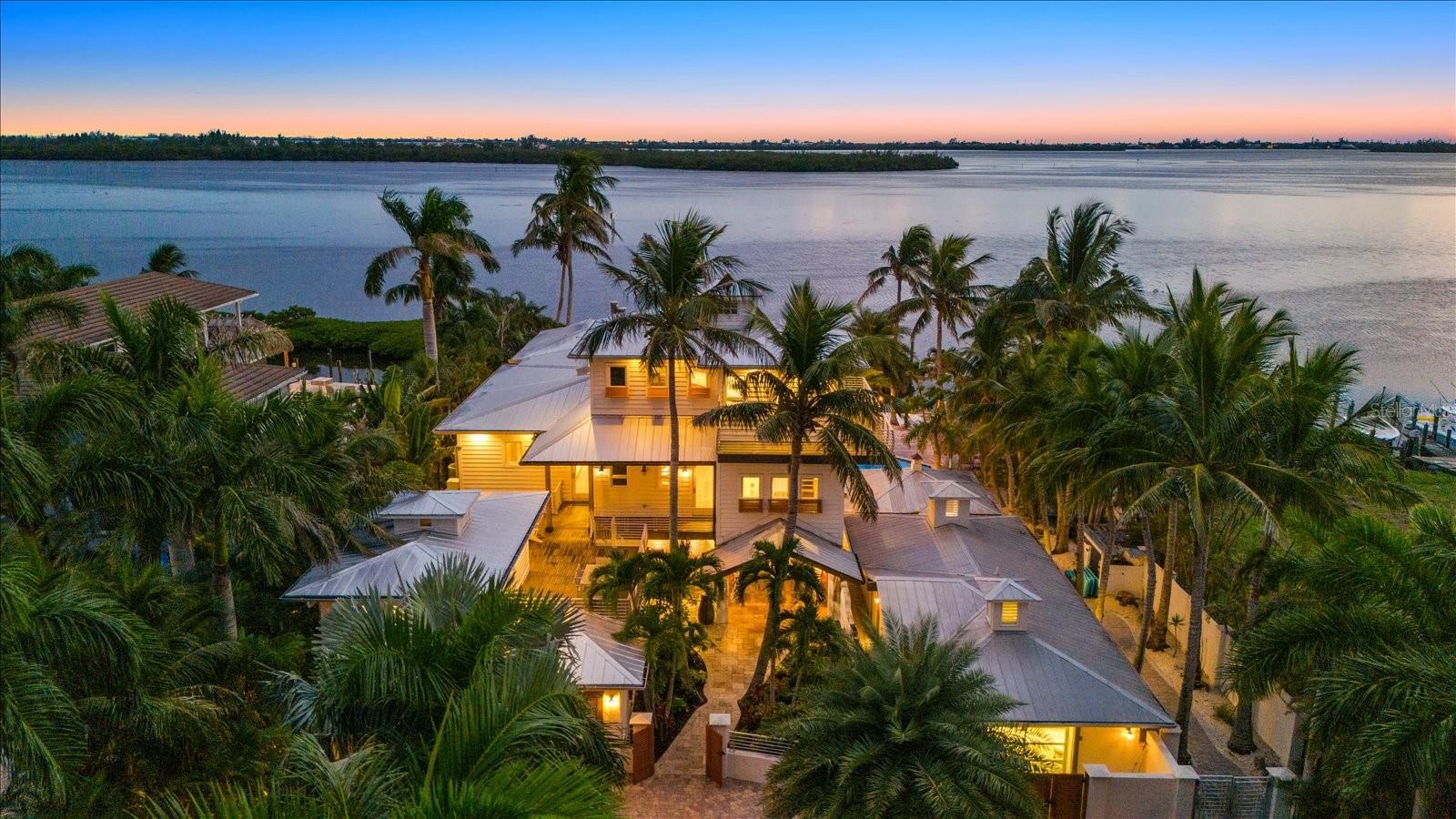 Nestled behind custom gates on nearly 0.83 acres of lushly landscaped tropical grounds, this one-of-a-kind, gated bayfront estate blends secluded serenity with unrivaled luxury. Moments by boat from the Gulf of Mexico, the property welcomes you via a sweeping drive lined with palms, revealing a motor court that provides access to the main residence, a charming cottage, a guest apartment, and the poetic “Owl’s Nest.” Inside the main home, you’ll find an entertainer’s dream a grand great room with a gas fireplace opens to sweeping bay views, accompanied by a chef’s kitchen outfitted with Wolf and Sub-Zero appliances, dramatic built-in wine storage, and a stunning Forno Bravo pizza oven. Custom stone and wood finishes, soaring arches, and elegant moldings underscore the craftsman-level quality throughout. The primary suite is a tranquil retreat with a cozy fireplace and steam shower, while additional guest suites offer comfort and privacy. Outdoors, the property shines with a tiki hut, resort-style freeform heated pool, and a fully equipped outdoor kitchen and living area that beckons relaxing evenings by the bay. Water access here is sublime with approximately 100 feet of protected water frontage, a covered boat lift, expansive dock with charging, all positioned to enjoy daily visits from dolphins and manatees against the backdrop of breathtaking sunsets. Located minutes from upscale shopping, fine dining, and Gulf beaches, this unparalleled compound is not just a home it’s a peaceful, private paradise designed for lavish entertaining, family memories, and luxurious coastal living.