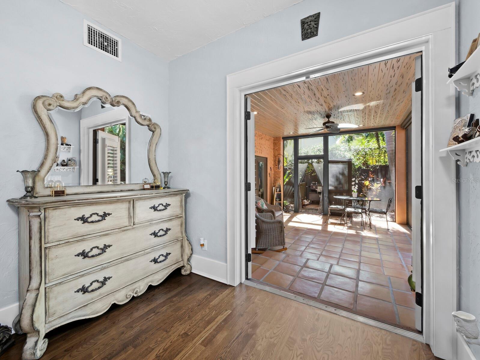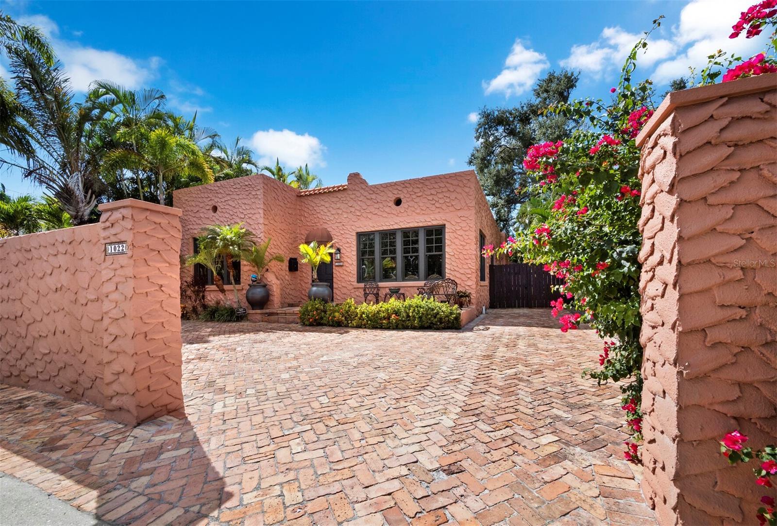 Situated in the highly desirable West of Trail neighborhood of Hudson Bayou, this fully restored 1922 residence is the perfect blend of historic charm and modern conveniences. The property offers 2,284 square feet with two bedrooms and two bathrooms in the main house, plus a one-bedroom, one-bathroom guest house. Renovations include a 2006 conversion of the garage into a guest house with a stucco privacy wall and Chicago brick driveway. In 2018, a spacious primary suite with double closets, a large bath, and French doors to a screened lanai was added. High ceilings, oversized impact windows, and refinished hardwood floors (2024) add to the home’s appeal. Recent updates include a recoated roof with a 10-year transferable warranty (2025), A/C (2023), water heater (2024), encapsulated crawlspace with dehumidifier (2024), foundation reinforcement with new support jacks (2024/2025), and hurricane-rated windows. The kitchen and dining area were fully renovated, featuring custom Calistoga cabinetry and designer appliances (2024/2025). Additional features include recessed lighting, custom closets, a Murphy bed, and a natural gas fireplace. A wellness room with an infrared sauna (2025) completes the interior. Exterior highlights include enhanced landscaping, three all-weather sheds, a pergola with natural gas grill hookups, and a serene brick courtyard surrounded by mature landscaping for privacy. The location is unparalleled, with proximity to Southside Village, the downtown Sarasota bayfront, St. Armands Circle, and the world-famous beaches of Lido and Siesta Key.
