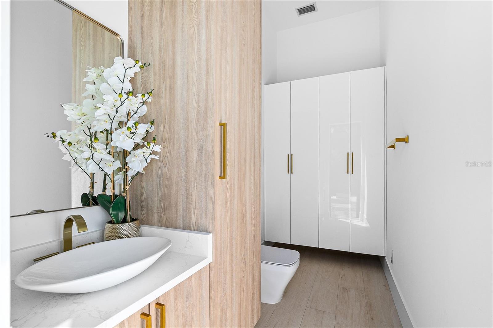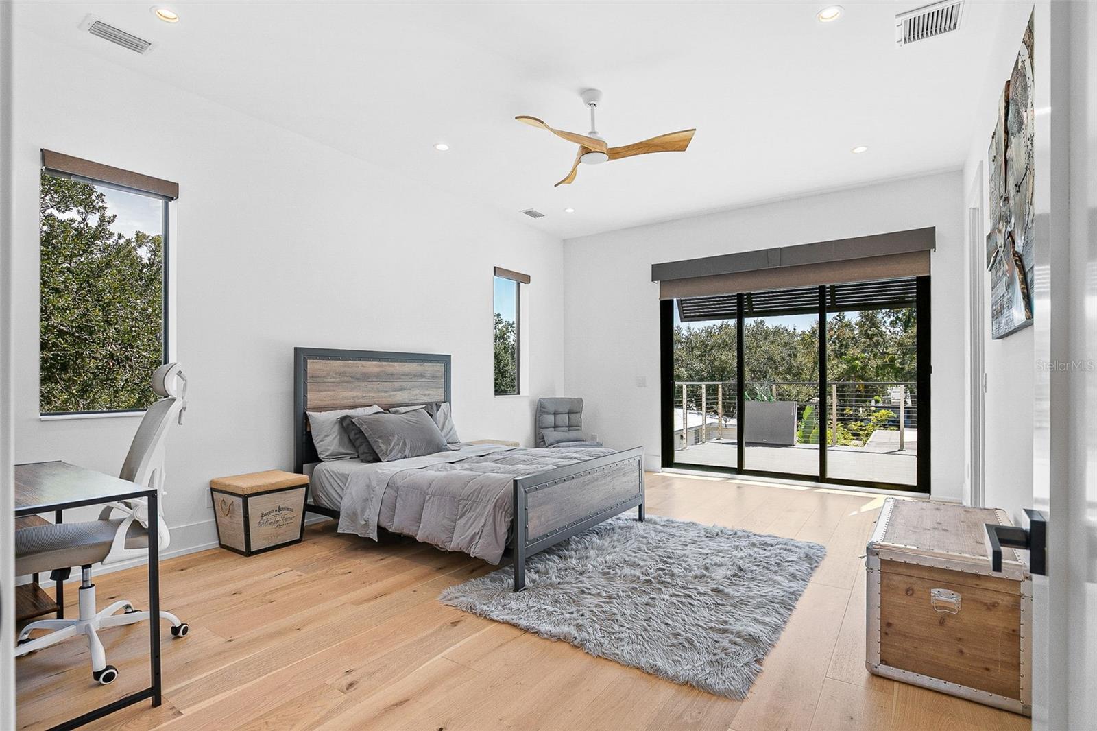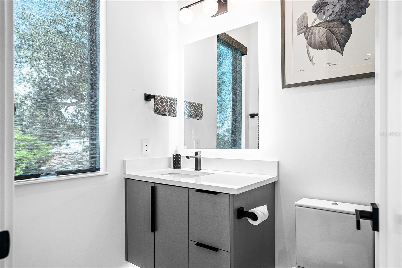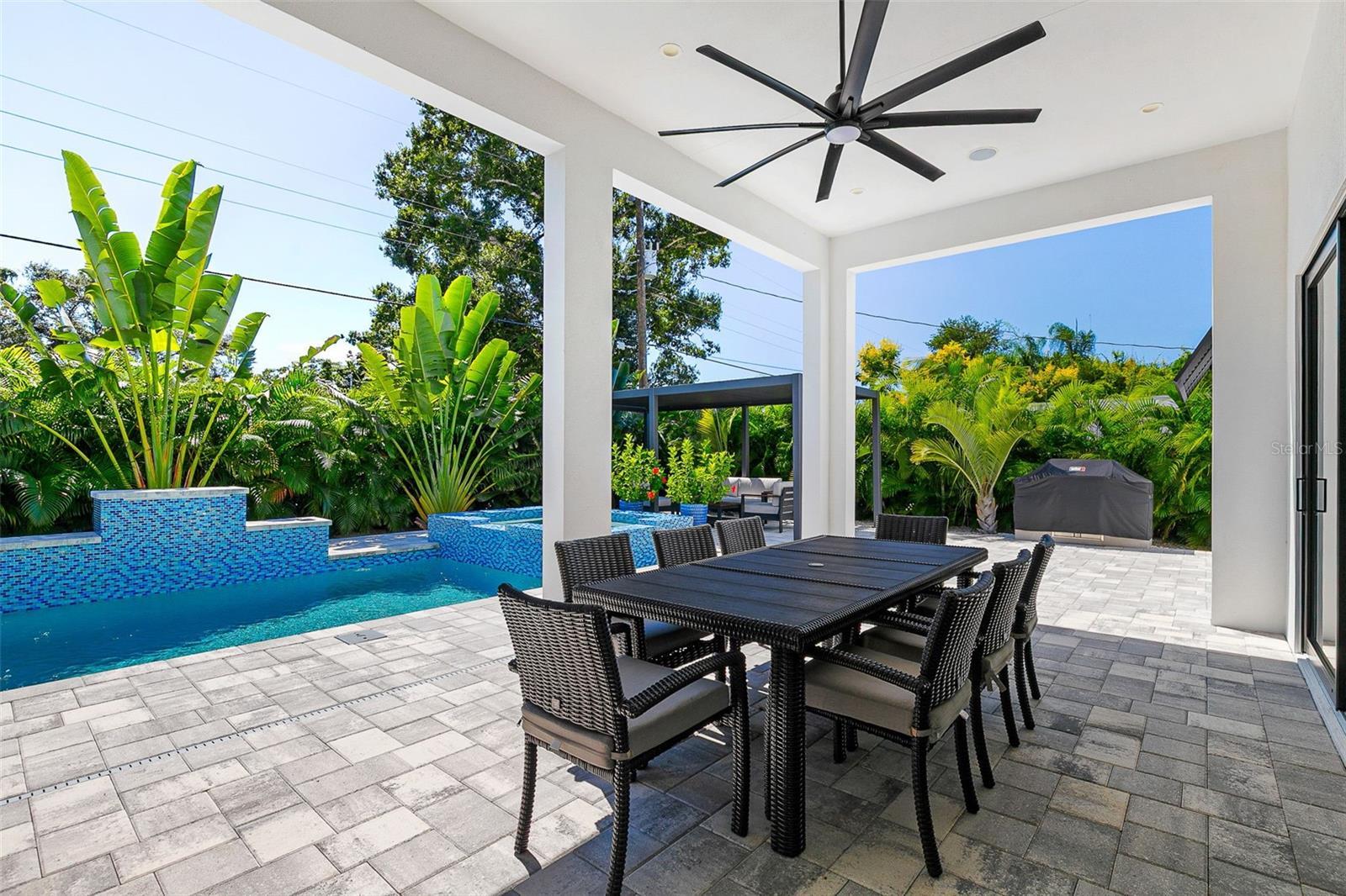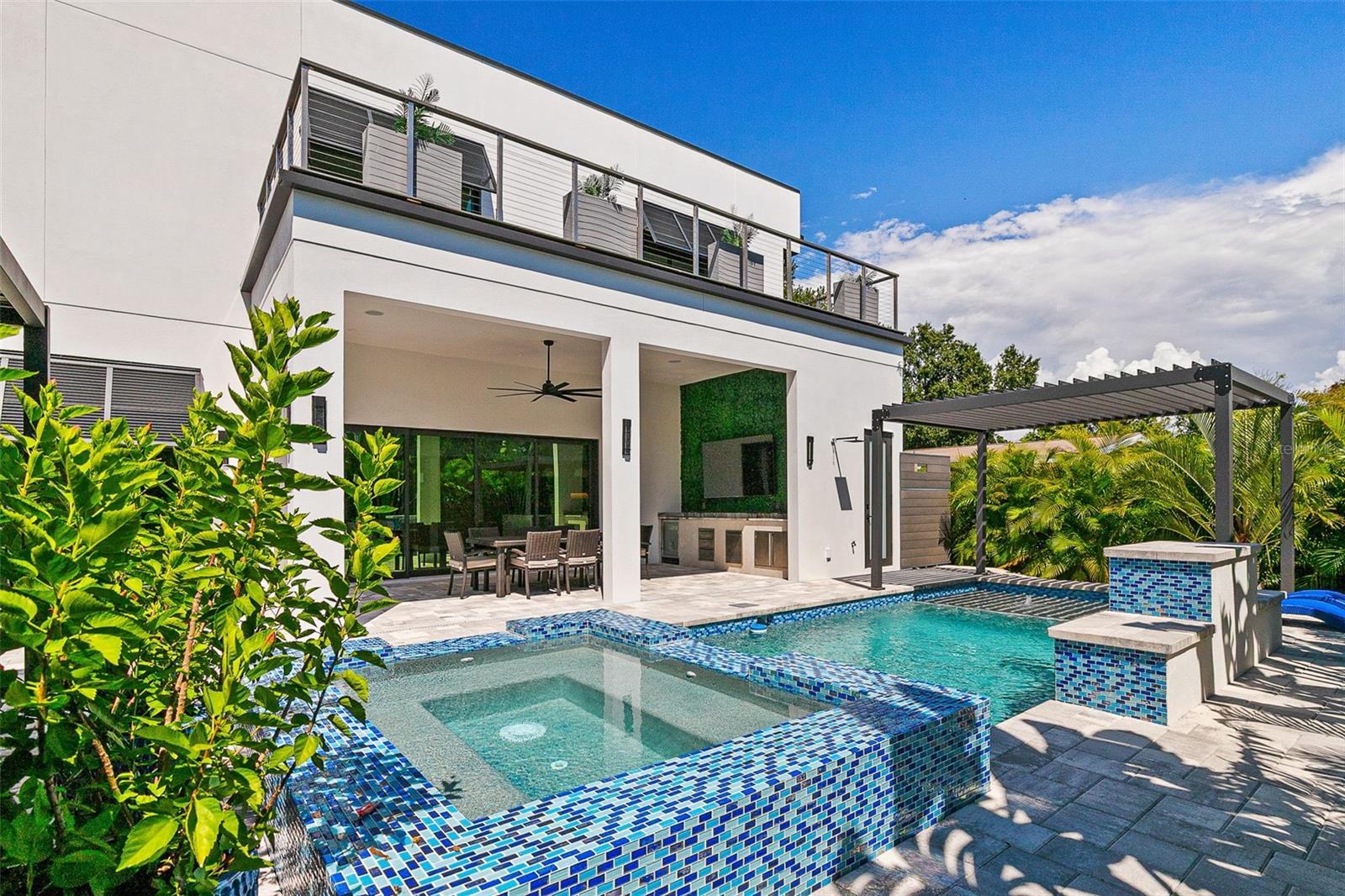 Discover refined contemporary living in this stunning one-year-old single-family residence located in the highly desirable Arlington Park neighborhood. Offering 5 bedrooms, 5.5 bathrooms, and 3,651 sqft under air (4,581 sqft total), this home blends modern design with everyday functionality. Step inside to soaring 12-foot ceilings on the first floor, where a spacious foyer and striking staircase set the tone. The expansive living room flows seamlessly into the gourmet kitchen, featuring solid wood cabinetry, quartz countertops, Thermador appliances, and an oversized island—a perfect setting for entertaining. A beautifully designed built-in in the living area adds both elegance and utility, while a bright office overlooking the front yard completes the main level. Upstairs, 10-foot ceilings and hardwood floors create an open and airy feel. A versatile den provides extra living space, while double doors lead to the luxurious primary suite, complete with a private balcony, spa-inspired bath with custom vanities, soaking tub, and oversized designer shower. Each secondary bedroom offers an en-suite bath and walk-in closet, ensuring comfort and privacy. The laundry room conveniently located upstairs between the bedrooms as well as providing extra cabinet space for additional storage. The outdoor living area is equally impressive, boasting a sparkling pool, dedicated pool bath, and outdoor shower. Additional features include impact windows and doors, epoxy-finished two-car garage, exterior lighting, crushed-shell driveway, and a security system. Perfectly situated near Sarasota Memorial Hospital, this home is less than 10 minutes to downtown Sarasota, and just a short drive to Siesta Key, Lido Key, and St. Armands Circle. With thoughtful design and premium finishes throughout, this home is truly move-in ready.