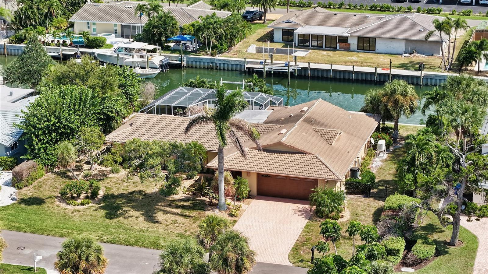 Discover the quintessential Longboat Key lifestyle in this classic masonry beach home located just “3” properties in from Sarasota Bay. Boasting 110 feet of canal frontage, your own private dock, a 7,500 lb. boatlift to complement this classic waterfront treasure it offers direct access for boating, fishing, and kayaking, with frequent visits from playful manatees and dolphins right in your backyard canal. The thoughtfully designed 2,000+ square foot split floor plan provides exceptional privacy with 3 bedrooms and 2 baths, ensuring guest suites are comfortably separated from the primary living spaces. The “secret” closet delivers a private office space for when you need to work or plan your next boat trip down the ICW. At the heart of the home, an expansive great room and dining area showcases a wine captain, wet bar, and large refreshment cooler—perfect for hosting unforgettable gatherings while enjoying views of the shimmering enclosed pool and water views of your canal beyond. The chef's kitchen is a culinary masterpiece featuring high-end stainless-steel appliances, built-in ovens, microwave, trash compactor, custom cherrywood cabinetry, separate pantry, and elegant stone countertops with a "chef's prep" island. The layout seamlessly flows into the family room, where glass sliders invite refreshing bay breezes and open to an entertainer's dream: an enclosed lanai, expansive paver patio, and sparkling pool surrounded by multiple seating areas and serene tropical vegetation. Move-in ready with a new HVAC system and generator, this home has been meticulously maintained with numerous upgrades. Please see the attached “Sellers’ Improvement” feature sheet too many to mention…Offered turnkey furnished, it's perfect as either a primary residence or investment property with substantial seasonal rental income potential. The versatile, expansive lot provides endless possibilities to create your ideal waterfront retreat. Situated in the exclusive & sought after neighborhood of Country Club Shores, this property offers an enviable lifestyle just steps from world-class amenities. Directly across the street, you'll find championship golf and tennis at the prestigious Resort at Longboat Key Club, along with sugar-sand beaches and fine dining venues that define the resort experience. The location provides the perfect balance of tranquility and convenience—just minutes to St. Armands Circle, where upscale shopping, eclectic art galleries, and acclaimed restaurants await. Beyond these attractions, Longboat Key offers an array of recreational and cultural experiences, all easily accessible from your doorstep. As a Country Club Shores resident, you'll enjoy exclusive private beach access for only $100 in annual HOA dues—an exceptional value that enhances the already remarkable lifestyle this address provides. Whether you're seeking a year-round sanctuary or a seasonal escape with strong investment potential, this is a rare opportunity to embrace the coveted Longboat Key lifestyle. Schedule your private showing today and discover why this barrier island paradise is one of Florida's most treasured destinations. Come live the dream today & just move right in, it’s all here waiting for you !