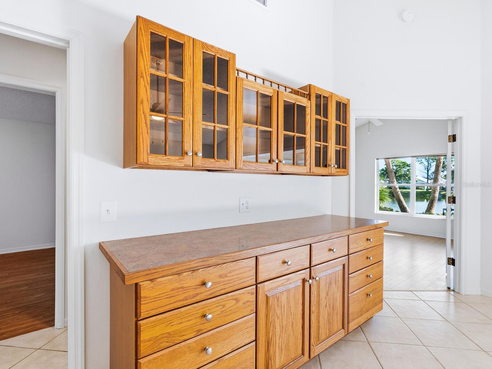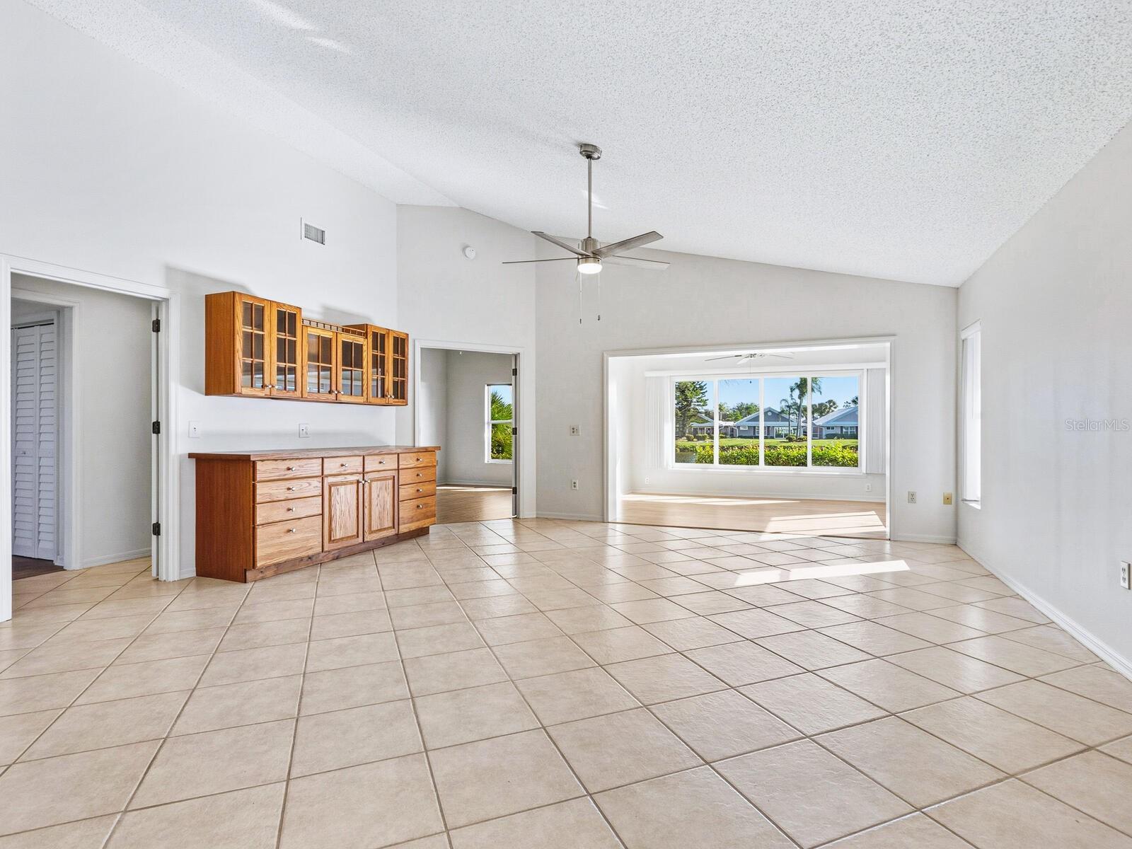 - Built-in Features, Ceiling Fans(s), Eat-in Kitchen, High Ceilings, Living Room/Dining Room Combo, Primary Bedroom Main Floor, Split Bedroom, Walk-In Closet(s)