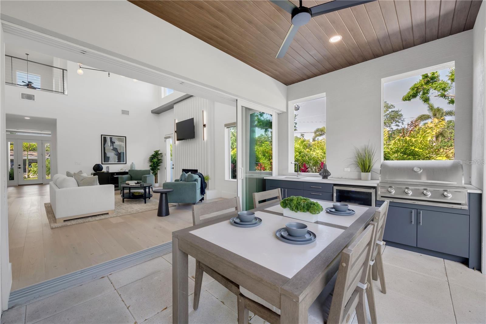 Under contract-accepting backup offers. Nestled West of the Trail and just steps from Southside Village, this stunning New Construction 2-story luxury home offers the perfect blend of location, design, and lifestyle. Positioned between Siesta Key’s world-famous beaches and Downtown Sarasota, you'll enjoy easy access to the city’s best dining, shopping, and cultural attractions—all within minutes. Designed with modern elegance, the home features 5 bedrooms, 5 full bathrooms, and 3,595 square feet of thoughtfully crafted living space. Additionally, there is a large bonus room for an office or gym, an upstairs second living room area, and several balconies to enjoy. From the grand 20-foot ceilings in the main living area to the floor-to-ceiling windows that flood the interior with natural light, every detail has been curated for style and comfort. Light-tone engineered hardwood floors flow throughout the home, with a herringbone pattern in the foyer. The gourmet kitchen is outfitted with GE Cafe appliances, quartz countertops, and custom cabinetry, flowing seamlessly into the open living and dining areas, with a wine display. Step through glass sliding doors to discover a resort-style outdoor oasis, complete with a covered patio, outdoor kitchen, pool, and hot tub spa, all surrounded by lush landscaping. The first-floor primary suite offers a tranquil retreat with direct outdoor access, a spa-like bathroom, and a generous walk-in closet. Upstairs, three additional en-suite bedrooms and two rooftop decks provide privacy and space for guests or family. This newly built residence offers peace of mind with the latest in building codes, energy efficiency, and storm protection. Modern insulation, impact-rated windows and doors, and up-to-date mechanical systems translate into lower utility bills, reduced maintenance, and enhanced safety. You’ll also benefit from turnkey readiness—no need for costly renovations or updates. With its prime location, high-end finishes, and indoor-outdoor flow, this home captures the essence of luxury Sarasota living. Rarely do homes become available in this coveted neighborhood—this is your opportunity to own this exceptional property.
