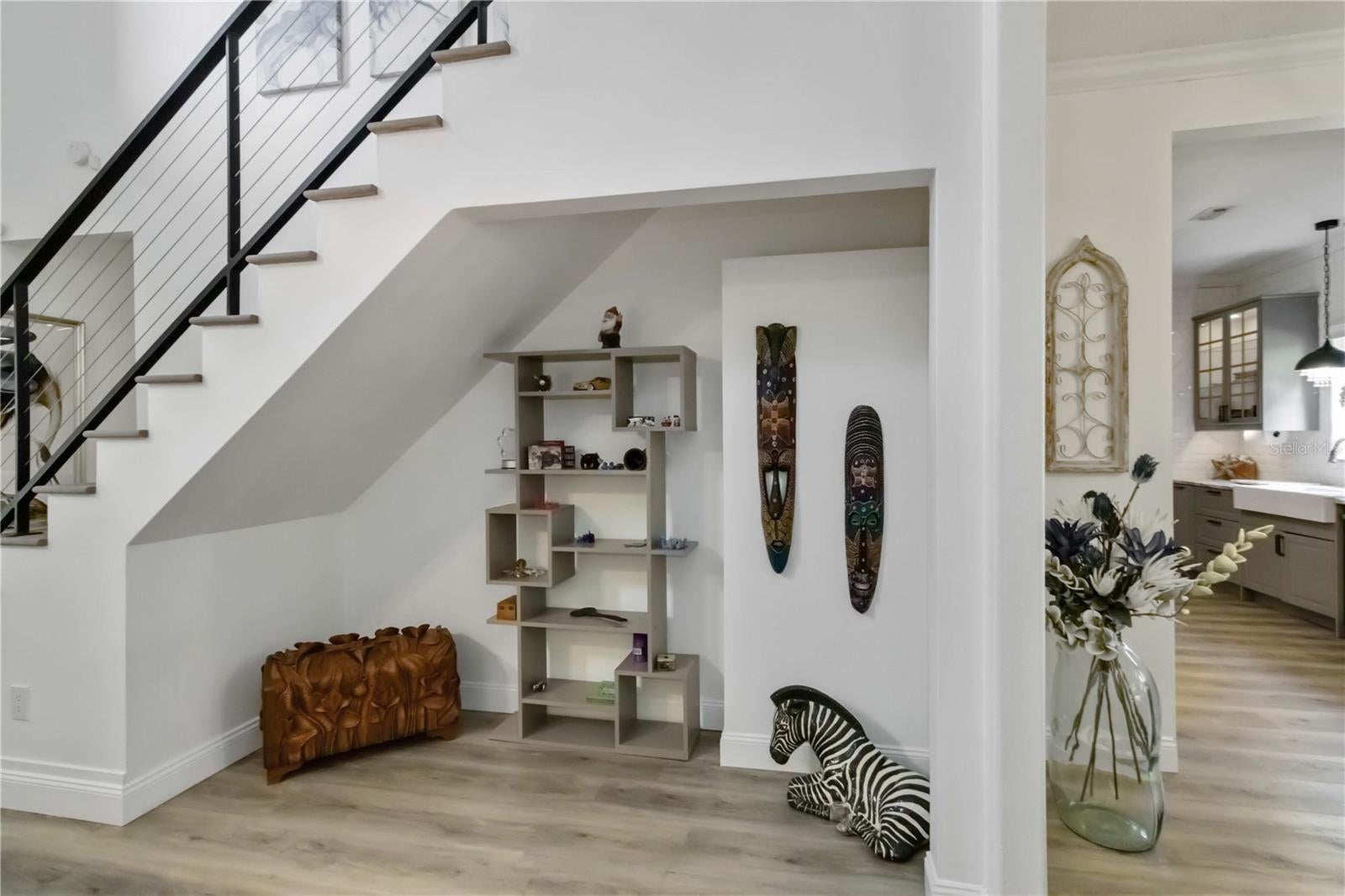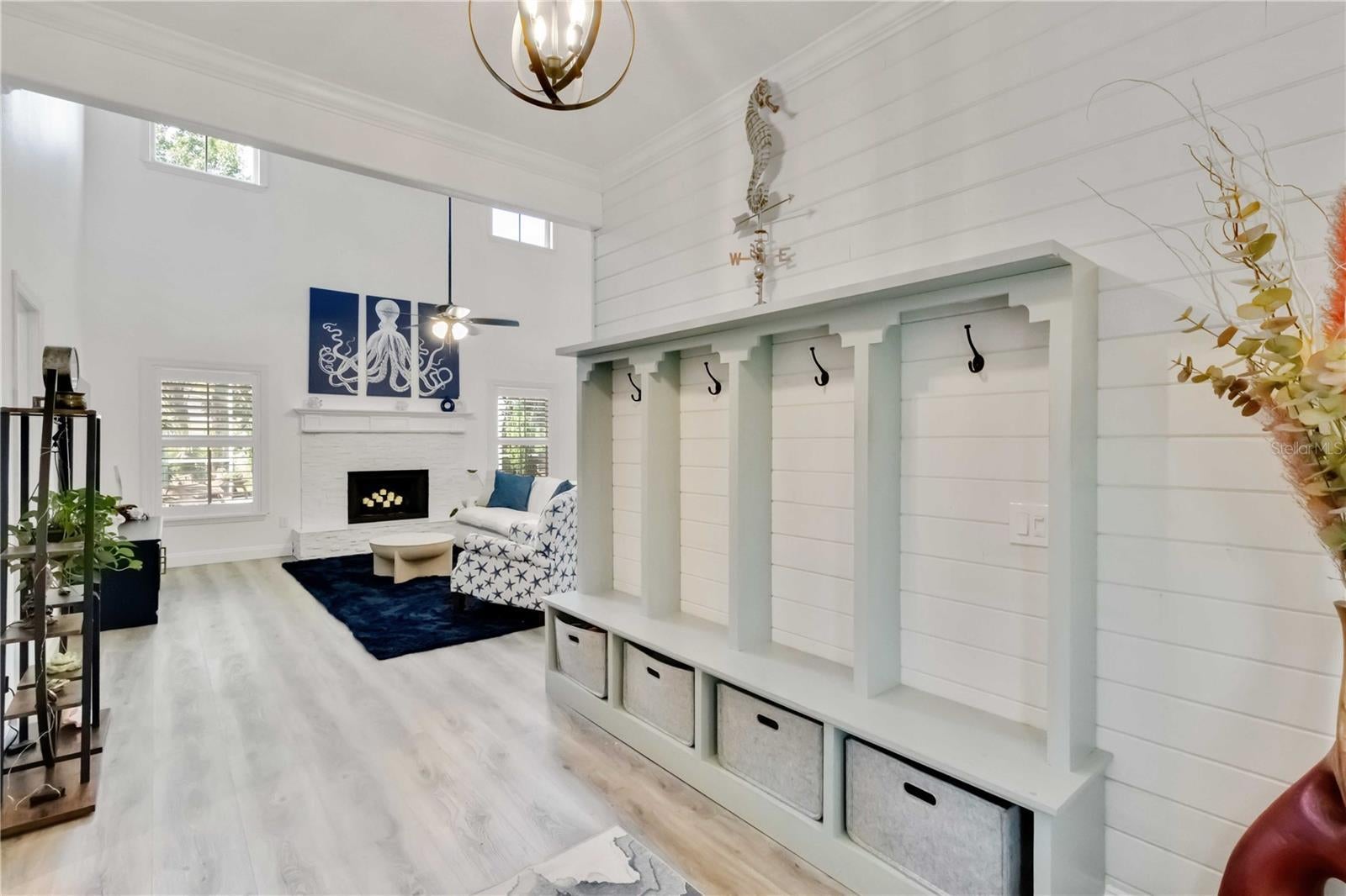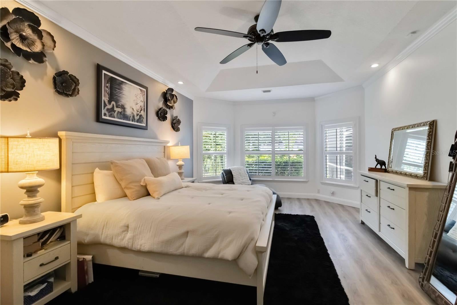 - Ceiling Fans(s), Crown Molding, Eat-in Kitchen, High Ceilings, Primary Bedroom Main Floor, Solid Surface Counters, Solid Wood Cabinets, Split Bedroom, Stone Counters, Thermostat, Vaulted Ceiling(s), Walk-In Closet(s), Window Treatments