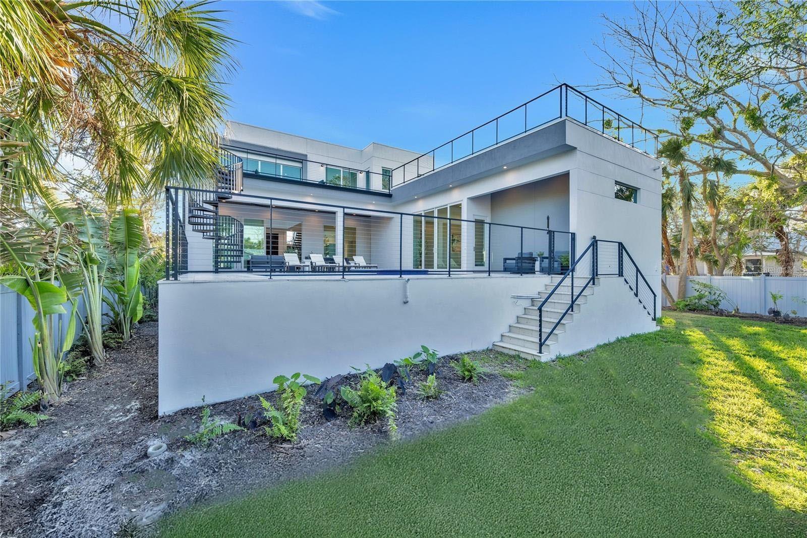 Perfectly positioned in the heart of Siesta Key, this masterfully crafted new construction estate by M&J Pham Development epitomizes modern luxury and architectural brilliance. This ultimate entertainment home provides 3,996 square feet of exquisitely designed living space with 4 bedrooms, 4 full bathrooms, 1 half bath, an office, and an upstairs second living room area. From the moment you step inside, you are greeted by a breathtaking open-concept layout accentuated by soaring 20-foot ceilings, floor-to-ceiling glass windows, and sleek porcelain tile flooring, all bathed in natural light and overlooking the lushly landscaped grounds. The state-of-the-art chef’s kitchen is a masterpiece of both style and function, featuring top-of-the-line Monogram appliances, quartz countertops, custom cabinetry, walk-in butlers pantry, and wine display, seamlessly flowing into the luxurious living and dining areas. Designed for an effortless indoor-outdoor lifestyle, this home boasts multiple rooftop decks, two spacious patios, and a resort-style outdoor oasis complete with a fully equipped summer kitchen, built-in grill, pool, and hot tub spa. The primary suite is a private retreat, offering a tranquil terrace, expansive walk-in closet, and a spa-like ensuite with a soaking tub, glass-enclosed shower, and designer finishes. As you ascend the grand staircase to the upper level of the lavish property, you are greeted with a breathtaking sight of three cozy bedrooms, each with its own private ensuite bathroom and featuring private access to a rooftop deck, creating the ultimate serene escape. A second laundry room is conveniently located upstairs to service the secondary bedrooms. Elevating the home’s sophistication, additional highlights include a electric fireplace, custom walk-in closets, high-end quartz cabinetry, and a private elevator for seamless access to every level. This newly built residence offers peace of mind with the latest in building codes, energy efficiency, and storm protection. Modern insulation, impact-rated windows and doors, and up-to-date mechanical systems translate into lower utility bills, reduced maintenance, and enhanced safety. You’ll also benefit from turnkey readiness—no need for costly renovations or updates. Just moments from world-renowned Siesta Key Beach, fine dining, and premier shopping, this extraordinary residence offers an unparalleled combination of tranquility, elegance, and modern convenience. Your dream coastal retreat awaits—contact us today for a private tour!