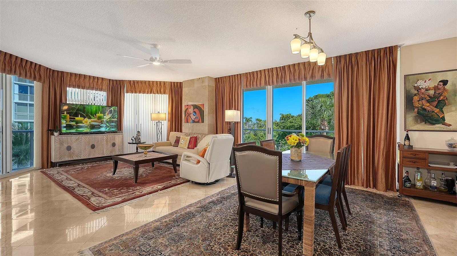 - Built-in Features, Ceiling Fans(s), Crown Molding, Living Room/Dining Room Combo, Open Floorplan, Window Treatments