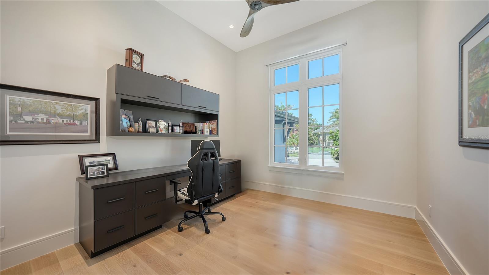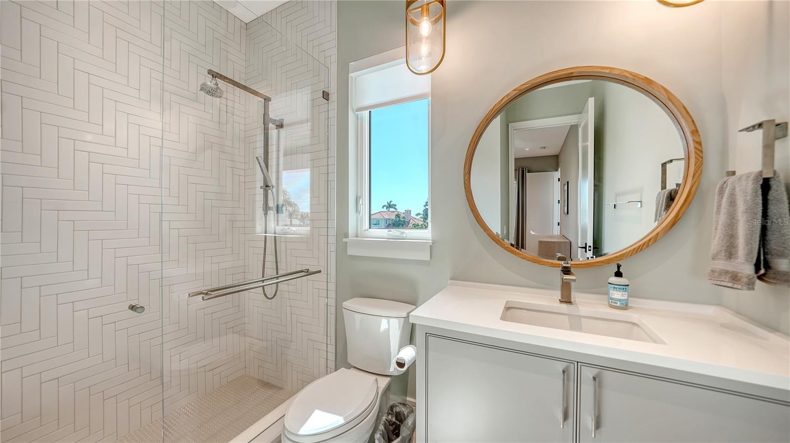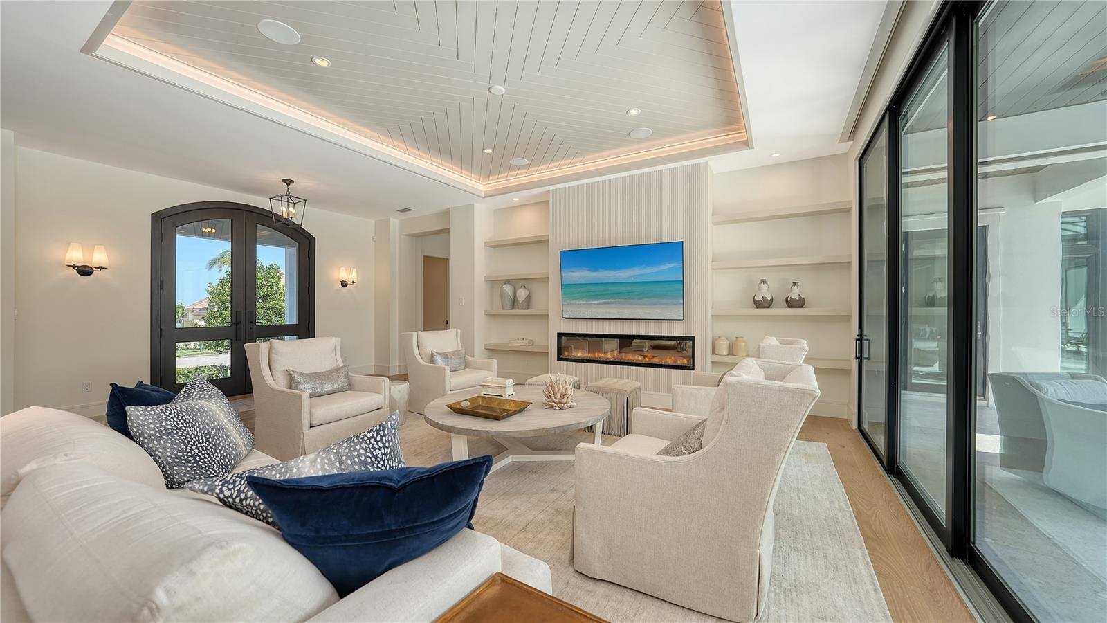 Built in 2022 by Voigt Brothers and designed by Arieno Custom Home Design, this new impeccable waterfront estate pairs sleek contemporary architecture with the comforts of elevated Bird Key living. Nestled along deep sailboat water just off Sarasota Bay, this Bird Key home spans over 4,700 square feet of beautifully finished interiors, seamlessly integrated with an expansive outdoor living experience. A pavered circular driveway framed by manicured landscaping welcomes you to this modern coastal residence. The elevated two-story design features a durable metal roof, impact-rated glass throughout, and an oversized two-car garage complete with epoxy flooring, mini-split A/C, storage, and elevator access. Inside, a blend of thoughtful engineering and elegant design unfolds—highlighted by solid hardwood floors, soaring 10’ and 12’ ceilings, Lutron-controlled lighting and shade systems, and walls of pocketing sliders that merge indoor and outdoor spaces with effortless grace. The heart of the home is a gourmet kitchen designed to both impress and perform. Anchored by a massive quartz-topped island, it features professional-grade Wolf appliances, hidden range hood, double built-in ovens, 6-burner gas Wolf cooktop with pot filler, and custom cabinetry offering abundant storage. A wine cooler with refrigerator drawers, prep sink, and dedicated Butler’s pantry with built-in desk enhance everyday functionality. This culinary hub flows into the dining room and great room, where a gas fireplace, tray ceiling, and custom floating shelves set a refined tone. The main-level primary suite offers a private retreat, with vaulted ceilings, its own dedicated laundry room, French door access to the terrace, a spa bath with soaking tub and rainfall walk-in shower, and a custom closet system designed to accommodate two wardrobes. Completing the main level is the office and impressive club room that offers additional lounge space with media potential, opening directly to the outdoor lounge for effortless entertaining. Upstairs, a loft-style family room currently serves as a fitness area, alongside three spacious guest suites with walk-in closets, a second laundry room, and a morning bar for added convenience. Take the elevator or ascend the bespoke staircase to access every corner of this thoughtfully designed home. Outside, two levels of resort-style entertaining spaces include a covered lanai with summer kitchen, electronic screens, and multiple seating areas. The heated pool and spa feature a sun shelf and tranquil waterfall. At the water’s edge, a new seawall supports a dock with four-post platform lift, offering direct access to the open waters of Sarasota Bay and beyond. Located in the sought-after Bird Key neighborhood, residents enjoy a private island lifestyle just minutes from downtown Sarasota, St. Armands Circle, and Lido Beach. Indulge in boutique shopping, fine dining, and the area’s renowned cultural scene including theaters, art galleries, and the marina. Optional membership to the Bird Key Yacht Club offers additional opportunities for boating, tennis, and social engagement. This is coastal living redefined—crafted with intention, and ready for your next chapter.