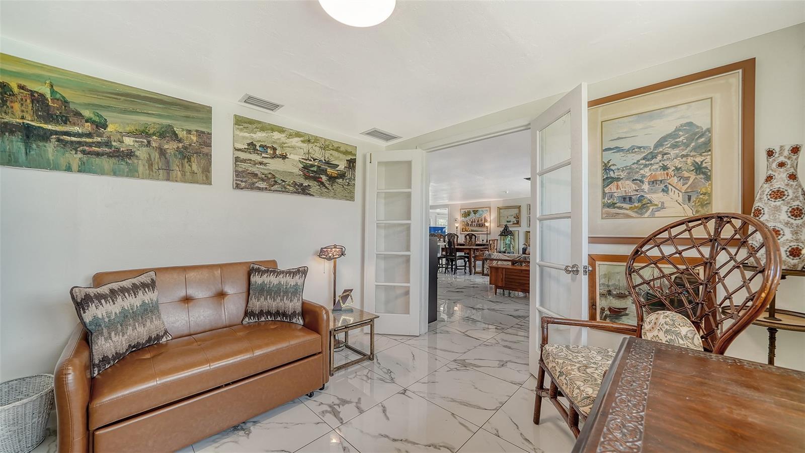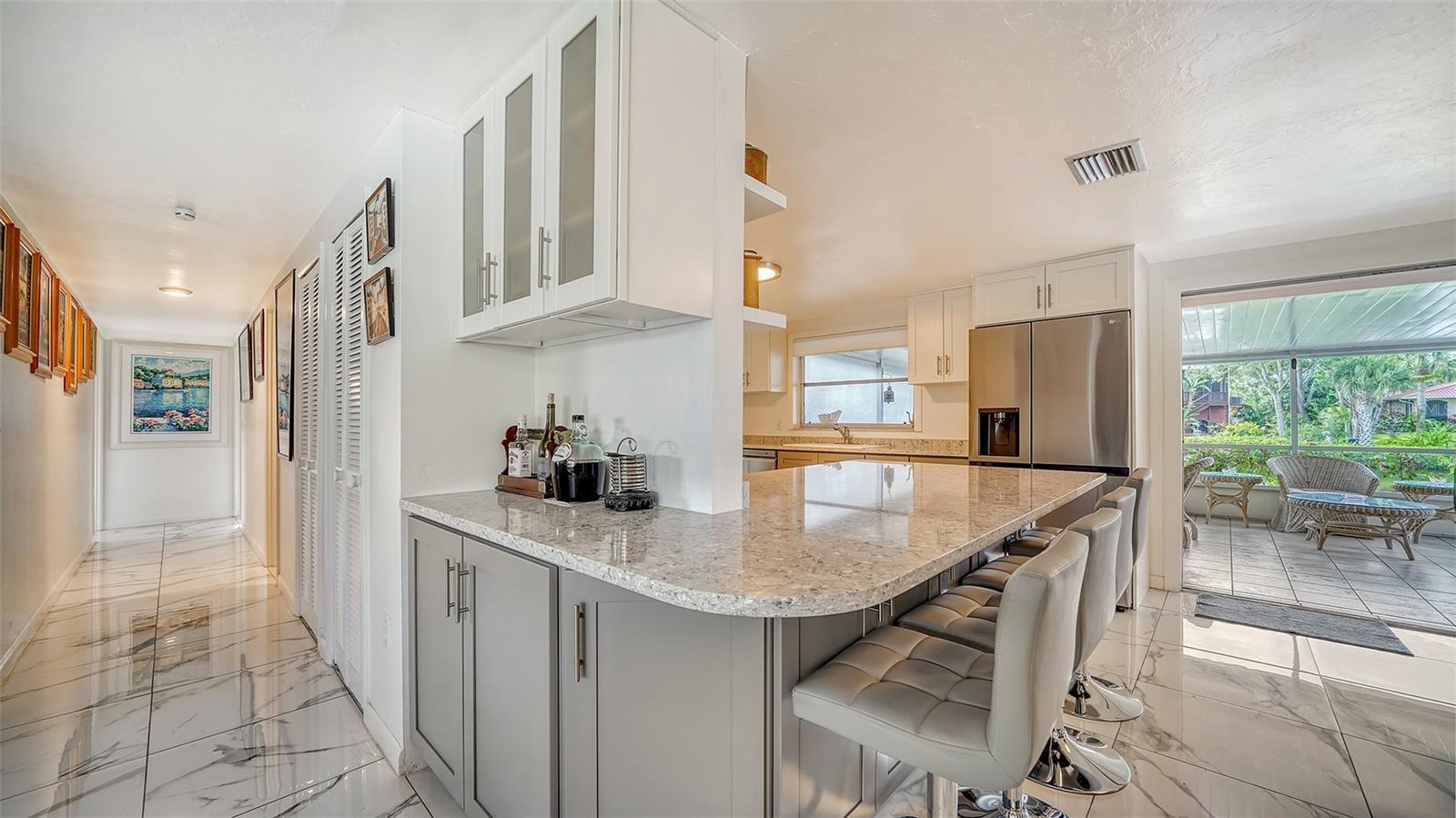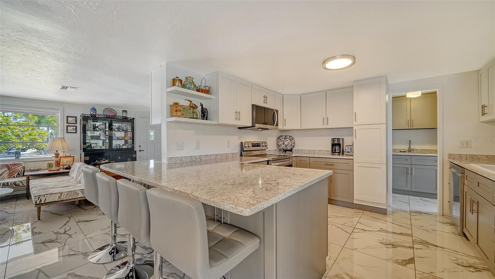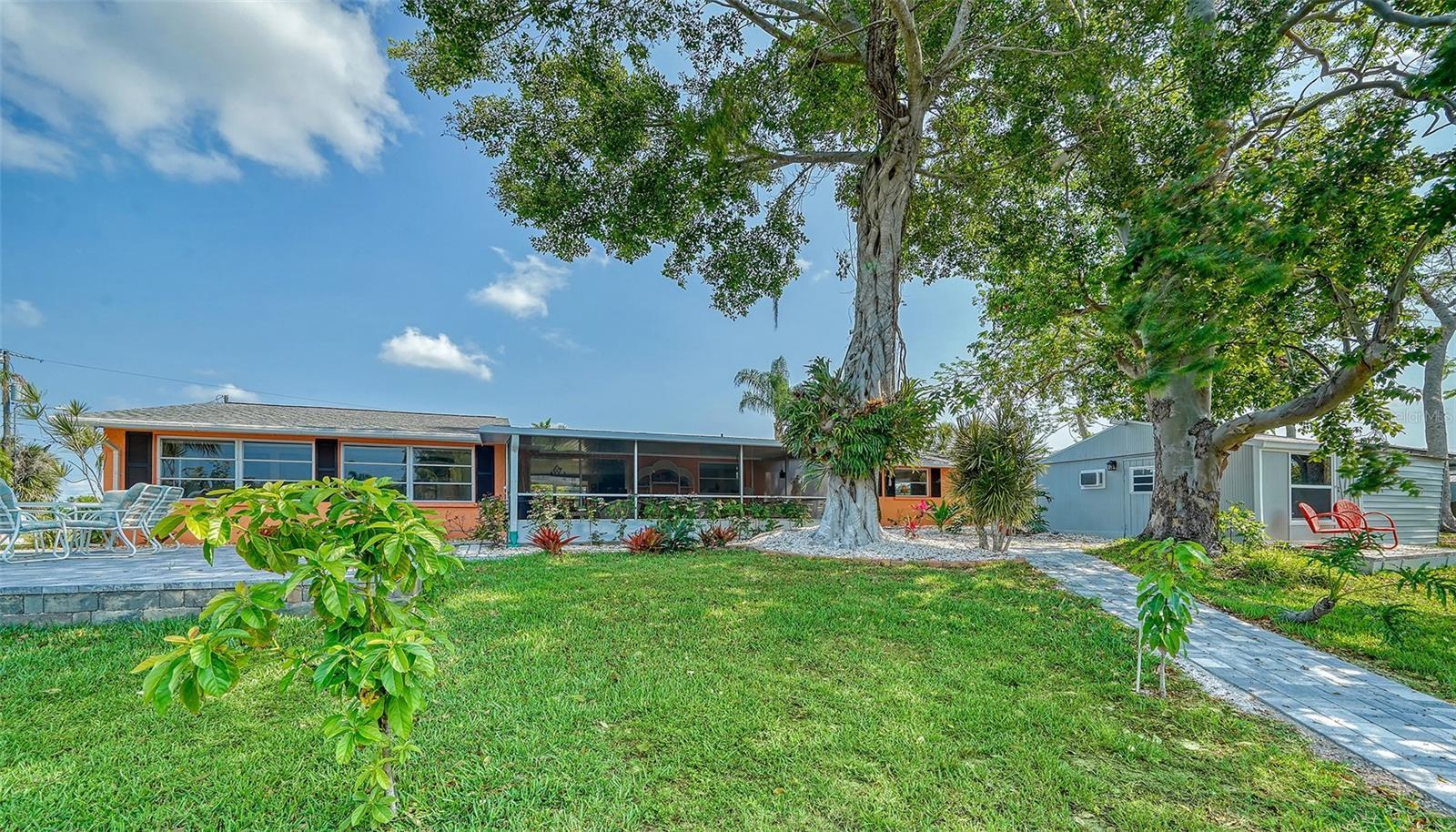 SARASOTA COUNTY...Discover the serene beauty of SHAKETT CREEK with this exceptional waterfront property. Boasting an impressive 236 feet of direct access to saltwater canals. The property is situated near the Gulf/Ocean and Intracoastal Waterway, providing a perfect blend of tranquility and recreational activities. You'll have a hard time deciding whether to grill on the deck, go semi-pro in the spacious kitchen, or enjoy dinner in town. You can sit on the back porch, which is screened for privacy, or the open air porch, all options are open. This is a great place to be, well positioned on a quiet no-thruway street, the home is only minutes to outdoor recreational opportunities, dining and shopping. You'll enjoy impressive views of Intracoastal Waterway/Canal while you sit on the dock fishing or bringing your kayak/jet skis/boat for water adventures. Attractive landscaping maximizes the value of the expansive yard. Your outdoor furniture transforms the inviting patio into an extension of the home, ideal for sunset dinners and starry nightcaps. There is also an added bonus of an air conditioned shed, for the kids, grandkids or to go read a good book while looking at the view or the water. The ensuite primary bedroom, (king bed) conveniently located on the main-floor, is well-designed and peaceful along with a custom built closet. The other 2 bedrooms, (queen and a pullout)unique and quiet, also offer the convenience of ground floor accessibility. Have fun packing this one full of warmth and memories. Call today and enjoy the stunning water views and the vibrant natural surroundings that make this area so desirable.