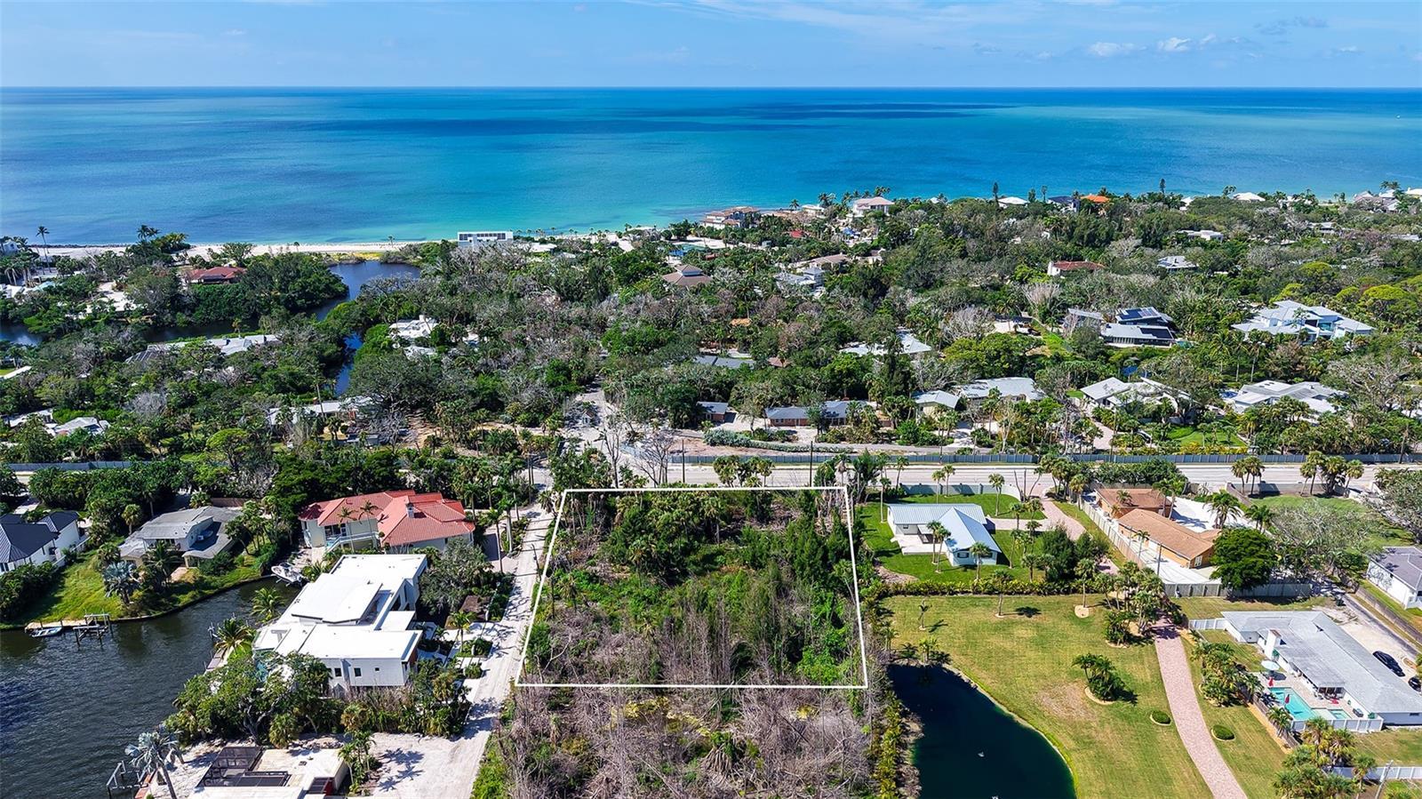 ….. One Acre of Siesta Key vacant land with Bay access is almost impossible to find! Here it is, your gateway; the ideal canvas for your dream property, a homesite simply unique in its size and its location, offered at an exceptional price. This rare piece of land is just 0.7 miles south of Stickney Point bridge, across from the renowned Sanderling Club. With 175 ft of street frontage and a depth of 244 ft along Port Lane, this expansive parcel (± 1 Acre/42,677sq ft) gives you a generous building footprint, the coveted opportunity of privacy, of serenity in the middle of it all. Build your custom dream home and still have plenty of room to design your private driveway and your tropical Florida yard. Take a short stroll to your private dock which extends 235 ft into the bay waters and is capable of docking a boat, jet skis, and kayaks. From there you are just a short boat ride away from the blue waters of the Gulf. You will enjoy how much ‘Little Sarasota Bay’ is Loving Life since Midnight Pass opened naturally, boasting a visible improvement of water clarity & marine life. Not to forget that All of Siesta Key is right at your front door, the famous powdery Beaches, Crescent & Point of Rocks beach, Turtle Beach, its vibrant villages with its shops, Bars & Restaurants. Take this great opportunity to build your private beach retreat, Custom builders in the area are well-versed in designing elevated, contemporary, and Key West–inspired homes to complement this exceptional setting. Bay and/or Gulf Views possible depending on design of home. Call today for a showing and additional information. Lot features: lot has been partially cleared, 2 wide paths to discover the property populated with Palm Trees & some Australian Pine clumps, typical Florida underbrush, no elevation change throughout the parcel, no wetland, 20ft wide easement to dock. Survey, Topographic map and Soil Test are available.