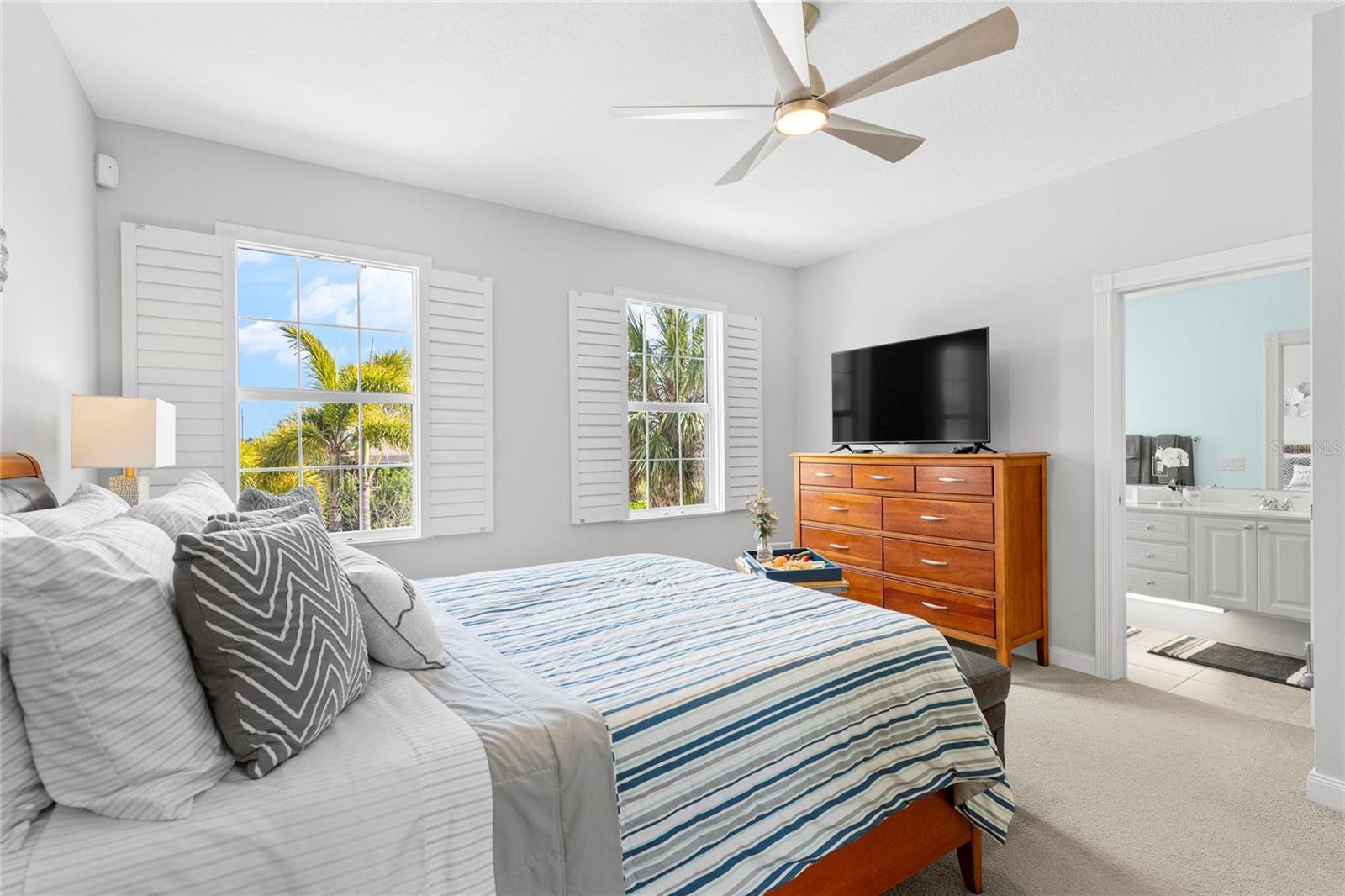 - Ceiling Fans(s), High Ceilings, Open Floorplan, PrimaryBedroom Upstairs, Stone Counters, Thermostat, Walk-In Closet(s)