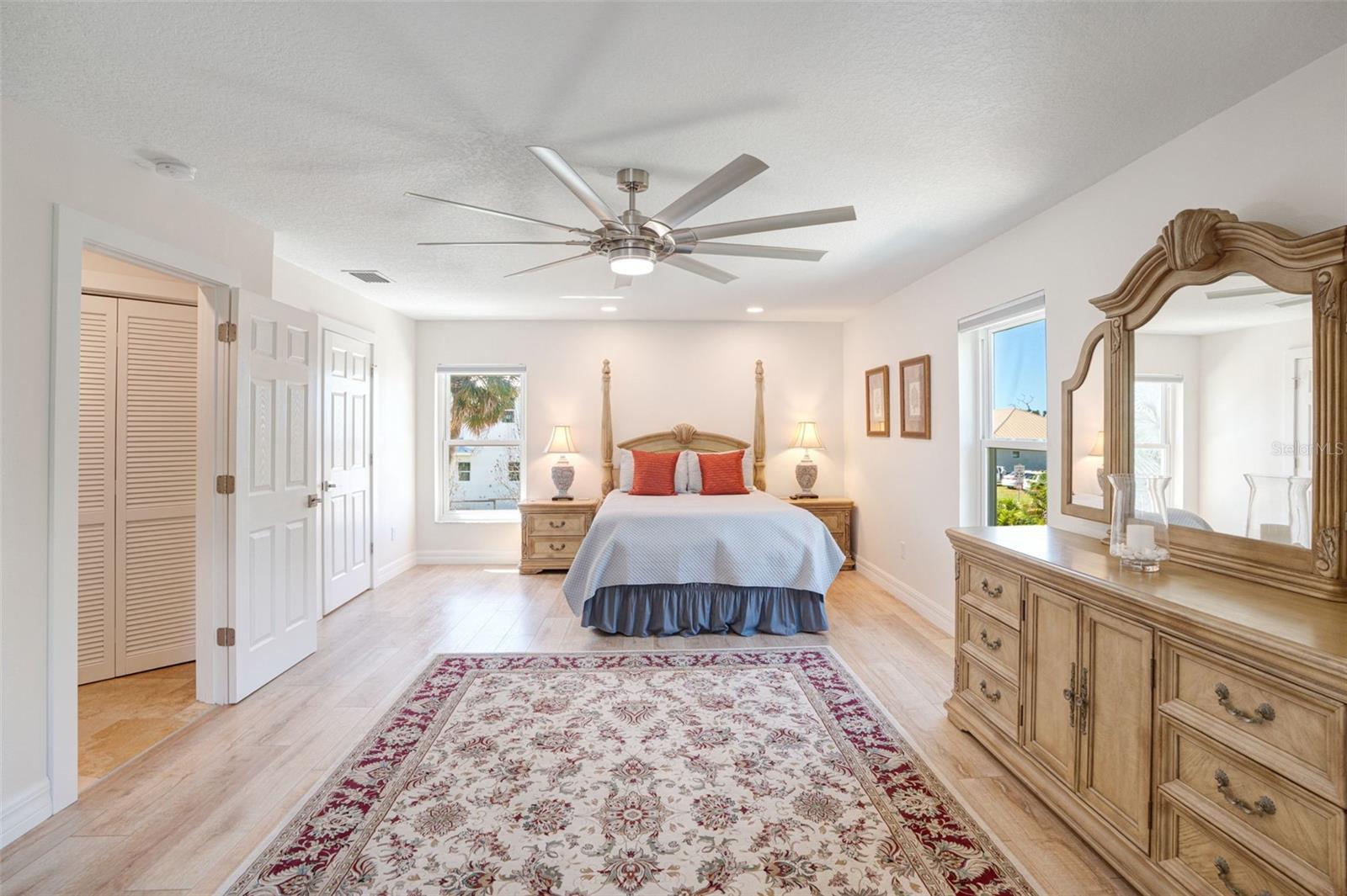 - Ceiling Fans(s), Kitchen/Family Room Combo, Primary Bedroom Main Floor, Solid Wood Cabinets, Stone Counters, Thermostat, Walk-In Closet(s)