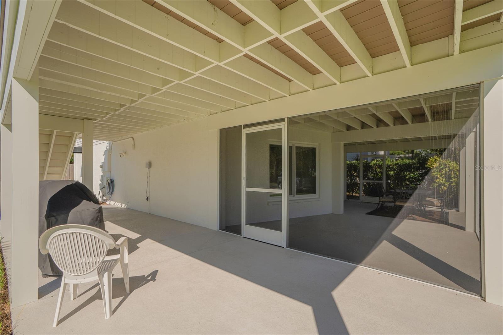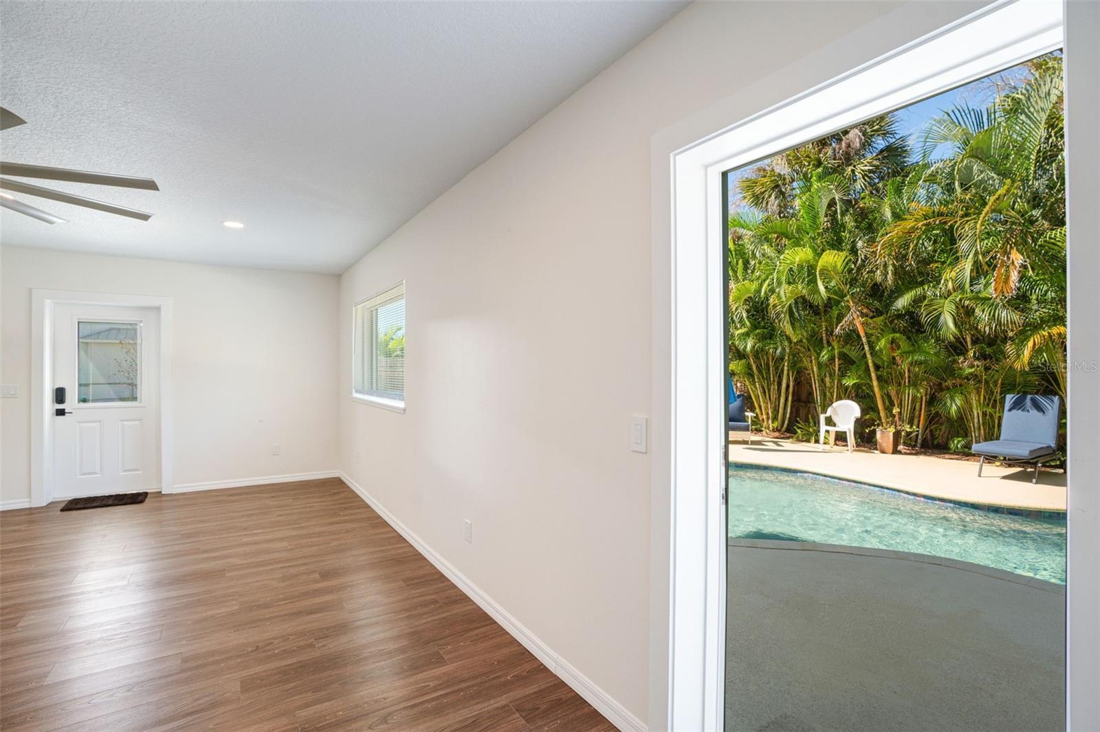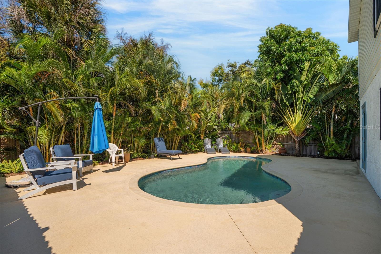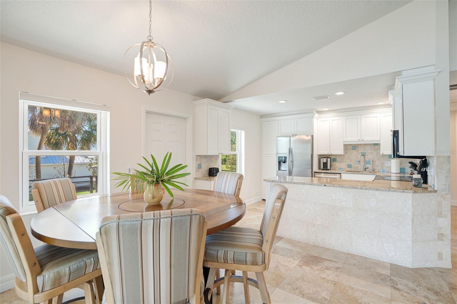 Under contract-accepting backup offers. Live like you’re on vacation in this updated Key West–style home West of the Trail. Upgrades include a new standing seam metal roof, hurricane impact windows, electric tankless water heater, wraparound "Lifeproof" composite decking, and a custom heated pool. Interior features vaulted ceilings with a mix of travertine, LVP, and tile flooring, plus a kitchen with solid wood cabinets, stainless steel appliances, beadboard ceiling, and custom backsplash. The screened second-story porch has an electronic roll-up system for open-air or enclosed comfort. A unique “hidden” door design allows the home to function as one residence or two separate units, with the lower level offering its own entrance, bedroom, bath, family room, and laundry—perfect for in-laws, guests, or rental income. Outdoors, enjoy lush landscaping, a tropical pool setting, and unbeatable location just a block from the public dock and kayak launch. Minutes to Sarasota, Venice Island, beaches, Legacy Trail, and Spanish Pointe.