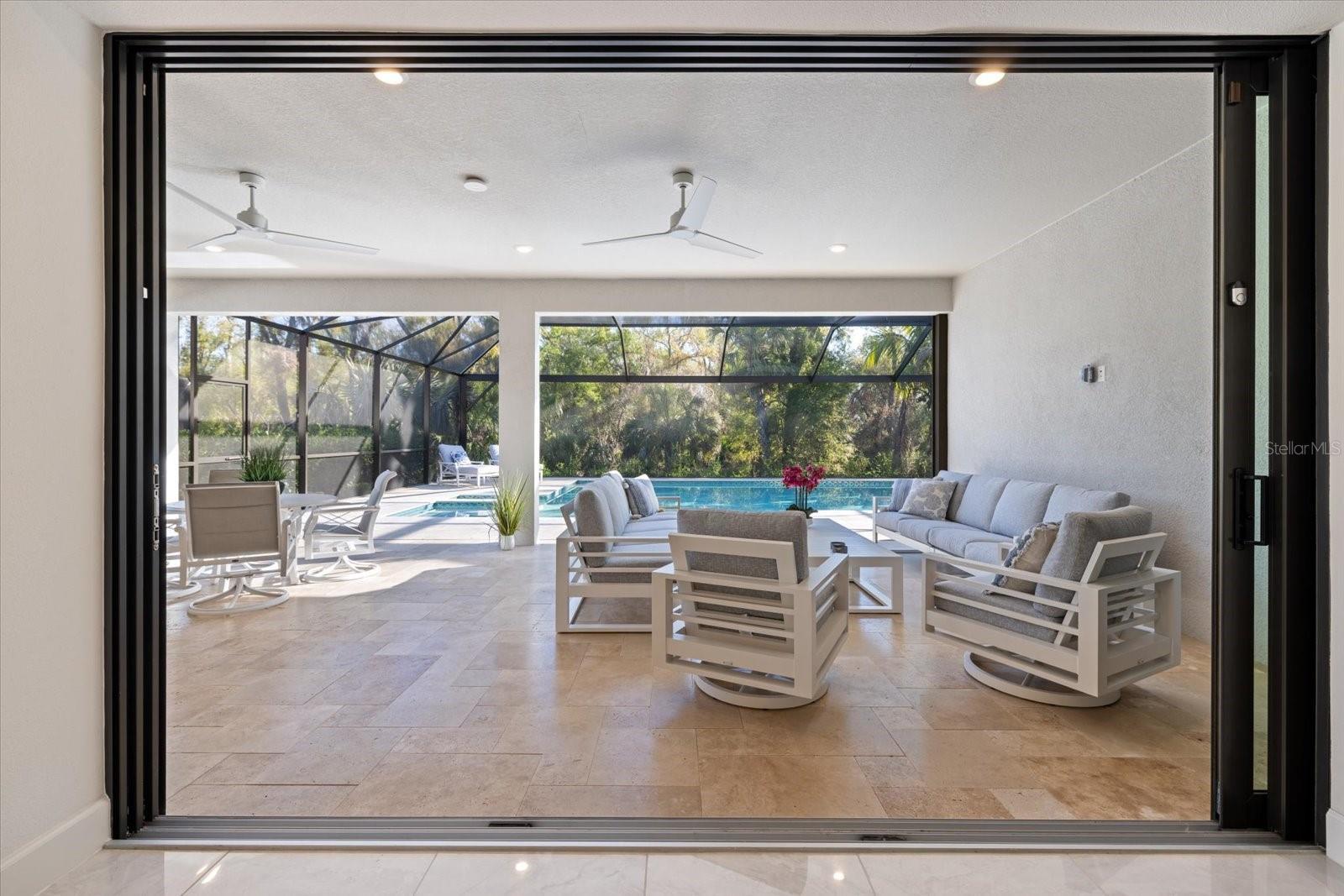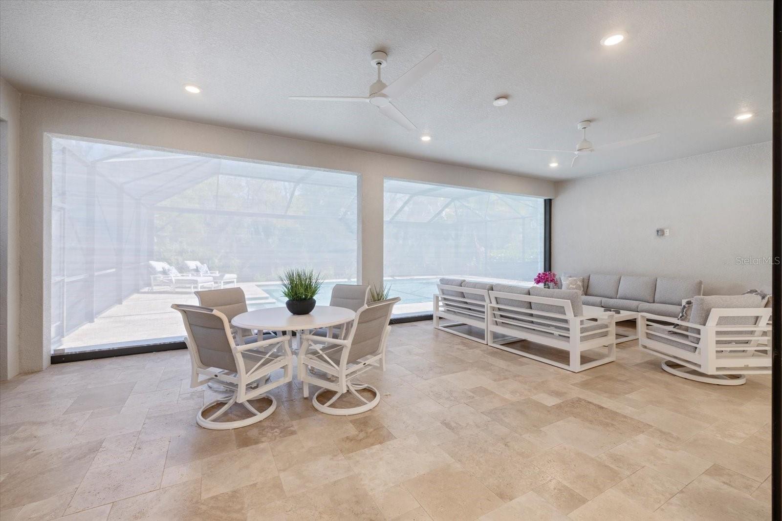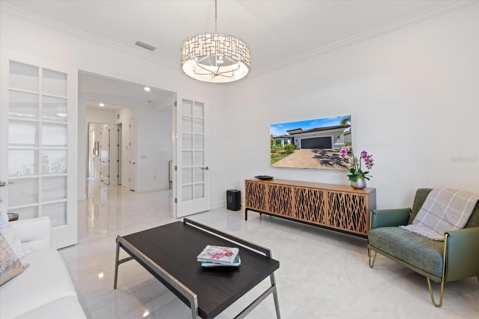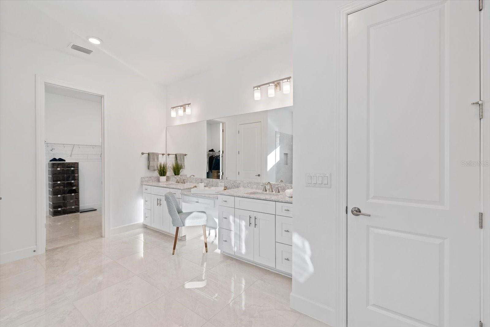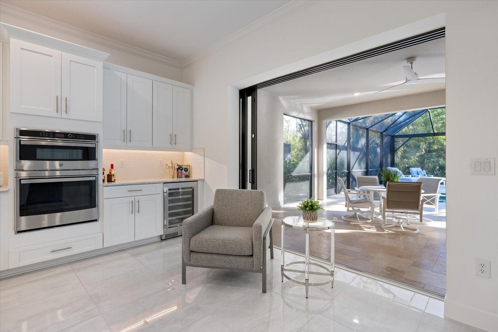 Discover the ideal blend of modern style and functionality at Esplanade at Azario with this NON GOLF DEEDED home. This sleek 3-bedroom, 3-bathroom home with a den features nearly $300,000 in post-construction upgrades, offering 3,072 square feet of contemporary elegance. The thoughtfully designed landscaping includes underground piping on both sides to efficiently manage rainwater. Enter into a bright, open space where chic tile floors and recessed lighting establish a modern ambiance. The oversized great room effortlessly transitions into the dining area, providing an ideal environment for relaxation and entertaining. The kitchen is a culinary enthusiast's dream, boasting a spacious island with premium quartz countertops, a walk-in pantry, and an extended area with a 44-bottle wine cooler. Outfitted with stainless steel appliances, including a gas stove and range hood, this kitchen is equipped for everything from casual breakfasts to gourmet dinners. Pocket sliding doors and stylish pendant lights add an extra layer of sophistication. The primary bedroom serves as a luxurious retreat, complete with a bay area perfect for a cozy sitting space. The ensuite bath features an oversized walk-in shower with dual shower heads, dual sinks, and a vanity, while the master closet offers ample storage space. Step outside to your private oasis, featuring an oversized saltwater pool, clear view screening, and a travertine deck. The extended covered lanai provides a serene spot to enjoy tranquil preserve views with added privacy. This home also includes two additional bedrooms, one of which is ensuite, and an oversized laundry room with cabinets and a sink. This residence is equipped with IMPACT GLASS THROUGHOUT, STORM SMART SCREENS, and a FULL HOUSE GENERATOR for your peace of mind. Additional features include a Central Vac, Culligan water system, recirculating pump for reclaimed water, electric for a car charger in the garage, smart home technology, designer lighting and fans, crown molding, tray ceilings, gutters, and room-darkening shades. Living in Esplanade at Azario grants you access to top-notch amenities, including a clubhouse, pickleball and tennis courts, gym, and putting green. The state-of-the-art Culinary Center offers additional dining and entertainment options. Unwind at the spa, take a dip in the resort-style pool, or enjoy a drink at the bar. An activities director is available to help you make the most of the community's offerings. This home is not just a place to live; it's a lifestyle waiting to be embraced.