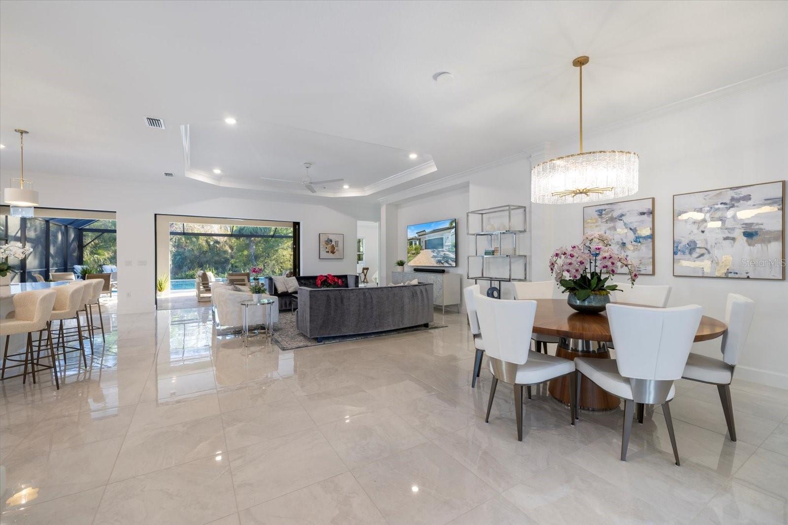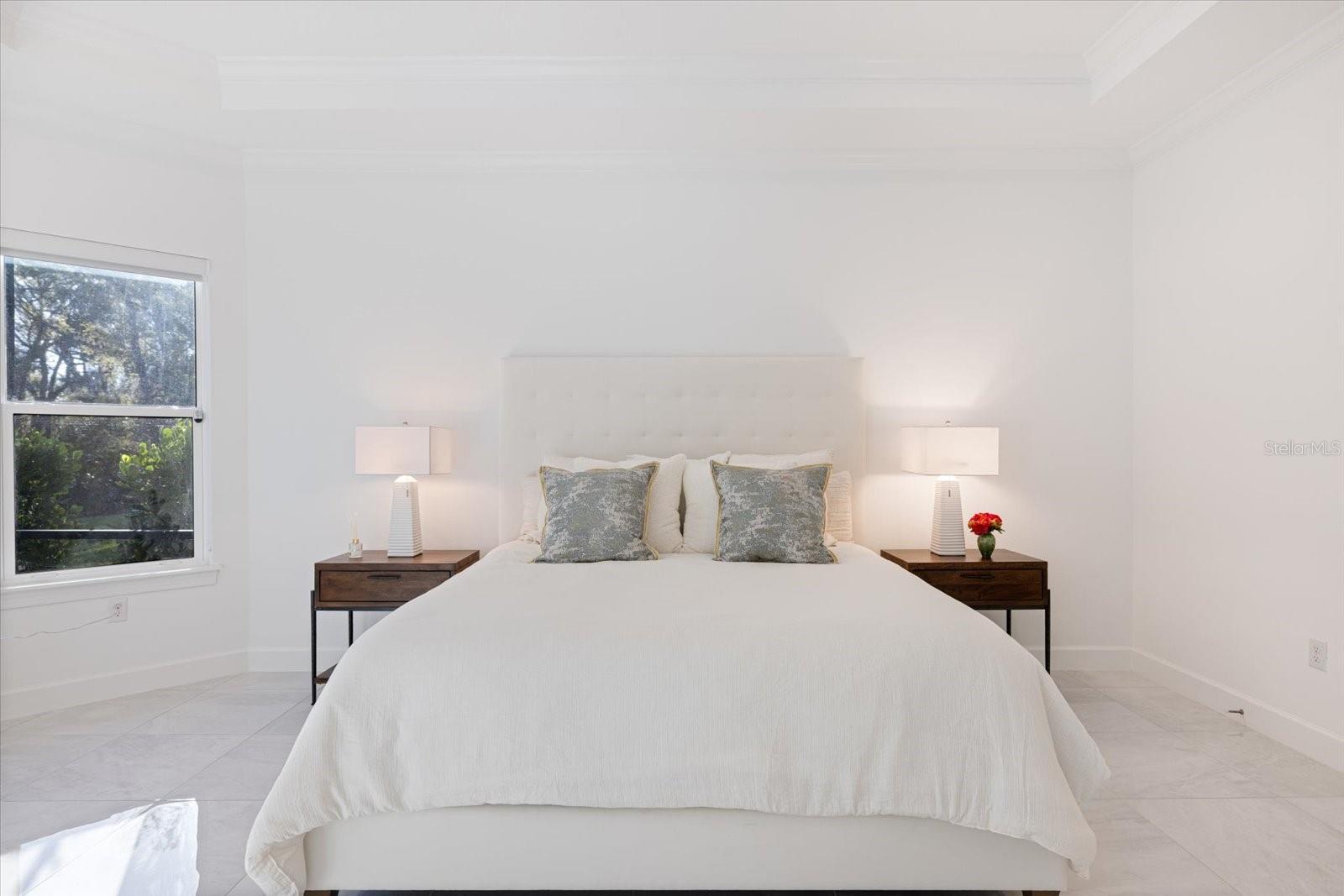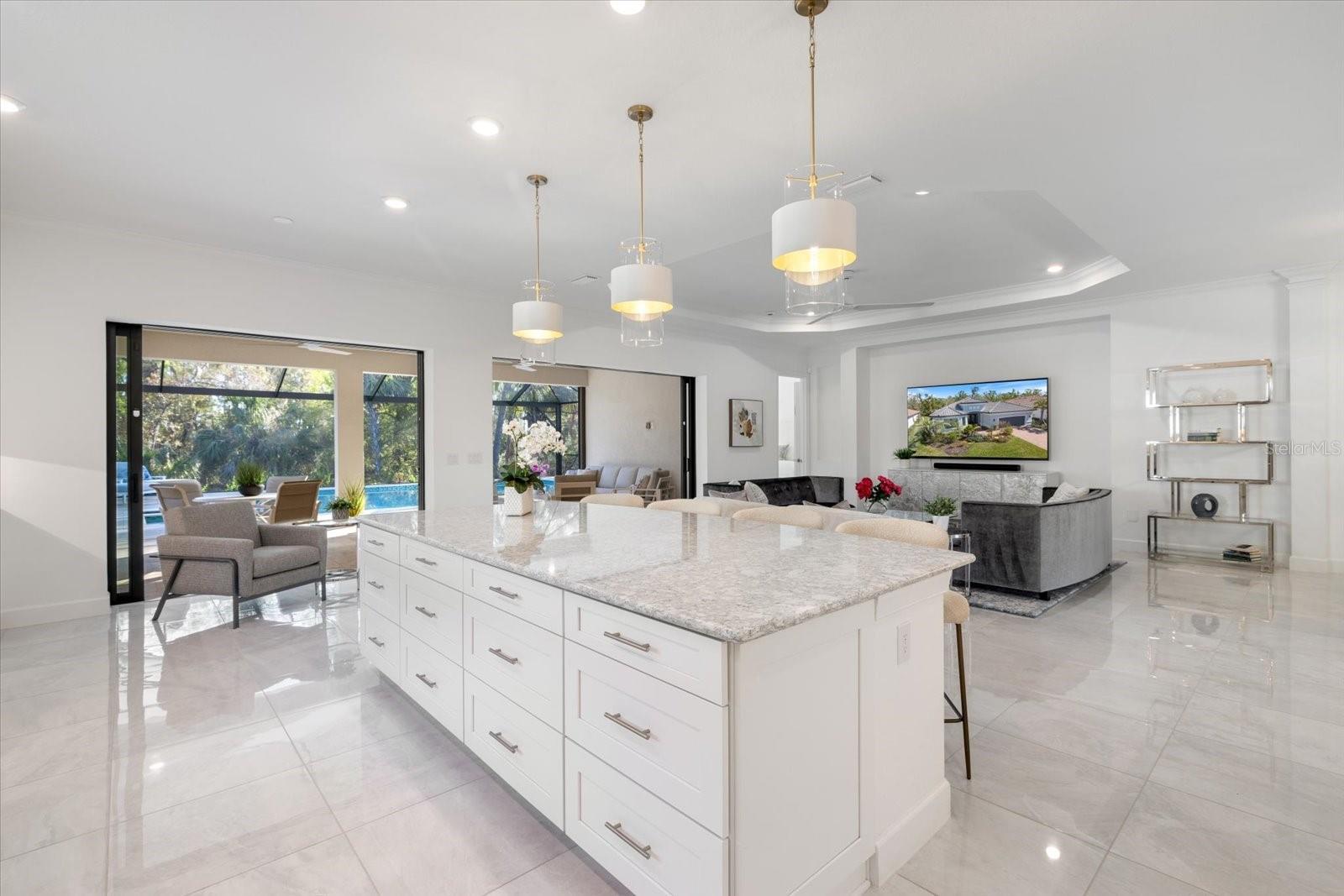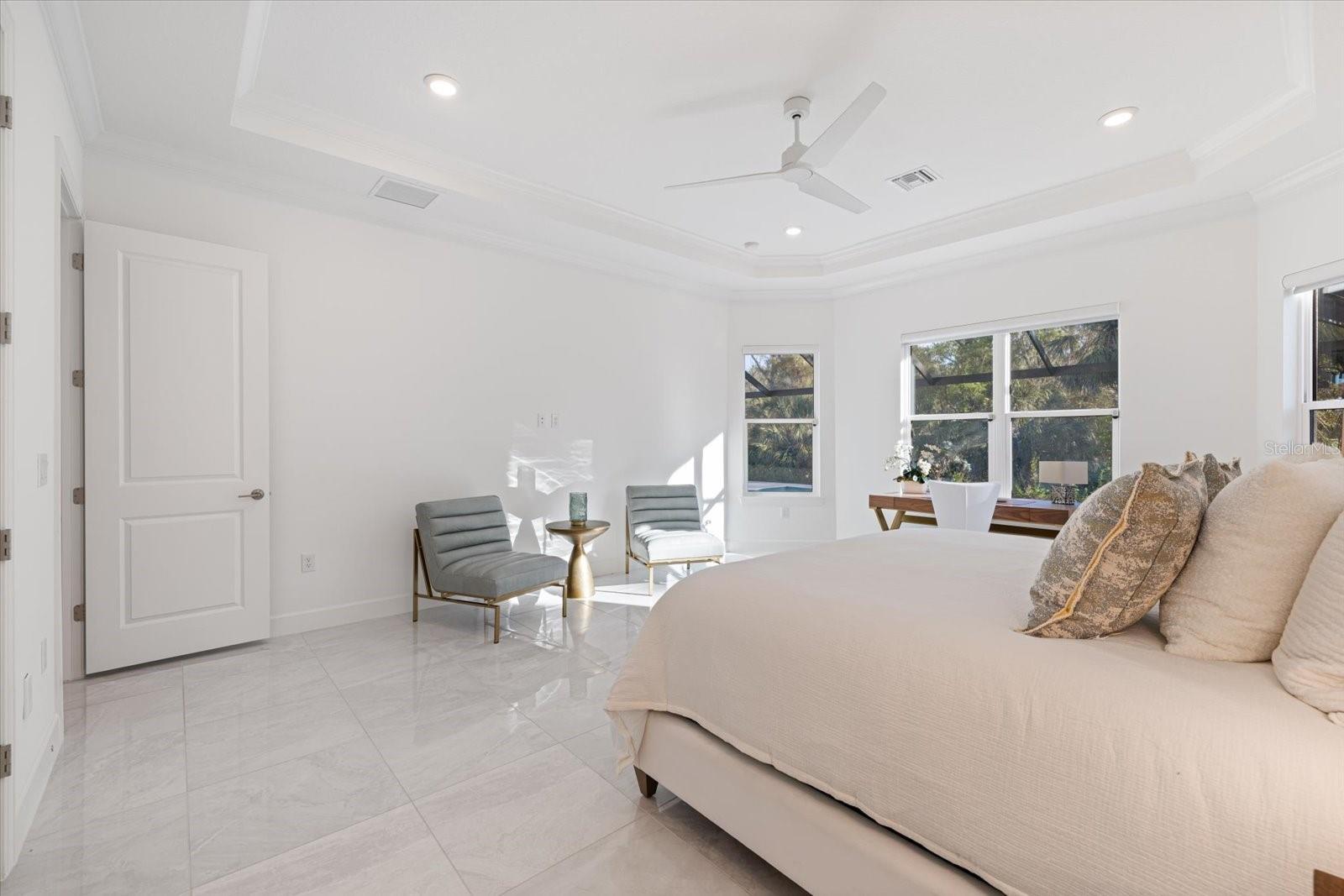 - Ceiling Fans(s), Central Vaccum, Crown Molding, Dry Bar, Eat-in Kitchen, High Ceilings, Kitchen/Family Room Combo, Open Floorplan, Primary Bedroom Main Floor, Smart Home, Split Bedroom, Stone Counters, Tray Ceiling(s), Walk-In Closet(s), Window Treatments