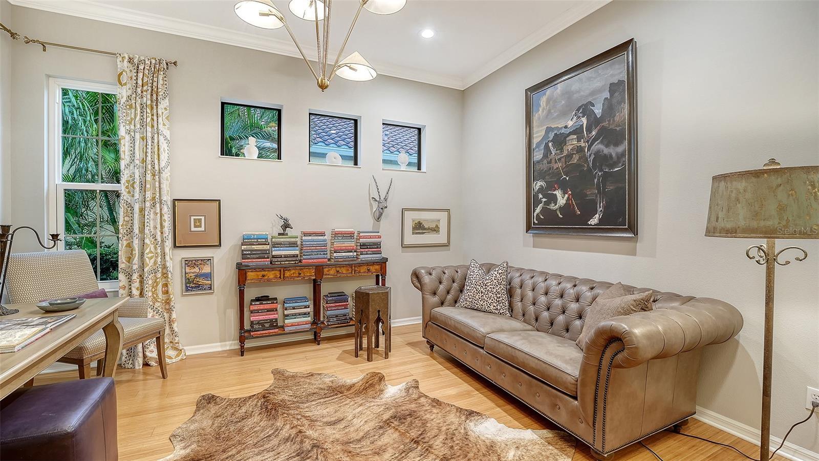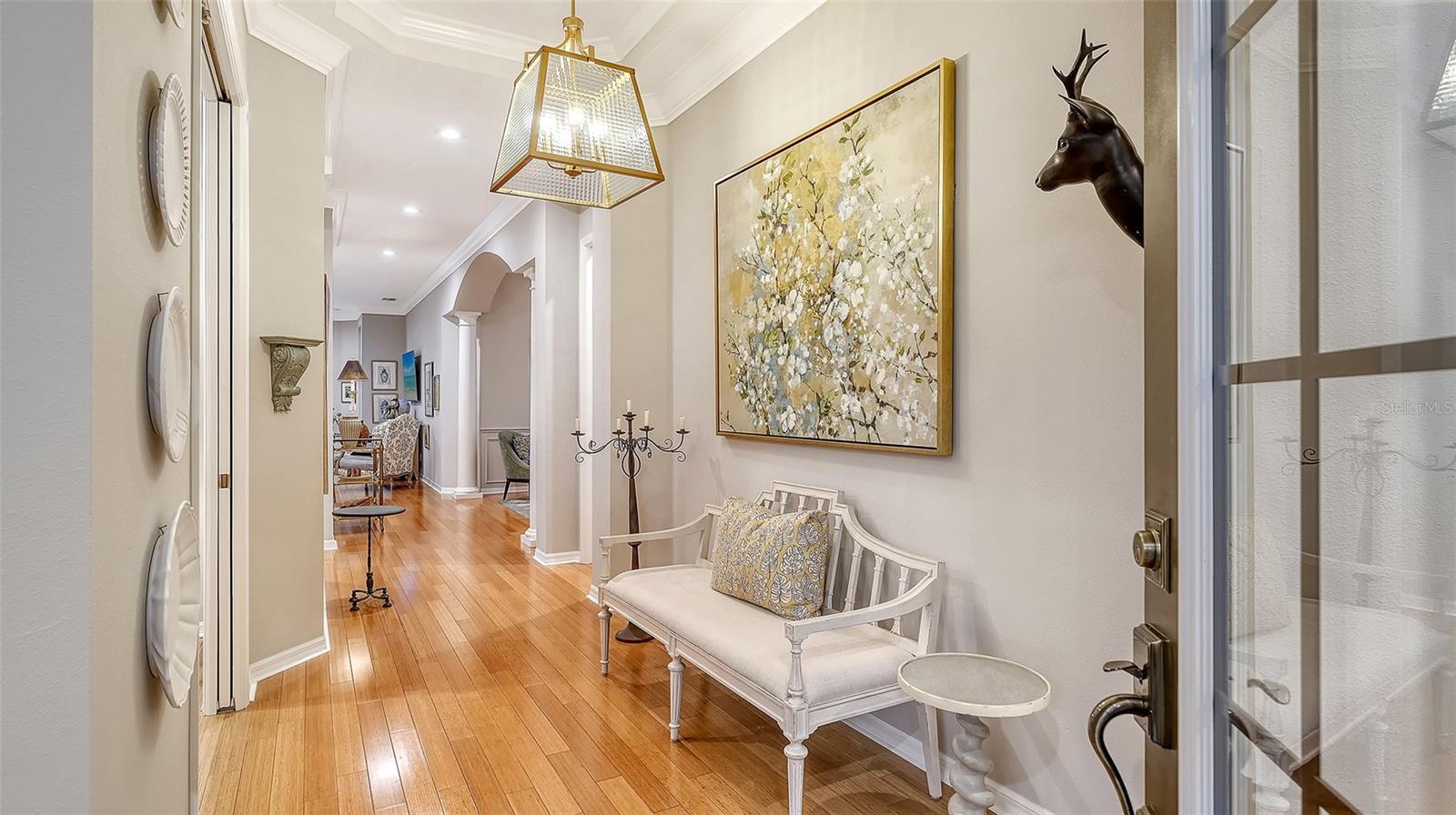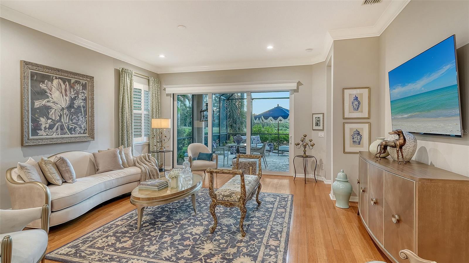 Fully renovated Neal Custom, single family home in the Presidio enclave of Lakewood Ranch Country Club, with low HOA fees covering grounds maintenance and access to a private community pool just steps away. State-of-the-art hurricane impact-resistant windows flood the home with light while providing durability and energy efficiency. Step onto the covered terrace and take in sweeping fairway, lake, and nature views—a daily dose of calm and serenity. The flexible layout features two private bedroom suites plus a versatile den, perfect as a third bedroom, home office, media room, or hobby space. The gourmet kitchen is a chef’s dream, with Café appliances, quartz countertops, refaced cabinetry, and a striking backsplash. Luxurious baths, bamboo and custom tile floors, high ceilings, tray ceilings, crown molding, designer lighting, and a whole-home water purification system complete this sophisticated, move-in-ready home. Recent updates include a full renovation and new kitchen appliances and washer/dryer (2025), A/C (2021), and gas water heater (2022). CDD is included in taxes, and furnishings are available for purchase. Minutes from Waterside, Main Street, UTC, SRQ Airport, downtown Sarasota, top schools, and Gulf beaches. Optional Lakewood Ranch Country Club memberships offer golf, social, and sports amenities. A rare opportunity to own refined craftsmanship, breathtaking views, and effortless Florida living. **Please use the guest entrance located off University Parkway and Legacy Boulevard. All other gates are for resident-only access.**