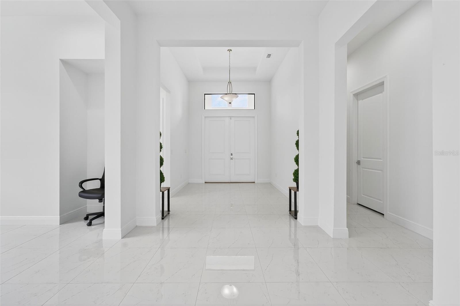This rare 2024 build single-story Van Gogh model home by Kolter Homes is now ready to be yours! Set within one of the most sought-after and exclusive gated communities, Artistry offers the perfect blend of luxury amenities and maintenance-free living. Thoughtfully designed for both style and comfort, this beautifully appointed home showcases elegant architecture, high-end finishes, and an open concept floor plan that seamlessly blends indoor and outdoor living. Welcome your guests into a stunning tile floored foyer that leads to a formal gathering room with custom tray ceilings, gourmet kitchen, breakfast nook and luxurious dining room maximizing the modern open concept. Enjoy the well-appointed details of the gourmet kitchen that flaunts a waterfall center island, ample counter space, new stainless steel appliances which include a natural GAS 30" cook-top with vent-out hood, built-in microwave/thermal wall oven and dishwasher as well as a substantial pantry with plenty of room to store all kitchen essentials--a complete chef's dream kitchen! The main level also includes a private study room for those in need of dedicated workspace, providing an ideal environment for productivity. The spacious living area features custom details and whole home hurricane impact doors and windows that also produce an abundance of natural light throughout the home. The primary suite is a retreat of its own. Bask in your own private sanctuary featuring tray ceilings, bay windows, a large walk-in closet and a spa-inspired master bath boasting dual vanities and a frameless glass-enclosed oversized shower. This floor plan offers two more generously sized bedrooms with two full baths. The laundry room is designed with upgraded cabinetry, and a wash sink that makes daily chores a breeze. A spa-like outdoor retreat awaits in the custom-built screened lanai which is pre-plumbed for a summer kitchen. Unwind surrounded by a beautifully landscaped, fenced in yard on a corner lot! This house boasts all custom designed motorized window treatments, all energy efficient appliances, upgraded open cell spray foam insulation in-lieu of standard blown insulation, high efficiency air conditioning systems, a tankless water heater, and is pre-plumbed for a water softener! With its modern open floor plan, high ceilings, luxurious features, and unbeatable location this move-in ready home offers style, functionality, and space for everyone. As an Artistry resident, you'll enjoy a state-of-the-art fitness center, outdoor cabanas, a day spa, lap and resort-style pool, basketball court and playground. This master-planned community is thoughtfully designed with lush landscaping, scenic lakes, native wildlife and trails. Located just minutes from shopping, dining, top-rated schools, and Sarasota's world-class beaches, this property offers the lifestyle you've been searching for. Don't miss your chance to own this move-in ready, fully upgraded gem in Sarasota!