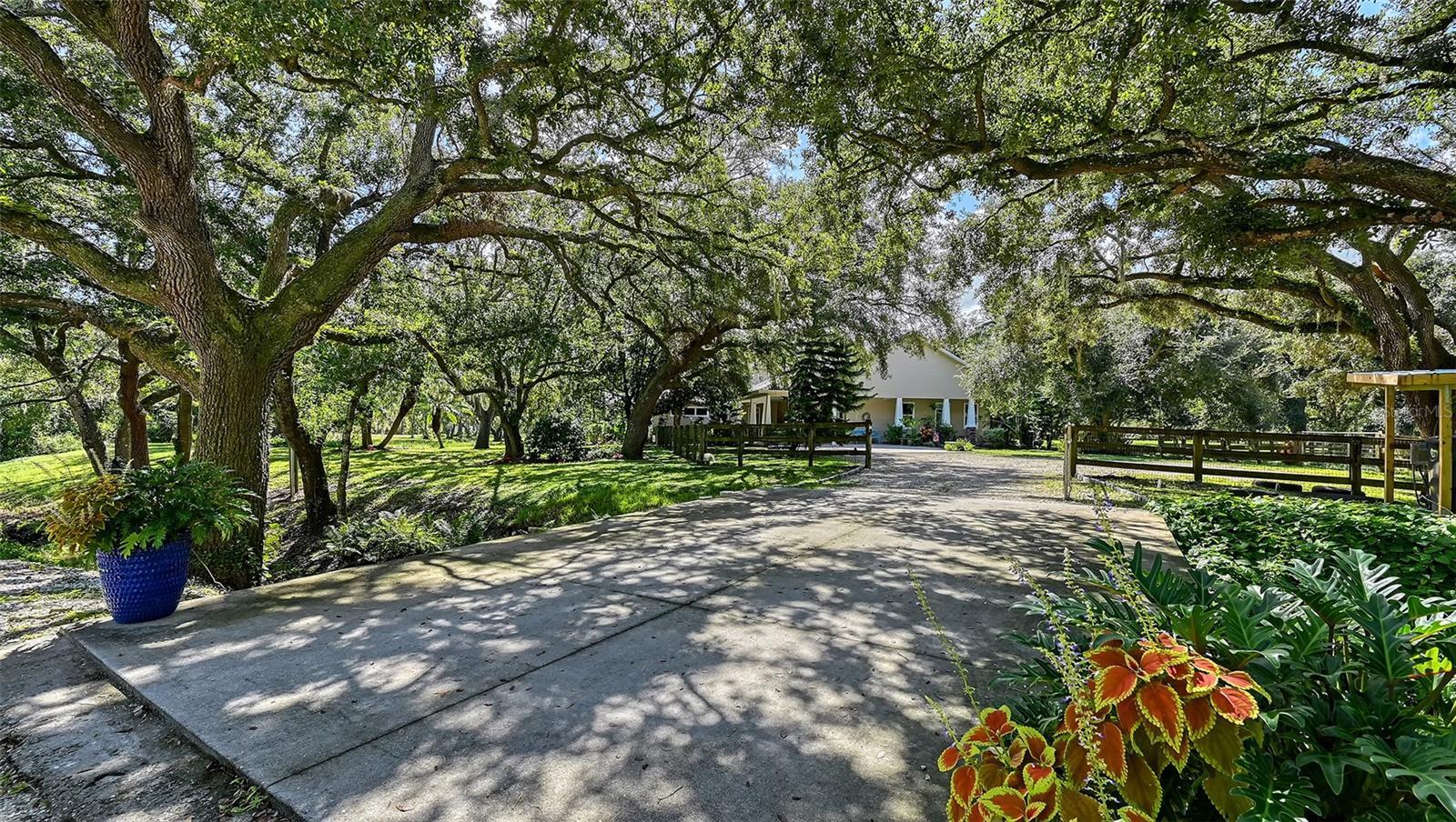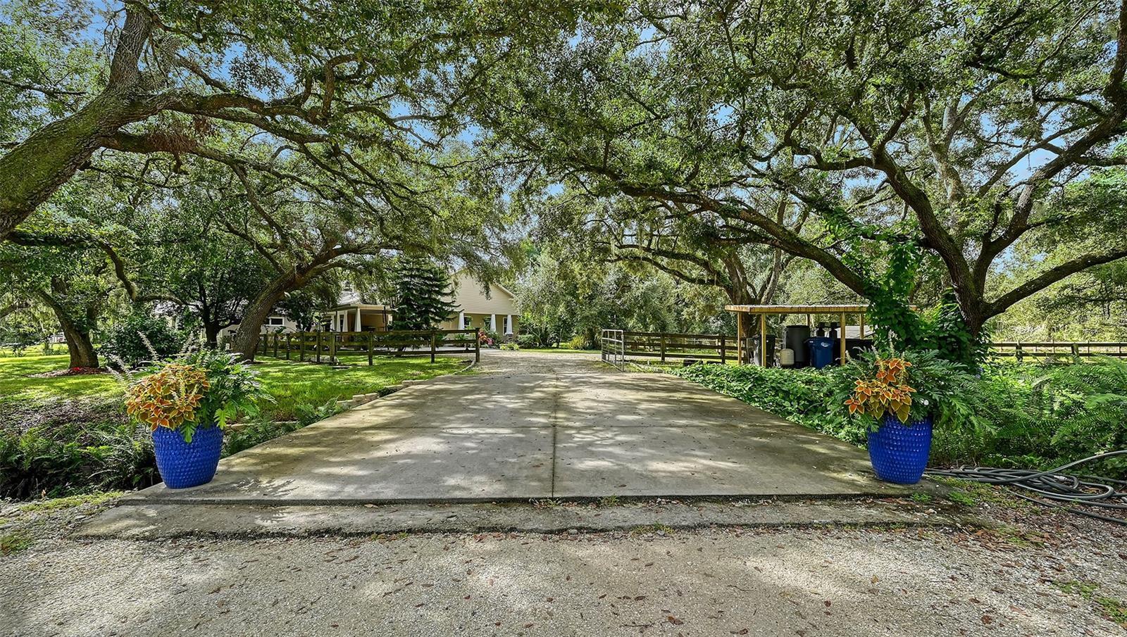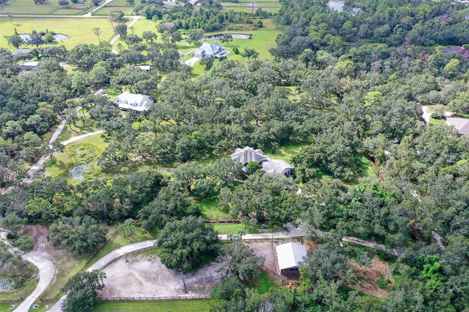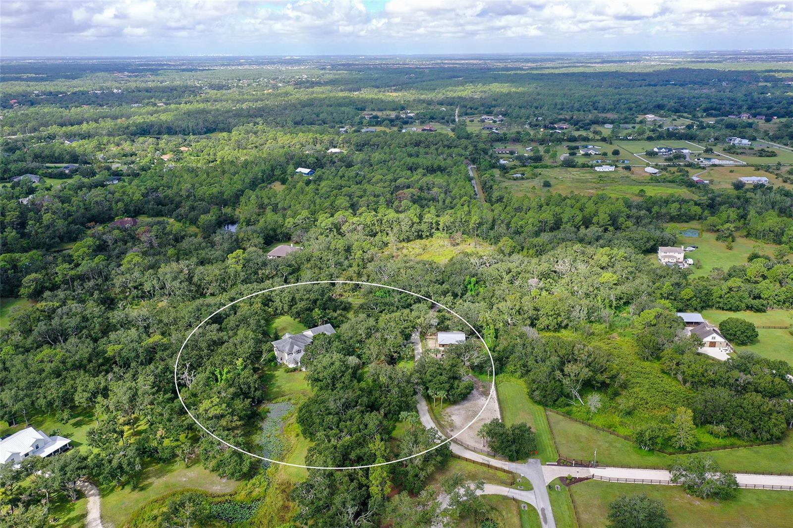 Under contract-accepting backup offers. PRICE REDUCTION! THE BEST VALUE ON ACREAGE IN THE LAKEWOOD RANCH AREA! Nestled at the end of a private and heavily wooded cul-de-sac, this gated estate offers unparalleled tranquility and privacy. A winding driveway crosses a gently flowing creek, leading to a custom Mark Cahill-built Craftsman home that blends timeless charm with modern luxury. Spanning 4610' u/air (6,699' total), and meticulously renovated in 2025, this 4/5-bed, 5-bath estate is ideal for equestrian enthusiasts, families, or those seeking a grand retreat, minutes from Lakewood Ranch’s vibrant amenities. The main residence (3/4 beds, 4 baths, 4000’ u/air) captivates with huge windows framing stately oaks. On the 1st floor, new luxury vinyl plank (LVP) flooring and new light fixtures throughout the home create a modern, cohesive aesthetic. A recently completed gourmet kitchen features all-new elite white cabinetry, stainless steel appliances, stylish backsplash, and quartz countertops. A navy coffee bar with storage and two pantries—one with a chic barn door—add flair. Not to be missed: a huge, concrete patio off the kitchen, ideal for al fresco dining. A brick double-sided wood-burning fireplace connects the kitchen/morning room and expansive family room, creating a cozy centerpiece. Entertain in the formal dining room, open-concept parlor, or bright morning room. An office with barn door and a spacious mud room enhance functionality. An ensuite bonus room with a renovated bathroom features a private entrance making it the perfect spot for a movie or game room. Upstairs, there are 4 bedrooms, all ensuite. The Primary Suite features a brand-new opulent spa-inspired bathroom with a striking oversized square soaking tub, an expansive shower with a luxurious rain shower head, sleek new cabinetry, and premium flooring. Large windows overlook the back pastures, complementing a spacious bedroom with new carpet and walk-in closet. The 2nd Primary bedroom boasts a brand-new renovated bathroom, paired with a super-sized bedroom featuring new carpet, a spacious walk-in closet, and large windows overlooking the front yard. Bedrooms 3 and 4 each have a walk-in closet and share a brand-new spacious Jack-and-Jill bathroom with dual sinks and a shower-tub combo. A large upstairs laundry room with ample cabinets and a sink ensures convenience. Connected by an 821’ covered parking area, the recently renovated guest house (1 bed, 1 bath) exudes charm with a front porch and large enclosed lanai. Elegant wood-look tile flows throughout, enhancing a modern kitchen with grey cabinets, stainless steel appliances, a dining room, and a family room. The luxurious bathroom features a walk-in shower, complemented by a bedroom with a walk-in closet and a laundry room with cabinets and stackable washer/dryer, ideal for guests/income potential. The workshop is located on the North side of the creek, perfect for the car collector or hobby carpenter. No HOA and non-flood zone status (Zone X) offer freedom and security. Truly the "end of the road" with just one more neighbor to the west. Just minutes from Lakewood Ranch, Florida’s premier master-planned community, enjoy miles of trails for biking and hiking, clubhouses with pools and fitness centers, pickle ball, tennis, and golf. The 75-acre Premier Sports Campus hosts soccer/lacrosse, while the Sarasota Polo Club caters to equestrian enthusiasts. Shop and dine at Main Street, Waterside Place, or University Town Center’s 100+ stores.