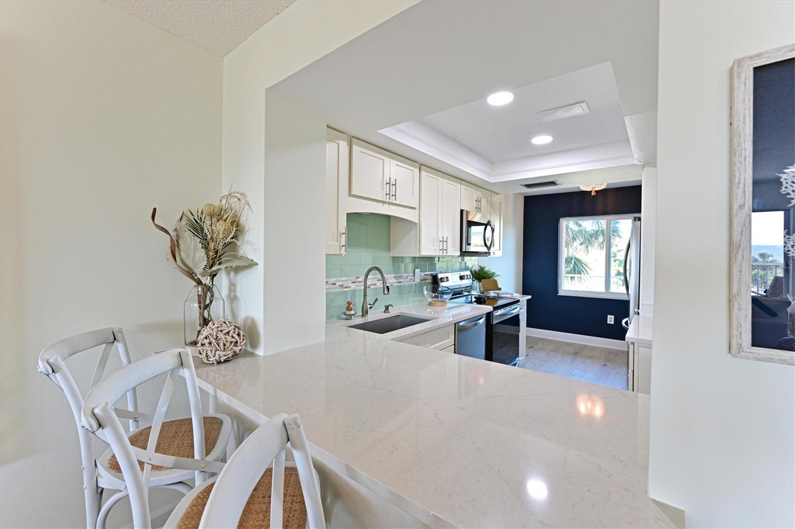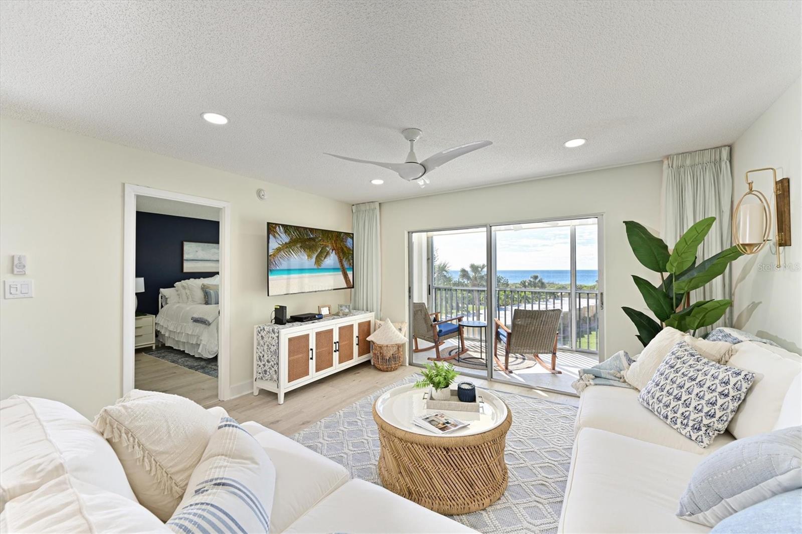 "Just Dune Our Thing" Available January 15,2026. If you are looking for the perfect beach getaway on Siesta Key, look no further! This stunning 2 bedroom,2 bathroom oceanfront condo is ready for you to make it your home away from home. * Impact windows and doors* This fully furnished unit has been tastefully decorated with a coastal design making it have the true Florida feel! As soon as you walk through the front door you will see the calming Ocean waters and the abundance of natural light and the luxury vinyl plank floors throughout making the condo feel open and spacious. The kitchen has quartz countertops, stainless steel appliances and a custom coffee maker. Wake up to a view of the ocean in the master bedroom with ensuite. After taking in the view, enjoy your morning cup of coffee on the lanai while feeling the ocean breeze. Ready for a day at the beach? Head down to the units personal cabana for your beach chairs, beach buggy, beach umbrella and a mini fridge! No need to "Schlep" your beach items to the condo leave them in the Cabana. After the day on the day on the sand and ocean cool off in the sparkling heated community pool! Located on the World-famous Siesta Key Beach/Turtle Beach! This is known to be the queit end of the island. want night life? Shopping? Grab the FREE trolley that stops right outside the building to take you to the Village. Do not miss out on this little slice of Florida paradise! Book your stay today.( Jan-April are 30 day minimum. June-December are two week Minimum) Special deal on a 3 month booking!