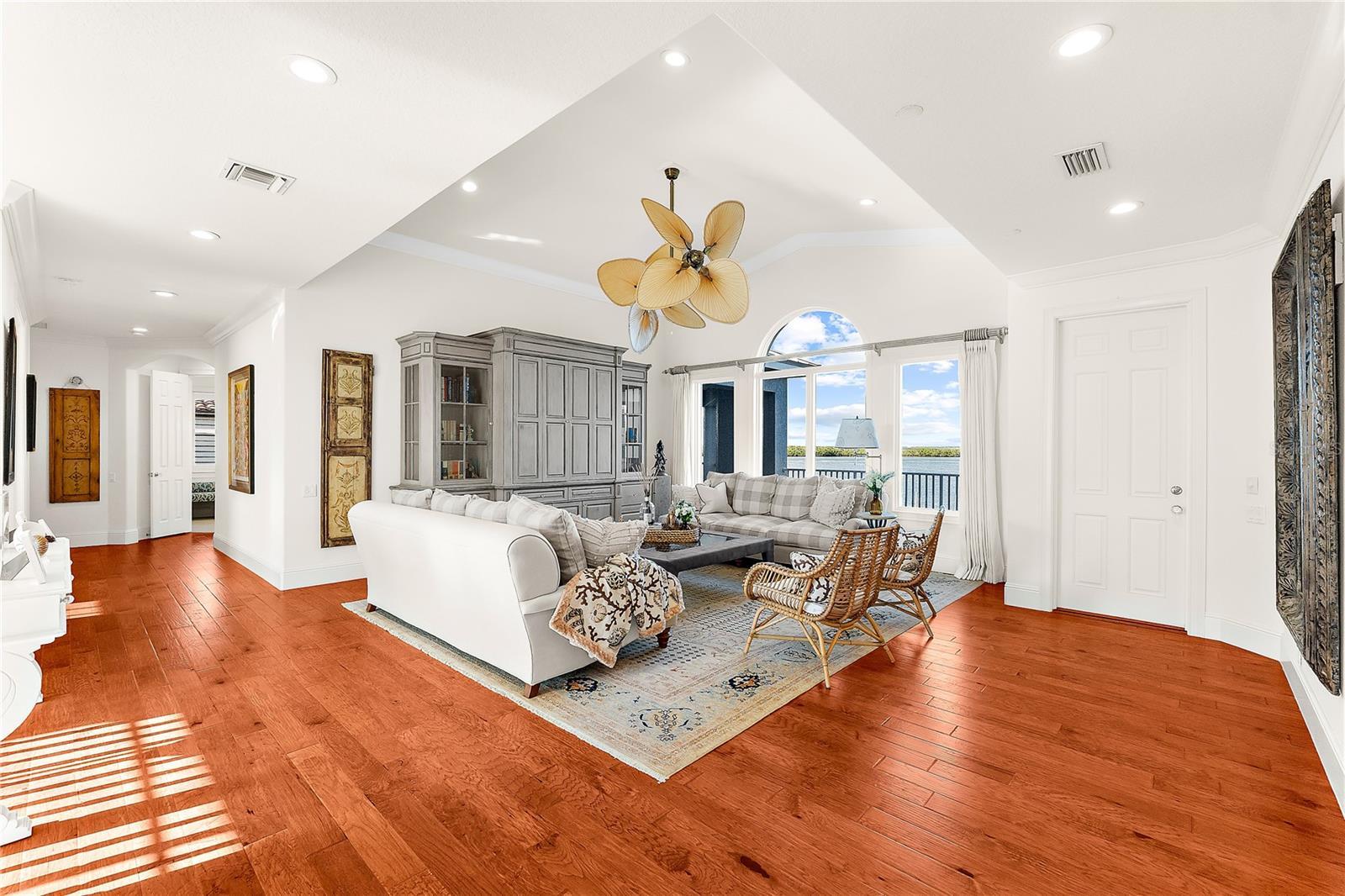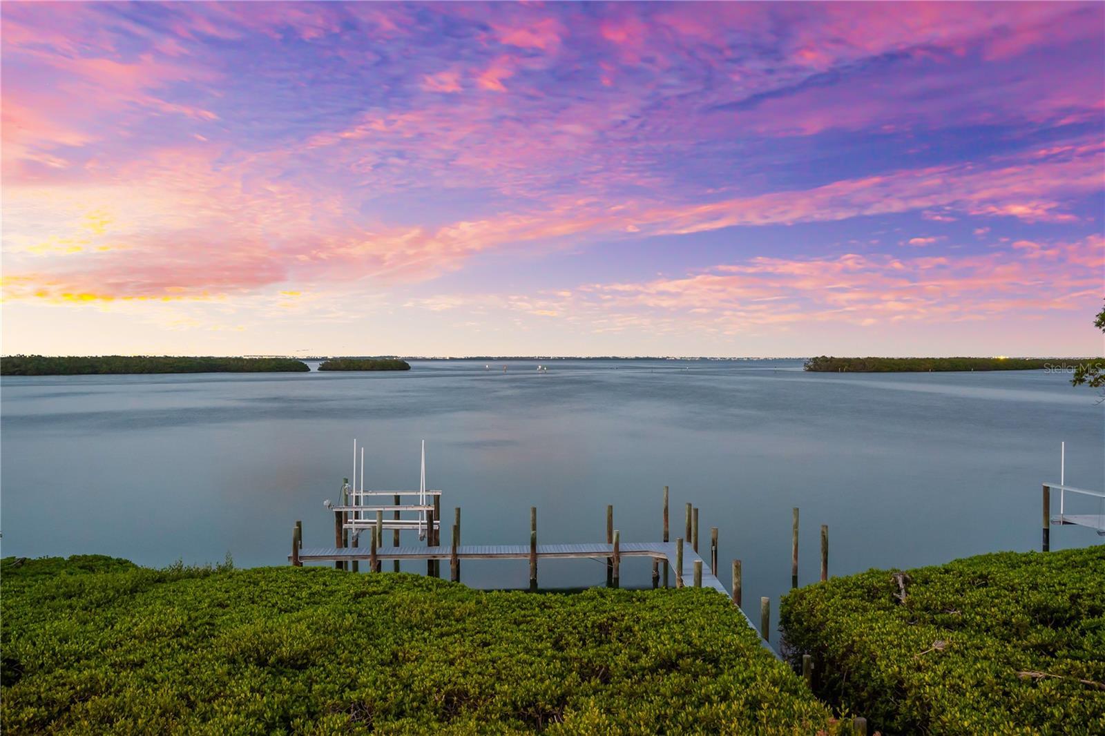 Introducing Maison d’Azur, a custom waterfront estate in the prestigious Hideaway Bay enclave on the north end of Longboat Key. WHERE COASTAL LUXURY LIVING MEETS THE BAY! This exquisite four-bedroom, five-bath Key West-inspired residence, crafted by acclaimed builder John Cannon, seamlessly blends indoor and outdoor living to create an atmosphere of refined luxury reminiscent of a boutique hotel. Situated on over a quarter of an acre, this bayfront property commands breathtaking, unobstructed views. Enjoy the vibrant hues of sunrise and sunset over tranquil waters, with palm fronds swaying in the coastal breeze. With a newly renovated private forty-foot-deep water dock and boat lift, Maison d’Azur is a haven for boat enthusiasts and nature lovers. Spend afternoons in the saltwater pool and evenings on the loggia as the Belt of Venus rises over Sarasota Bay. Enjoy dining from your custom outdoor kitchen, surrounded by lush tropical landscaping. Step inside to experience luxury and meticulous craftsmanship, with a grand foyer featuring soaring ceilings and custom pillars. The open floor plan connects a chef’s kitchen, equipped with Sub Zero, Miele, Fisher and Paykel, and Wolf appliances, to a spacious family room with built in cabinetry, creating an inviting atmosphere for entertaining. Archways lead to elegantly decorated formal dining and living rooms. Ascend the private elevator to the second floor, where a great room with a custom entertainment center awaits, along with a study perfect for savoring a cognac on the captain’s porch. The expansive second floor offers a loggia and bedrooms with stunning panoramic views of the pool and Sarasota Bay. Maison d’Azur embodies exquisite taste and timeless beauty. With imported materials and innovative technology throughout, every detail has been curated for an elegant experience. This residence is sold fully furnished, with pieces selected to enhance each room’s design and ambiance. Hideaway Bay is located on Longboat Key, an eleven-mile island off the coast of Sarasota. This enclave of only seventeen estates is steps away from the deeded beach and boasts two private tennis courts. Residents enjoy easy access to premier country clubs, golf courses, waterfront activities, dining options, and upscale shopping. Experience coastal living where every day feels like a vacation amidst the beauty and tranquility of the Gulf Coast. This property sustained no damage from the storms/hurricanes of last year. It boasts an elevation of 10.5’, ensuring you stay high and dry.