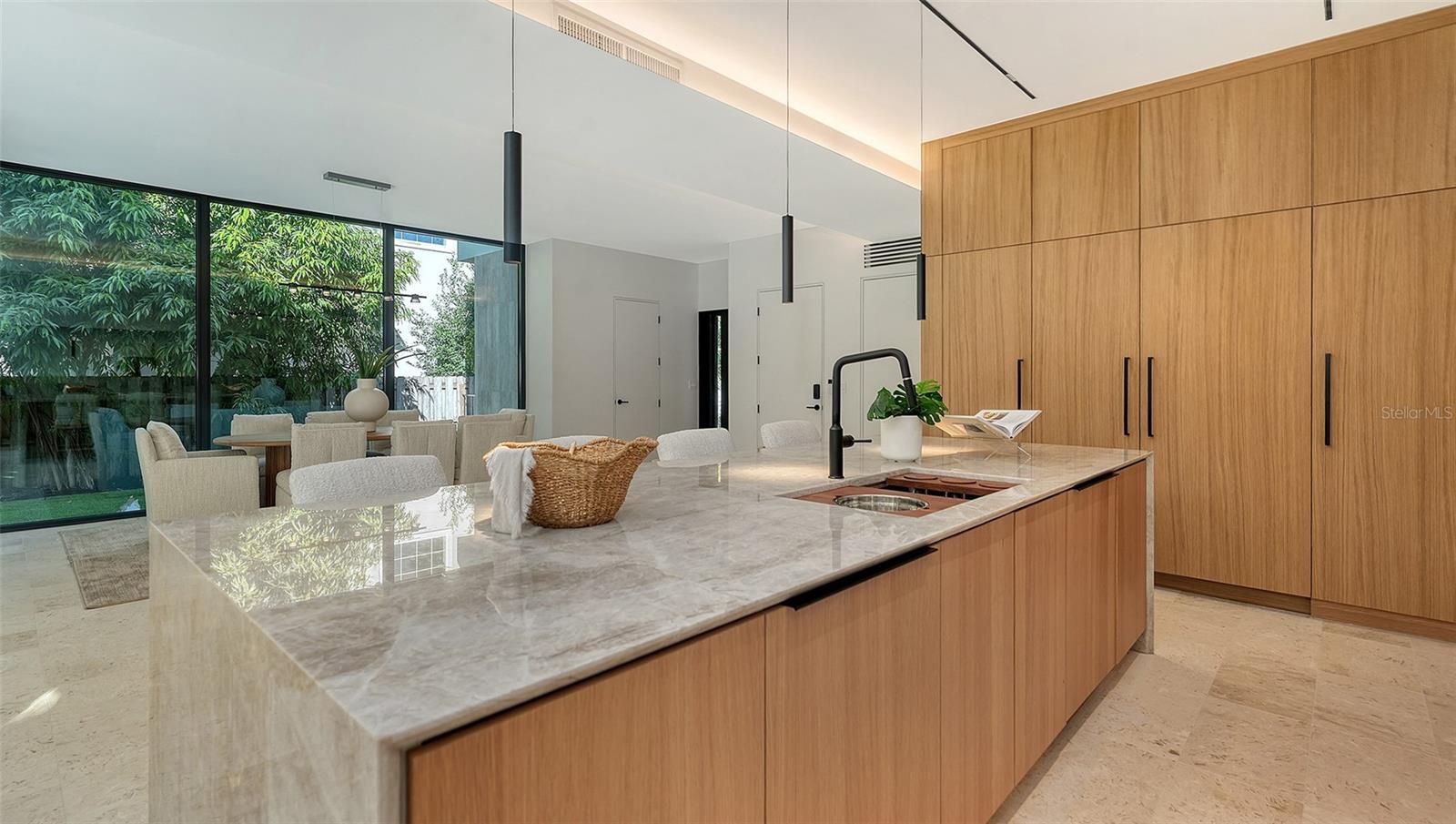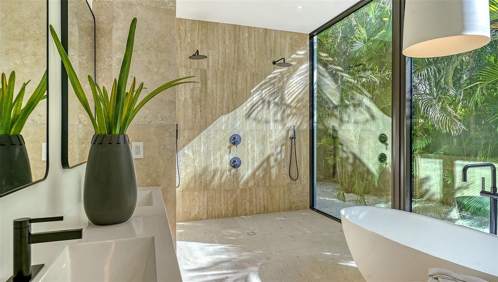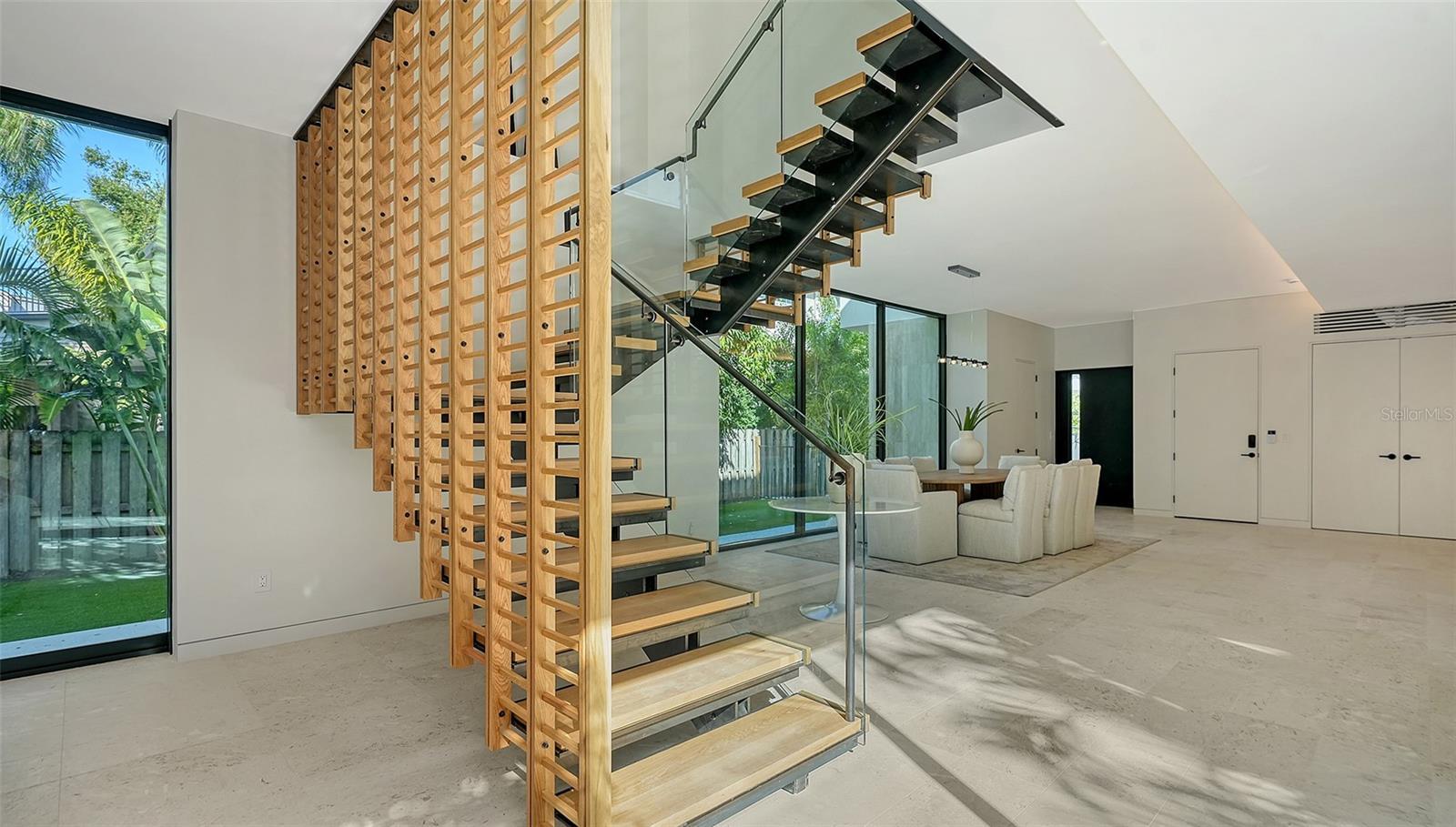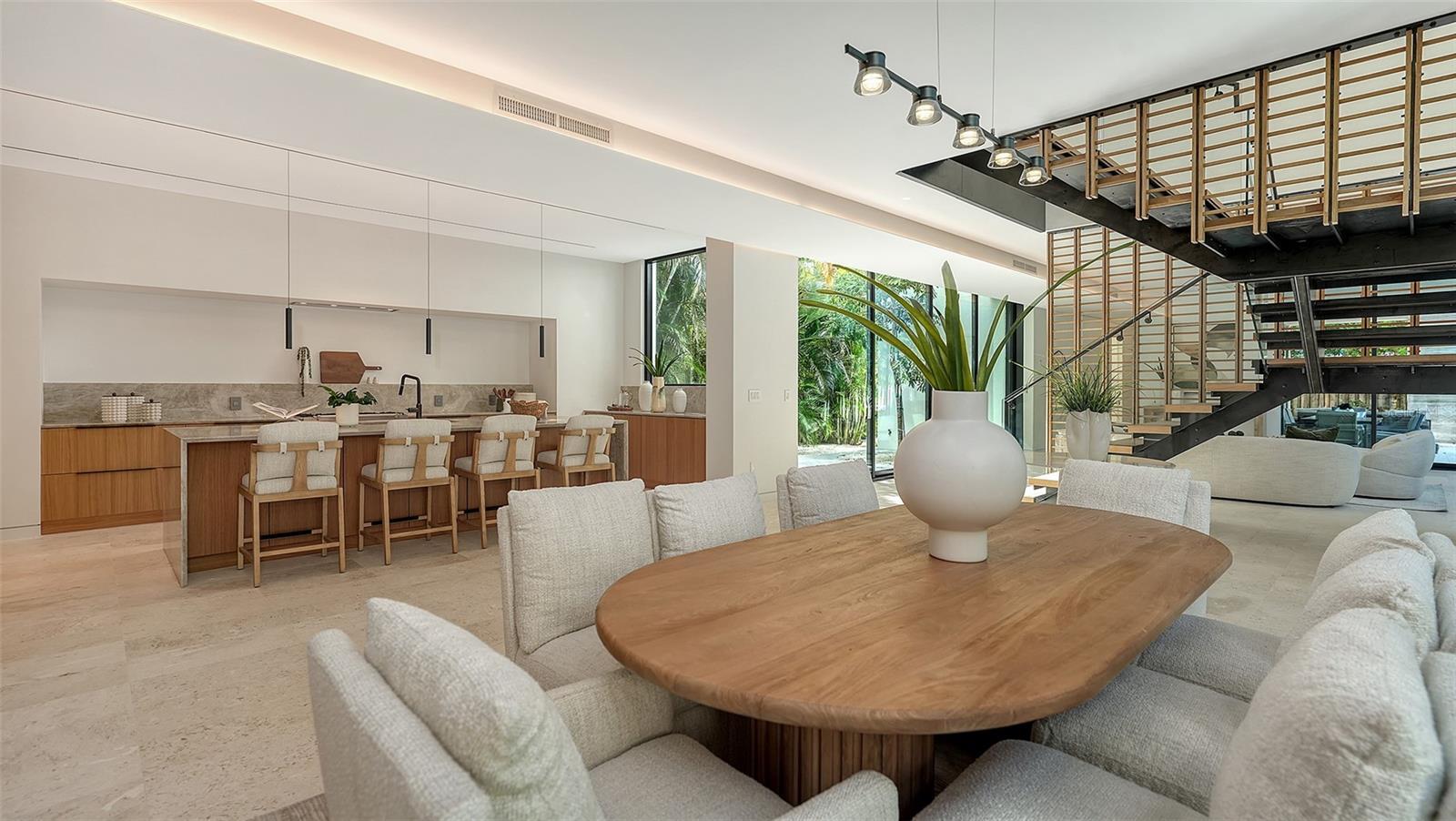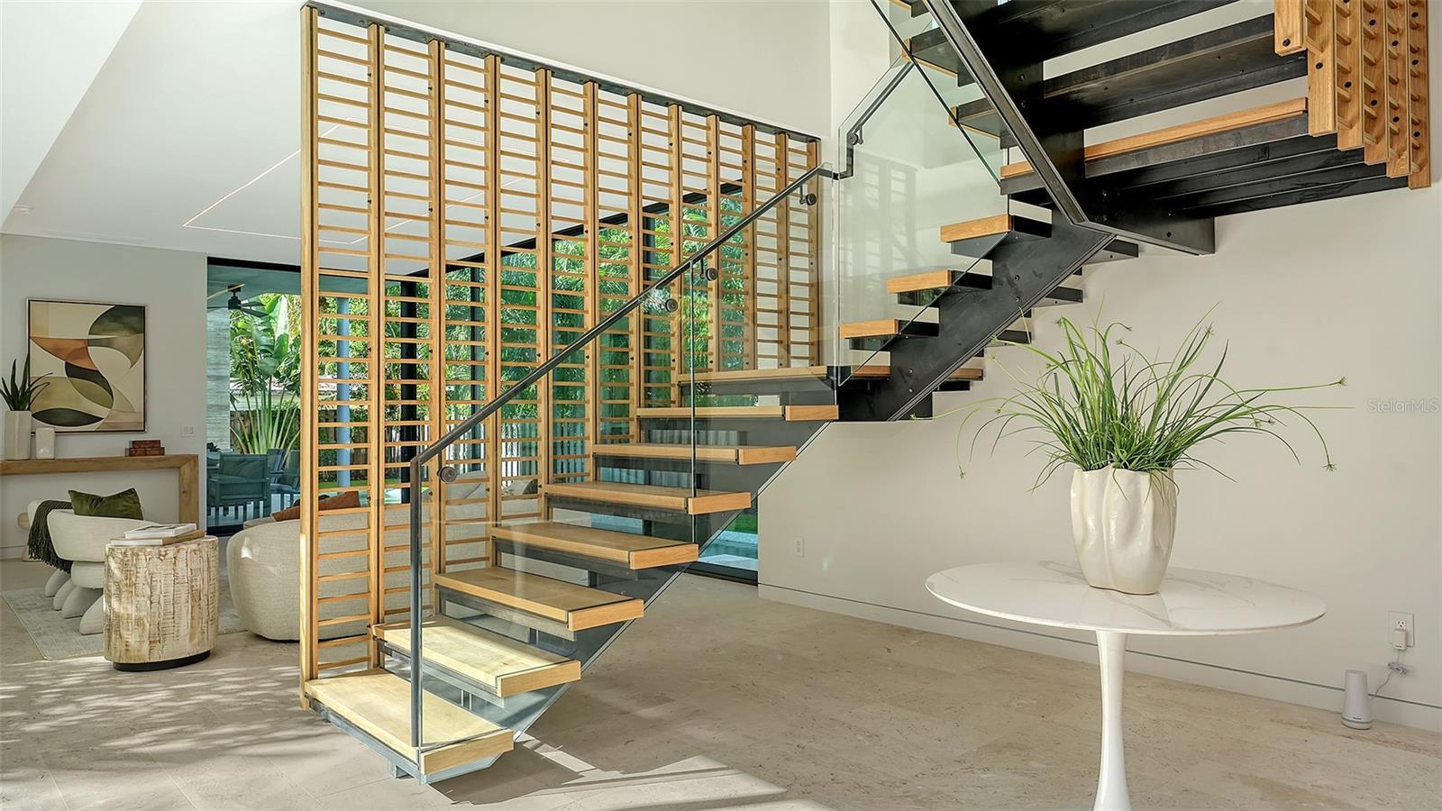 Stunning New Construction by Award-Winning Architect Dan Lear in coveted West of Trail Neighborhood** This meticulously designed luxury home offers the perfect blend of modern elegance and timeless sophistication. Near Selby Gardens, Morton's Market, and Sarasota Memorial Hospital, this exceptional property provides both convenience and style. Spanning over 3,800sqft of living area, this expansive residence boasts four spacious bedrooms, five full bathrooms, a enormous den with terrace, and a dedicated office space, all thoughtfully crafted for contemporary living. The grand, open-concept great room is the heart of the home, seamlessly floating over the pool area with a stunning large corner pocketing glass door that connects the interior to the beautifully landscaped outdoor oasis. The second floor features three guest suites, each with its own private terrace, offering tropical views and tranquility. The home's striking exterior showcases luxurious vein-cut travertine, creating a refined, sophisticated look. This is an extraordinary opportunity to move right in to a worry free one-of-a-kind masterpiece.