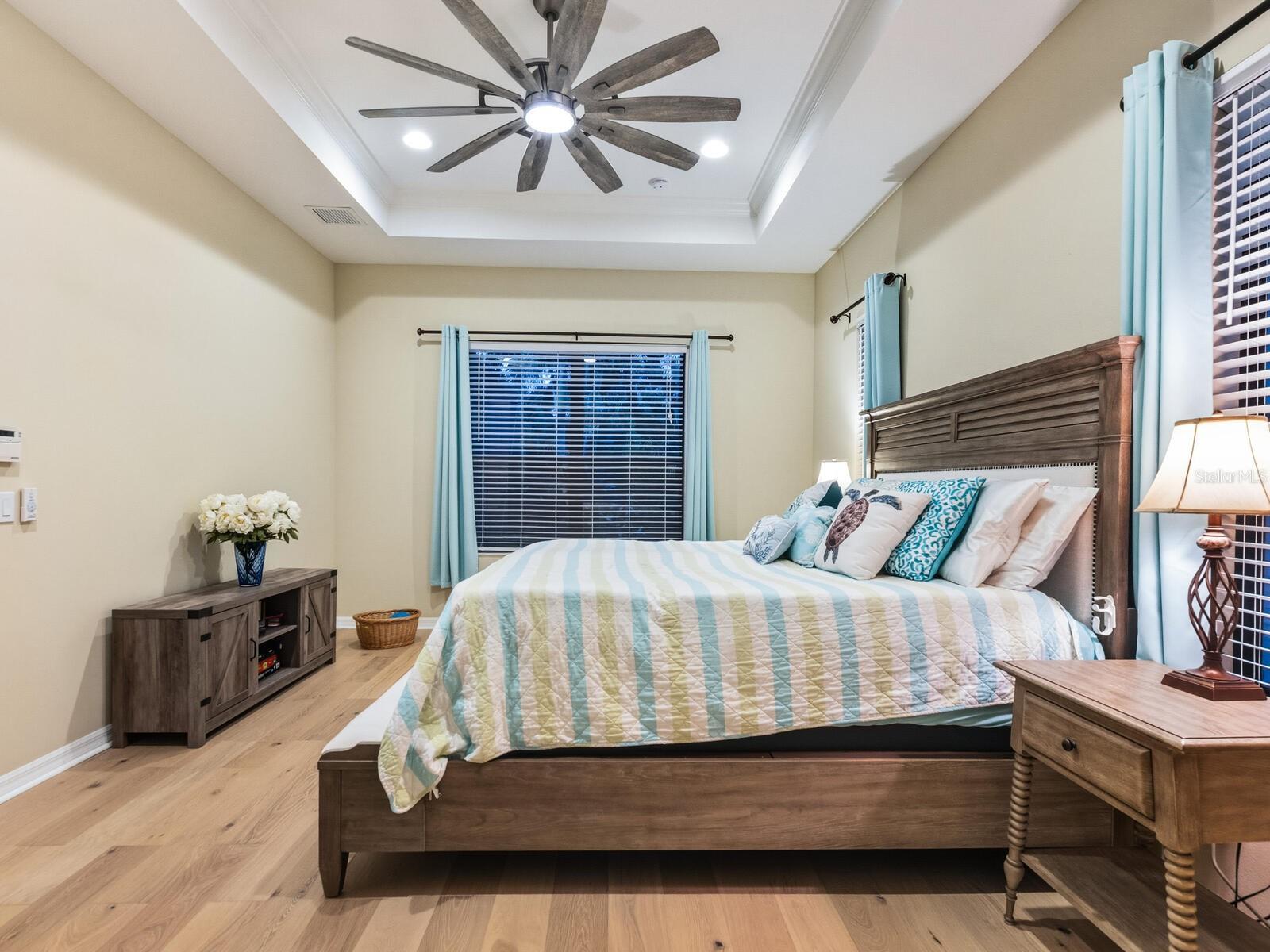 Discover this masterfully designed home beautifully accented by lush landscaping and nestled in a premier maintenance free community in Lakewood Ranch Country Club. From the moment you step in through the updated designer front door, you will marvel at the host of exceptional upgrades that embellish the living spaces including tray ceiling treatments in Family Room, Master Bedroom and Office with double entry glass doors. Preparing your favorite meals is a delight from the well-appointed kitchen featuring new stainless appliances, rich wood cabinetry, a stylish tile backsplash, granite counters, under cabinet lighting, pantry, breakfast bar and a charming dinette area that’s perfect for enjoying your morning coffee – all open to the family room making entertaining a breeze. The master suite is fit for royalty with custom suited walk-in closets and a master bathroom ideal for spa-like pampering. Sleek sliding doors from the family room open to generously sized heated Pebble Tec pool and spa with paver deck and pool bath, landscaped perfectly for privacy and beautifully lit in the evenings for poolside entertaining. Other notable features include home exterior painted 2023, tile and engineered hardwood throughout, new exquisite light fixtures and fans, full lanai cage refurbished 2025, new wireless pool controls 2025, lanai wood ceiling treatment, and air conditioned garage. Residents of the Lakewood Ranch Country Club are within easy reach of peaceful nature trails and parks, and just a short distance from the Main Street shopping district, UTC Mall, medical facilities, and I-75 for an unparalleled lifestyle defined by relaxation and recreation.