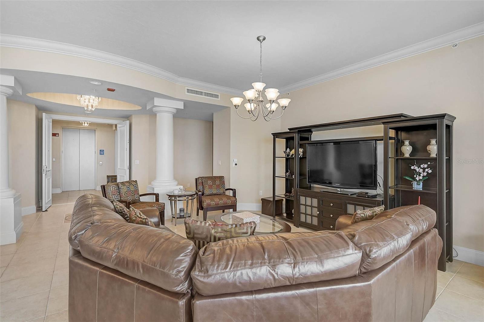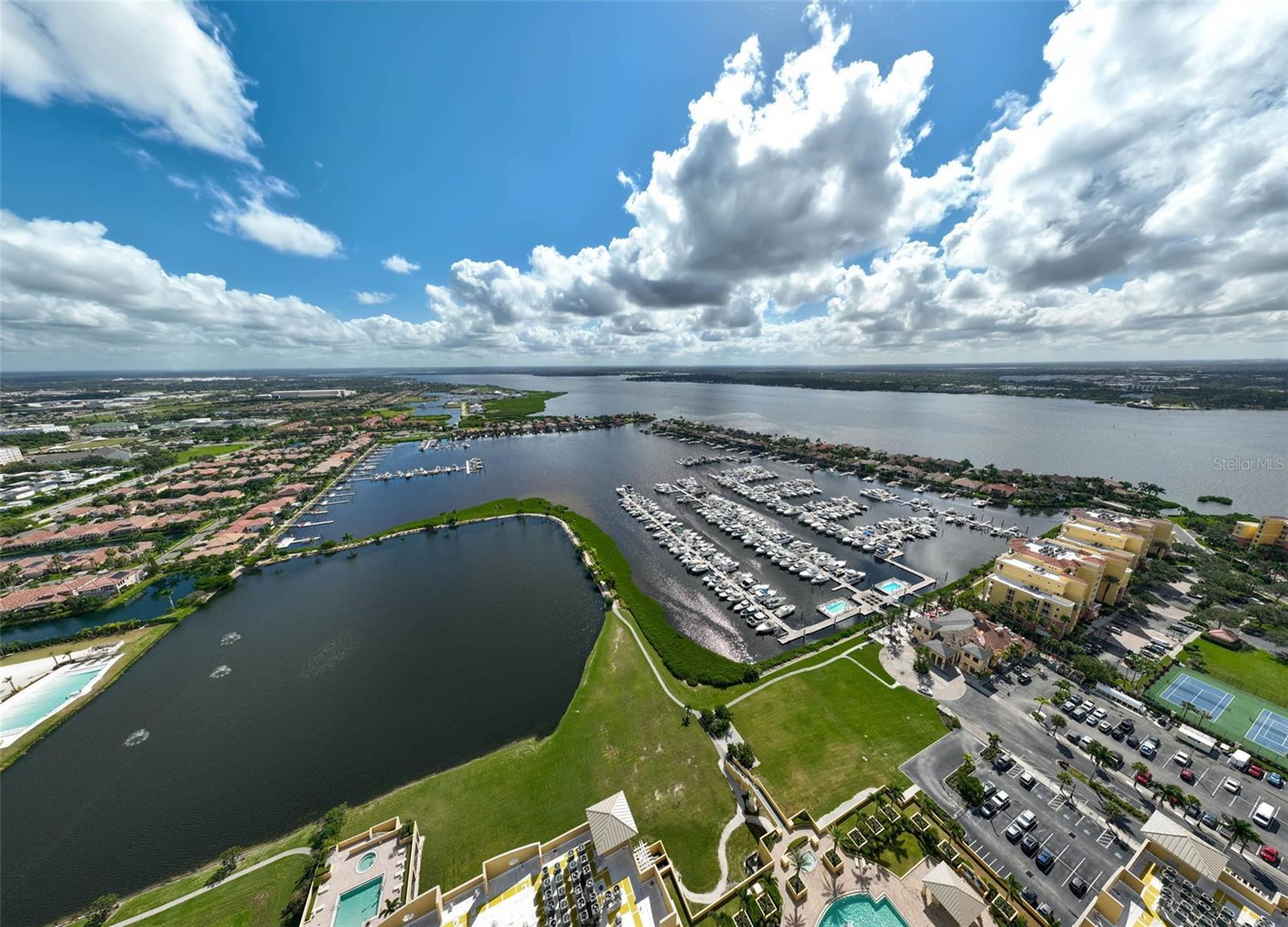 Experience unmatched waterfront value at Bel Mare, the crown jewel of the gated Riviera Dunes Marina community. This exquisite 3-bedroom plus den, 3.5-bath luxury residence offers nearly 3,000 square feet of refined interior living and an expansive 450-square-foot terrace with sweeping, unobstructed views of the Manatee River—a front-row seat to glowing sunsets, passing yachts, and dazzling fireworks reflected on the water. Opportunities like this, at this price point, are exceptionally rare in Bel Mare. A private elevator opens directly into your personal foyer, setting the tone for the elegance within. The open-concept living and dining spaces are framed by floor-to-ceiling IMPACT glass, flooding the home with natural light and showcasing breathtaking water views from nearly every angle. Designed for both everyday comfort and grand entertaining, the residence flows seamlessly onto the expansive balcony—perfect for al fresco dining or simply soaking in the scenery. The chef’s kitchen features rich wood cabinetry, stone countertops, stainless steel appliances, and a charming breakfast nook with water views. The owner’s suite is a serene retreat, offering panoramic river vistas, dual walk-in closets, and a spa-inspired bath with soaking tub, walk-in shower, and dual vanities. Two additional guest suites each enjoy private en-suite baths, providing exceptional comfort and privacy. A dedicated office/den or optional fourth bedroom, powder bath, and full laundry room with storage complete this thoughtfully designed home. Bel Mare delivers a true resort lifestyle, with two elegant pools and spas, grilling areas, movie theater, social and billiards rooms, and guest suites. Owners also enjoy access to the neighboring Marriott Resort & Spa Beach Club, including a fitness center, resort-style pools, and dog park. Two deeded parking spaces and a climate-controlled storage unit add convenience. Just minutes from downtown Bradenton, Sarasota, and St. Petersburg, this residence offers luxury waterfront living at a remarkably compelling price—an exceptional value in one of the area’s most prestigious addresses.