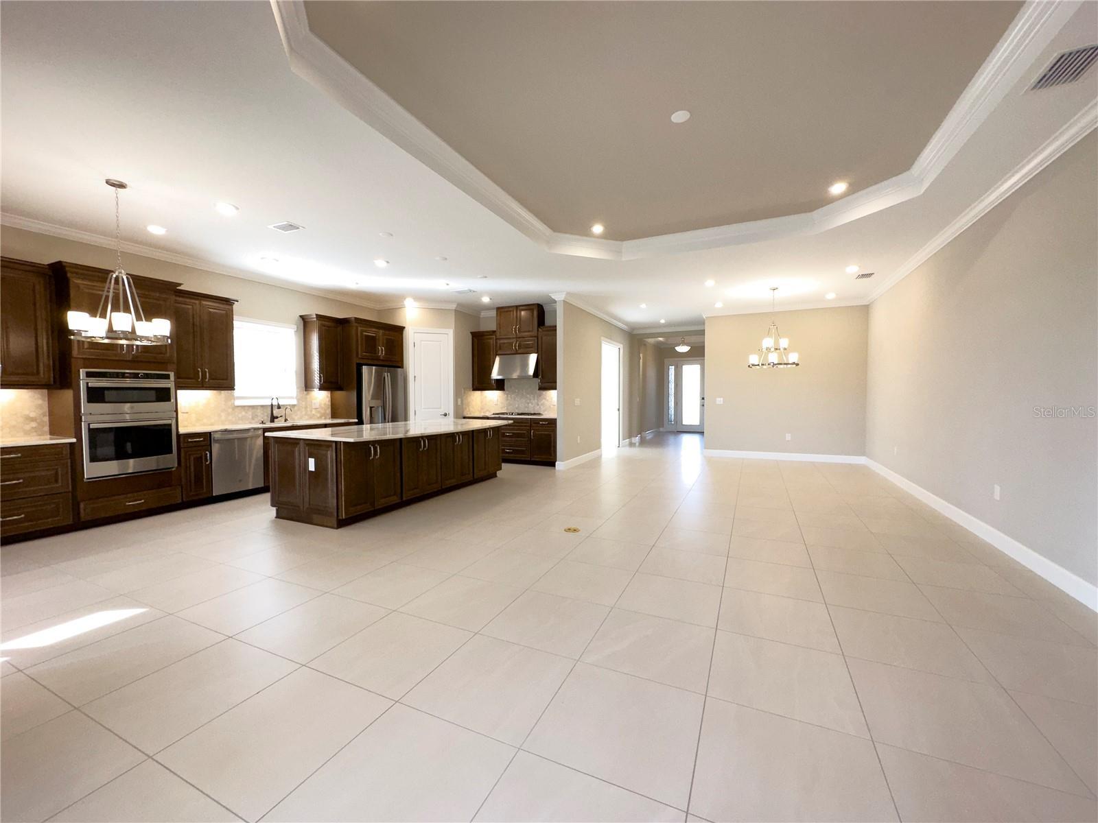 - Ceiling Fans(s), Crown Molding, Eat-in Kitchen, High Ceilings, Kitchen/Family Room Combo, Open Floorplan, Tray Ceiling(s), Walk-In Closet(s), Window Treatments