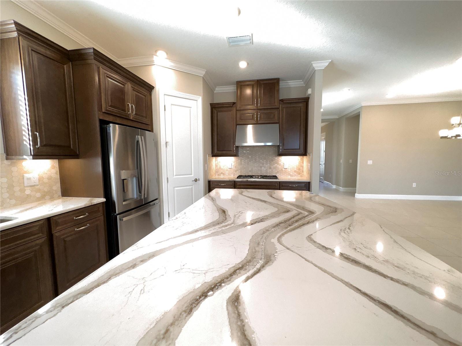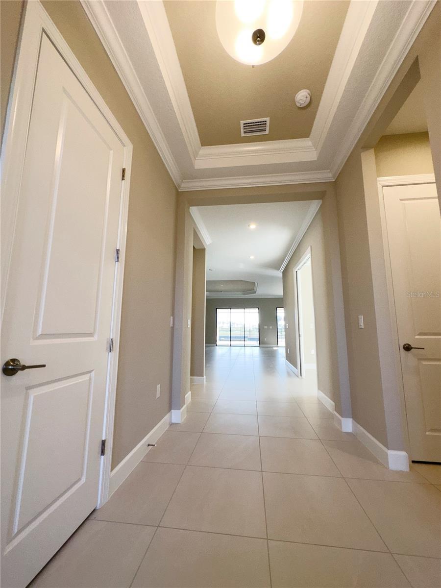 Available November 8, 2025 | Unfurnished. Experience refined Florida living in this elegant 3-bedroom, 3-bath residence with a private den and attached 2-car garage. Thoughtfully designed and beautifully appointed, this home offers an effortless blend of sophistication, comfort, and functionality. Every detail reflects quality craftsmanship—from the gourmet kitchen featuring quartz countertops, double ovens, and premium cabinetry to the tray ceilings accented with crown molding. The open-concept layout flows seamlessly from the main living spaces onto a spacious screened lanai, where a private heated saltwater pool and spa await. The lanai’s tranquil water views and child-safe enclosure create a serene and secure outdoor retreat, ideal for entertaining or unwinding in peace. Elegant tile flooring graces the main living areas, while engineered wood adds warmth to the bedrooms. The home’s soft, neutral color palette and tasteful finishes provide a timeless backdrop suited to a variety of décor styles. A second bedroom with an ensuite bath enhances privacy and versatility for guests or family. With its luxurious upgrades, thoughtful layout, and captivating water vistas, this home offers the perfect balance of style and relaxation—crafted for those who appreciate quality and understated elegance. Zoned for Skye Ranch Schools and Riverview High School.