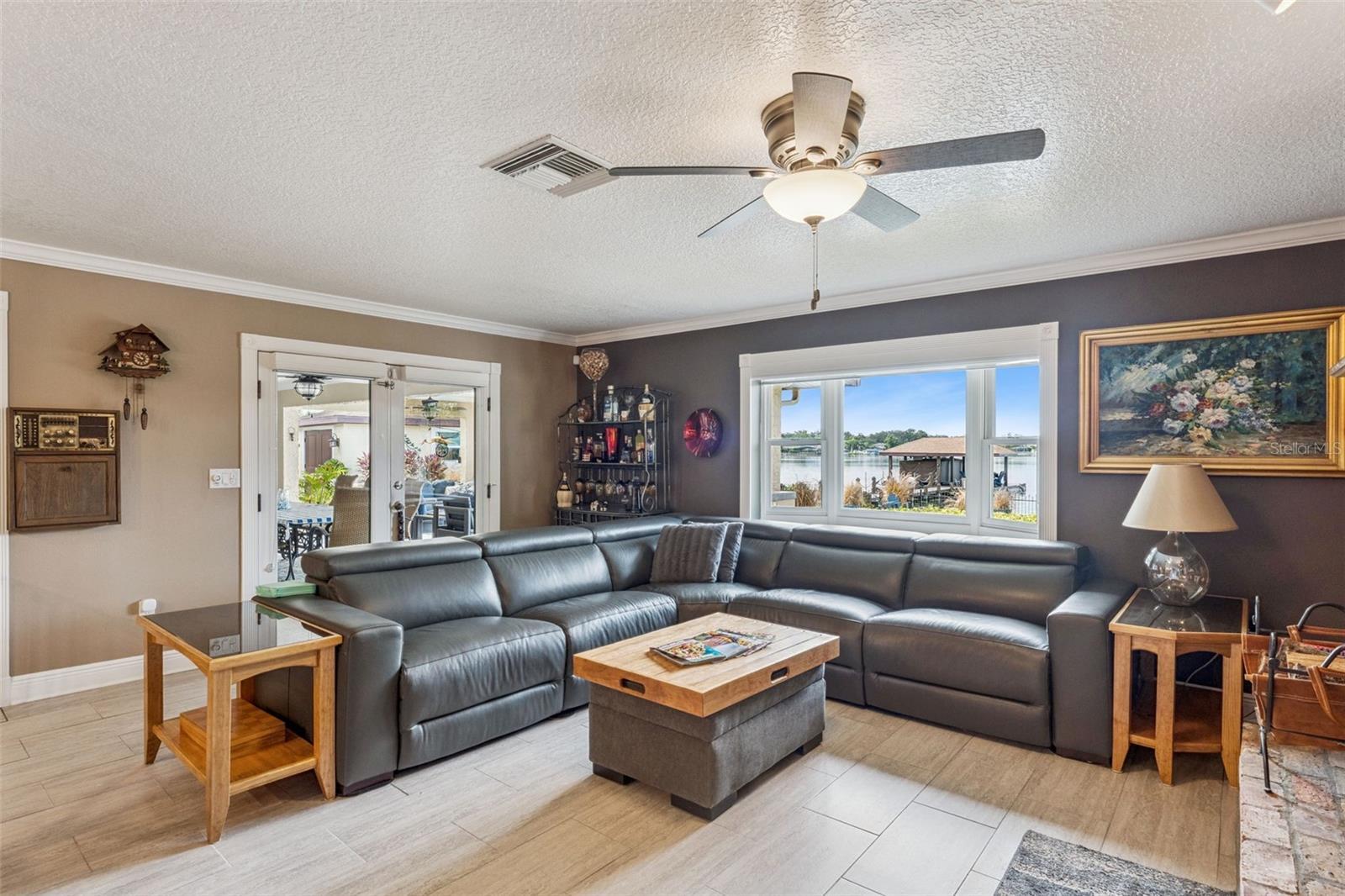 - Accessibility Features, Built-in Features, Ceiling Fans(s), Central Vaccum, Crown Molding, Eat-in Kitchen, Kitchen/Family Room Combo, Living Room/Dining Room Combo, Open Floorplan, Primary Bedroom Main Floor, Solid Surface Counters, Solid Wood Cabinets, Split Bedroom, Thermostat, Walk-In Closet(s), Wet Bar, Window Treatments