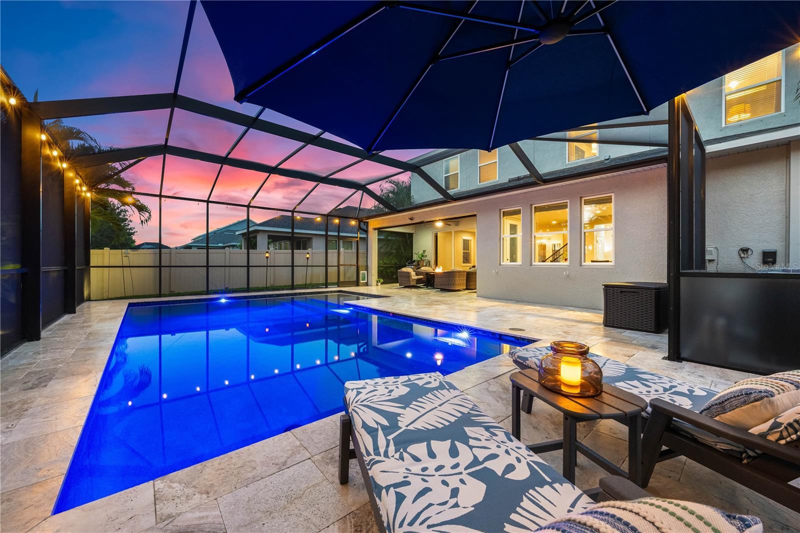 Welcome Home to this beautifully maintained property. The open Great Room is spacious and inviting, which leads right out to the gorgeous pool area and fenced in backyard. There is also a coveted 3 car garage! The floors are a neutral tile (that looks like wood) and are throughout the downstairs area. The beautiful staircase is engineered hard wood. The kitchen is huge, immaculate and stylish with granite counter tops and counter seating. Upstairs you'll find the primary bedroom, beautiful en-suite bathroom and super-size closet. Two additional bedrooms, the second bathroom and a loft area for study or play zone. This 11 x 15 area could also easily be converted to a 5th bedroom. (See attached floor plan) Convenient upstairs laundry is also a plus! Wait until you see the spectacular, large, saltwater pool and ample deck space, both in and out of the sun. The pool was new in 2022 and has a heater and a large sun shelf with a pool umbrella. The pool decking is travertine, and the interior of the pool is pebble tec. The lighting at night is “drop dead knock your socks off”! The exterior was painted in 2023. A whole house 50Amp generator hook-up is included for peace of mind and hurricane shutters as well. A new water heater was installed in 2024. Palmer Reserve is located very near to Tatum Ridge Elementary and the Celery Fields. Just East of 75, a growing area, with a new Publix at Fruitville Farms, and the Fruitville Library, and a short drive to the UTC area, Waterside at Lakewood Ranch for dining and shopping, and the brand-new Mote Marine Aquarium. This location can't be beat. Easy access to I-75, or downtown and the hospital. No CDD fee and low HOA that covers cable, internet, irrigation, the community playground and common area maintenance. This home has been lovingly maintained and is in pristine condition with beautiful landscaping and landscape lighting. You will not be disappointed!!!