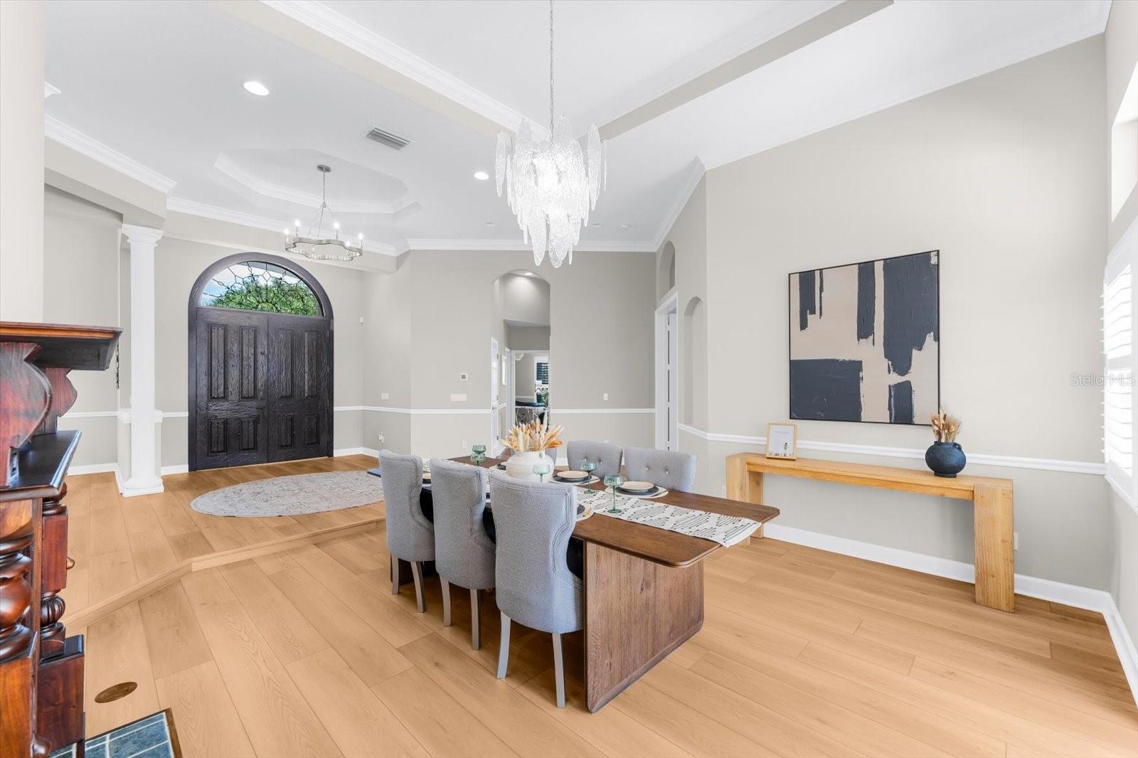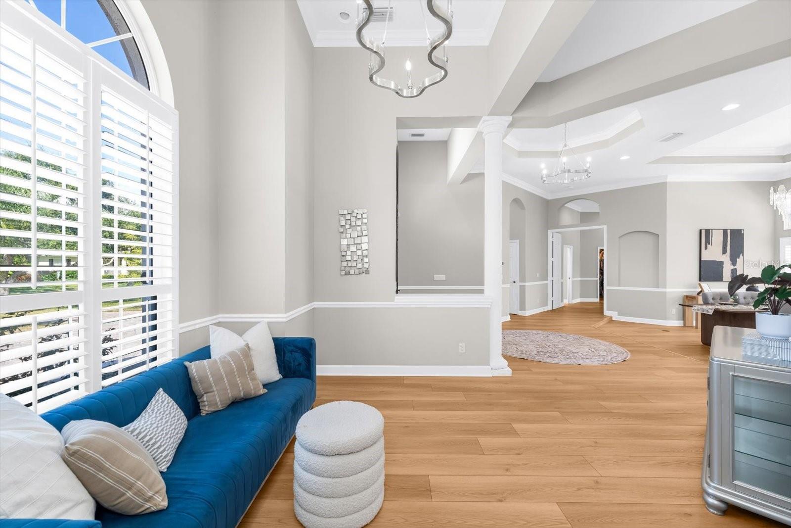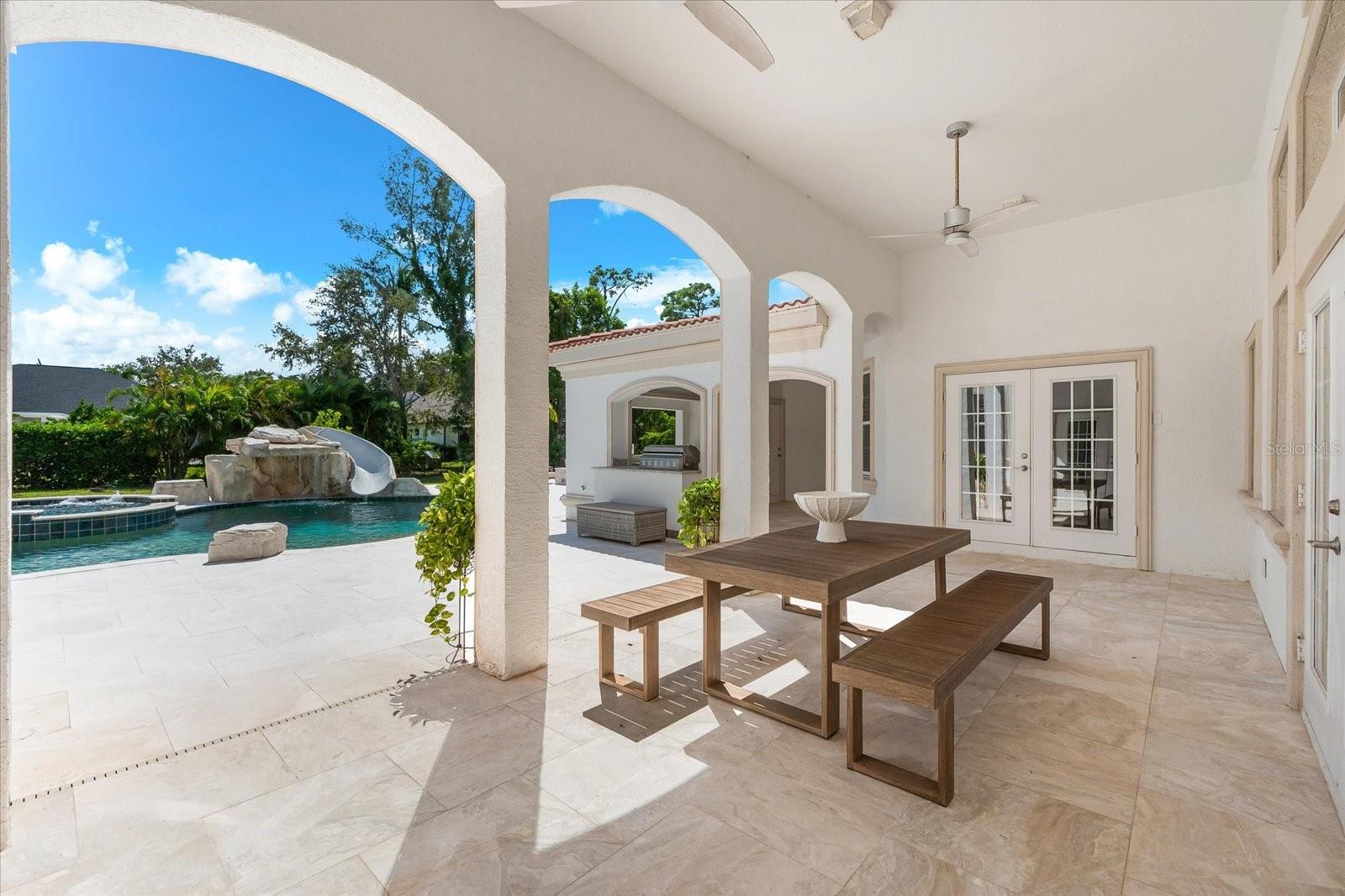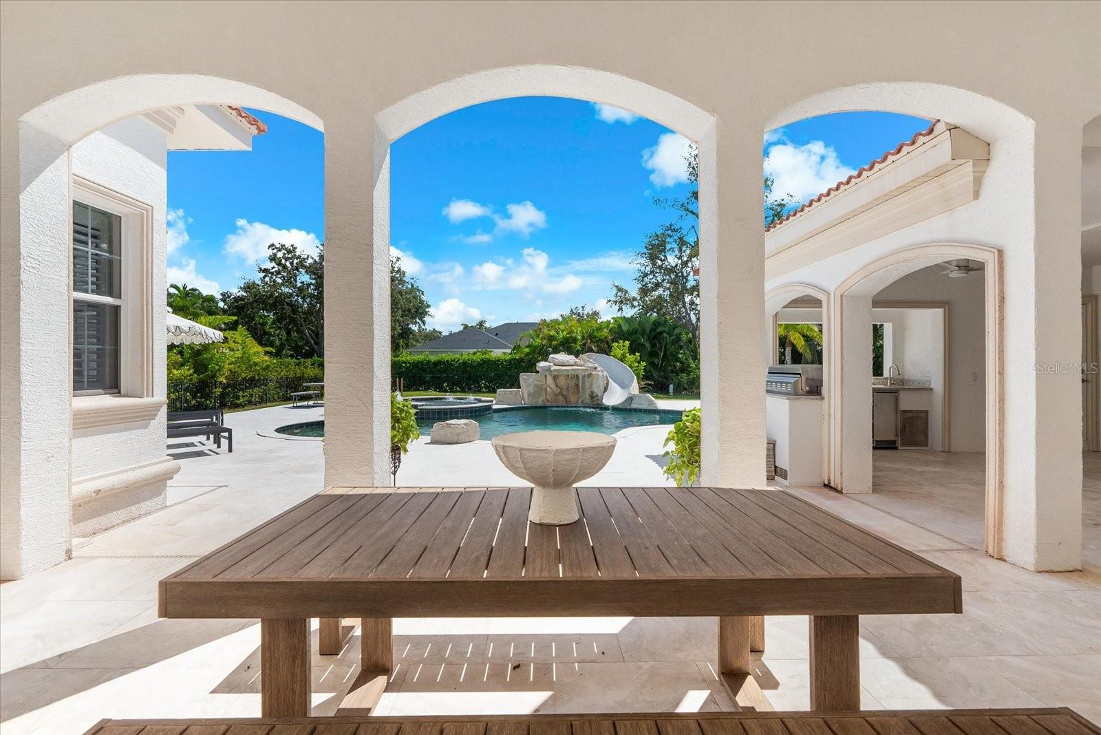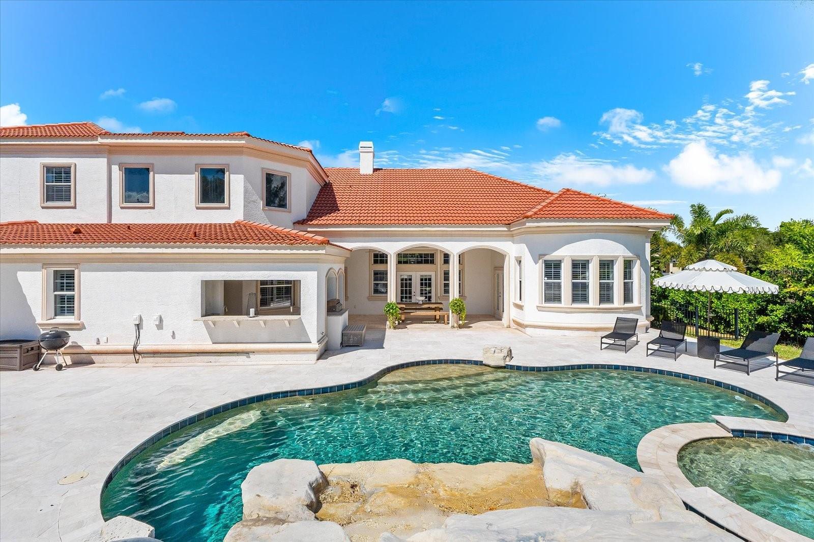 Welcome to "THE LOOP” — A Premier Gated Community in Northwest Bradenton! This stunning estate offers nearly 5,000 sq. ft. of heated living space (6,485 sq. ft. under roof) with 5 bedrooms, 6 bathrooms, plus a den, all set on over a half-acre lot in one of Bradenton’s most sought-after neighborhoods. Located in Flood Zone X500, flood insurance is not required, adding both value and security to your investment. Step inside to find recent updates throughout, including three newer AC units, flooring, plantation shutters, refreshed interior and exterior paint and updated interior electrical (All redone on 2020). Freshly painted baseboards and crown molding painted throughout, along with a fully renovated primary bathroom and new hot water heater (2025). The home features a split floor plan with expansive living areas, high ceilings, and timeless design details. The backyard is a true tropical retreat with a heated saltwater pool and spa (2021) featuring a waterslide and waterfall, plus a brand-new outdoor kitchen (2025) equipped with a wine refrigerator, ice maker, grill, kegerator with dual taps, and propane fire pit. Perfect for hosting or relaxing year-round. Don’t miss this rare opportunity to own in The Loop — just minutes from Robinson Preserve, top-rated schools, boat ramps, and the beaches of Anna Maria Island. Experience the very best of Northwest Bradenton living!