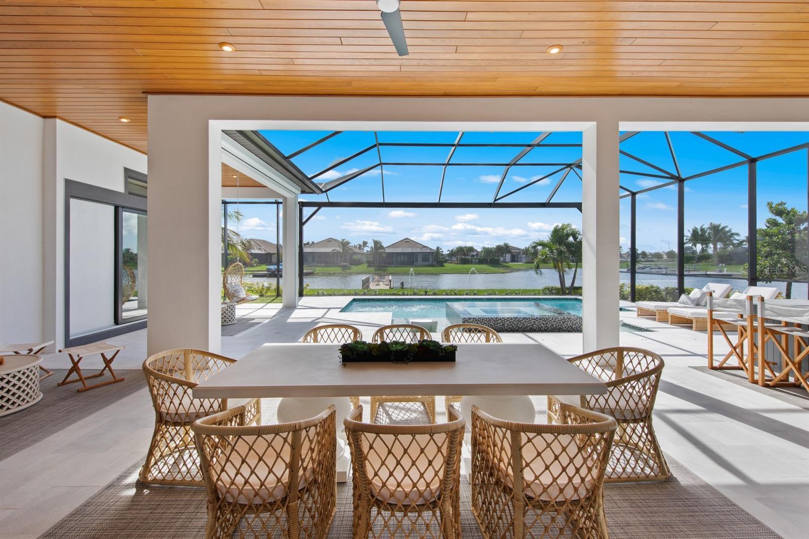 Every detail of this lakefront residence was designed to inspire — a rare opportunity to own one of Esplanade Lake Club’s most extraordinary homes. Perfectly positioned on a Southern-facing cul-de-sac lot, this custom-designed estate offers nearly 5,000 square feet of living space, ultimate privacy, and panoramic lake views. With a private dock and expansive outdoor living, it’s a home that defines resort-style living — where every space feels as comfortable as it is beautiful. Classy yet inviting, this residence blends elegance with comfort and livability. The open-concept floor plan features 5 bedrooms plus home office/den, 4 full baths, 2 half baths, and a 3-car garage. A grand great room anchors the home with custom ceiling treatments, a natural gas fireplace, and serene water views. The first-floor primary suite provides a peaceful retreat with spa-inspired ensuite bath and generous walk in closets. The gourmet kitchen is a chef’s dream with GE Café appliances, quartz countertops, a reverse-osmosis water system, and a spacious walk-in pantry. Upstairs, a versatile bonus room with kitchenette and a guest suite with custom built-ins create the perfect space for family or guests. Step outside to your private lakeside oasis — a heated custom pool with infinity-edge spa, sun shelf, and putting green all overlooking tranquil waters. Entertaining is effortless with a full outdoor kitchen featuring Blaze grill, Summerset pizza oven, refrigerator, and cypress wood ceiling with electric roll-down screens. Additional features include impact-resistant windows and doors, a 26kW Generac Guardian Natural Gas generator, and meticulous designer details throughout. Furniture package is negotiable. Located within Esplanade Lake Club, a 352-acre gated lakefront community on Lake Como just on the Estero border, residents enjoy premier amenities including a lakefront beach, Bahama Bar & Grille, fitness center, tennis, pickleball, bocce, dog park, and more. All within minutes of RSW Airport, Gulf Coast Town Center, and world-class shopping and dining. Modern design. Panoramic water views. Unmatched privacy. This is Esplanade Lake Club living at its finest.