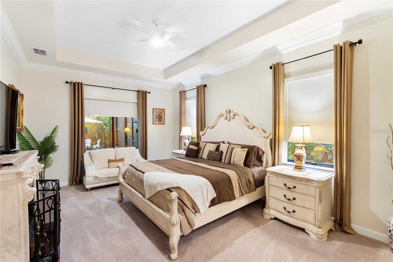 MOTIVATED SELLERS NEW IMPROVED PRICE LUXURIOUS RESORT-STYLE LIVING IN LORRAINE LAKES, LAKEWOOD RANCH! Experience the pinnacle of Florida living in this stunning 2022 Sunset Model located in the highly sought-after, gated community of Lorraine Lakes. Set on an oversized lot, this 3-bedroom, 3-bathroom home with a dedicated office/den offers an unparalleled blend of luxury, convenience, and vibrant community living in Lakewood Ranch—voted the #1 multi-generational community in the U.S. for five consecutive years. Inside the home, every detail exudes elegance and thoughtful design. The chef-inspired kitchen stands as the centerpiece, boasting an oversized quartz island that easily accommodates family and guests alike. Complemented by custom tile backsplashes, and a five-burner gas cooktop, this kitchen blends beauty and functionality for both everyday living and entertaining. The open-concept design flows seamlessly across the tile flooring throughout the main living areas, enhancing the sense of space and sophistication. The living area boasts elegant tray ceilings and a custom ledgestone accent wall with a modern electric fireplace and floating shelves, creating a warm ambiance. Enjoy the peace of mind of a whole-home water filtration system and the convenience of a spacious three-car garage. The primary suite is a true retreat, featuring a tray ceiling, a modern electric fireplace, and sliding glass doors that open directly onto the screened lanai—creating a perfect blend of indoor and outdoor comfort. The luxurious ensuite bathroom showcases dual sinks, an enormous walk-in shower, and an abundance of natural light, completing this spa-like sanctuary. Step into your private, tropical outdoor oasis! The custom, heated pool features beautiful waterfall features and glass water bowls, surrounding a relaxing raised spa that overflows seamlessly into the pool. This true resort-style setting is enveloped by lush tropical foliage and finished with premium Travertine decking. The expansive, screened lanai and paver pathway from the garage complete this magnificent outdoor space. The home is surrounded by mature tropical landscaping, offering privacy and lush greenery that frames the property beautifully. This attention to exterior detail continues the resort-style experience, both indoors and out. Lorraine Lakes' HOA includes gated security, cable, internet, and lawn care, granting you maintenance-free access to the spectacular 25,000 sq ft Town Center clubhouse. Amenities include a full-service restaurant/tiki bar, multiple pools (including a lap pool and splash pad), a state-of-the-art fitness center with saunas, tennis, pickleball, basketball, bocce ball, and volleyball courts. Engage with neighbors through a packed schedule of social events, including wine tastings and trivia nights! This property is an ideal investment with incredible rental flexibility, allowing up to 12 rentals per year—perfect for snowbirds looking to generate income. The desirable Lakewood Ranch location is minutes from top-rated schools, major highways, the world-class shopping and dining of University Town Center (UTC), international rowing at Nathan Benderson Park, and the pristine Gulf Coast beaches of Sarasota. Don’t miss this chance to own an exceptional home where luxury meets lifestyle in beautiful Lakewood Ranch!
