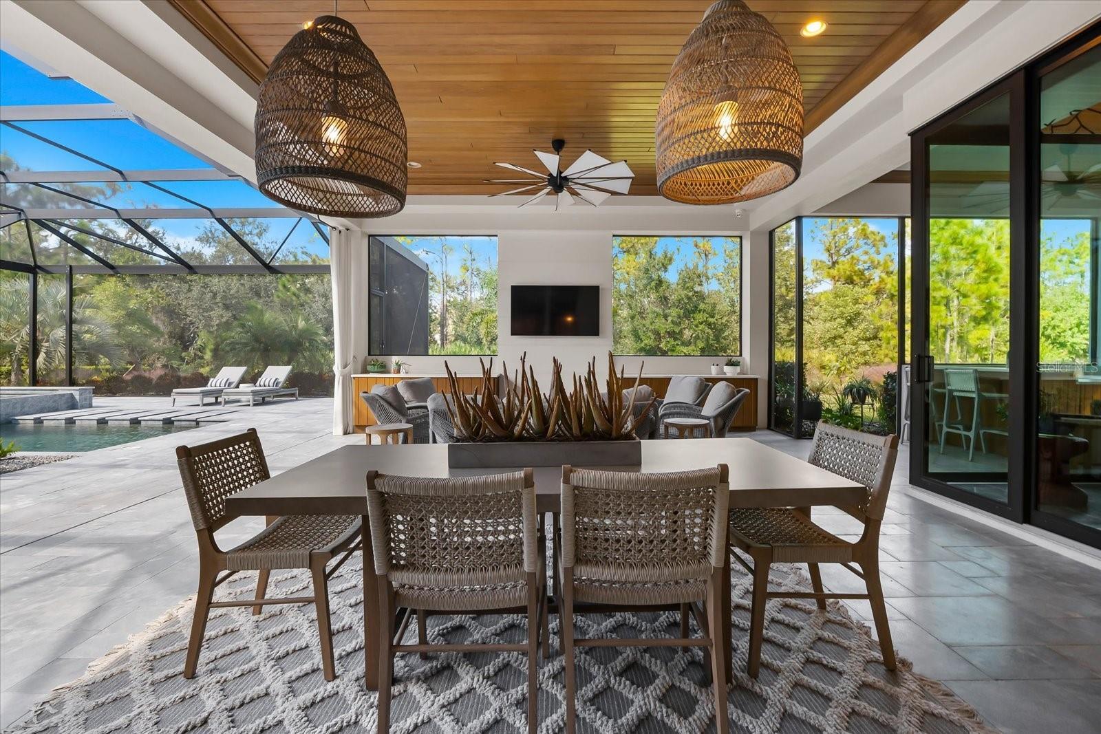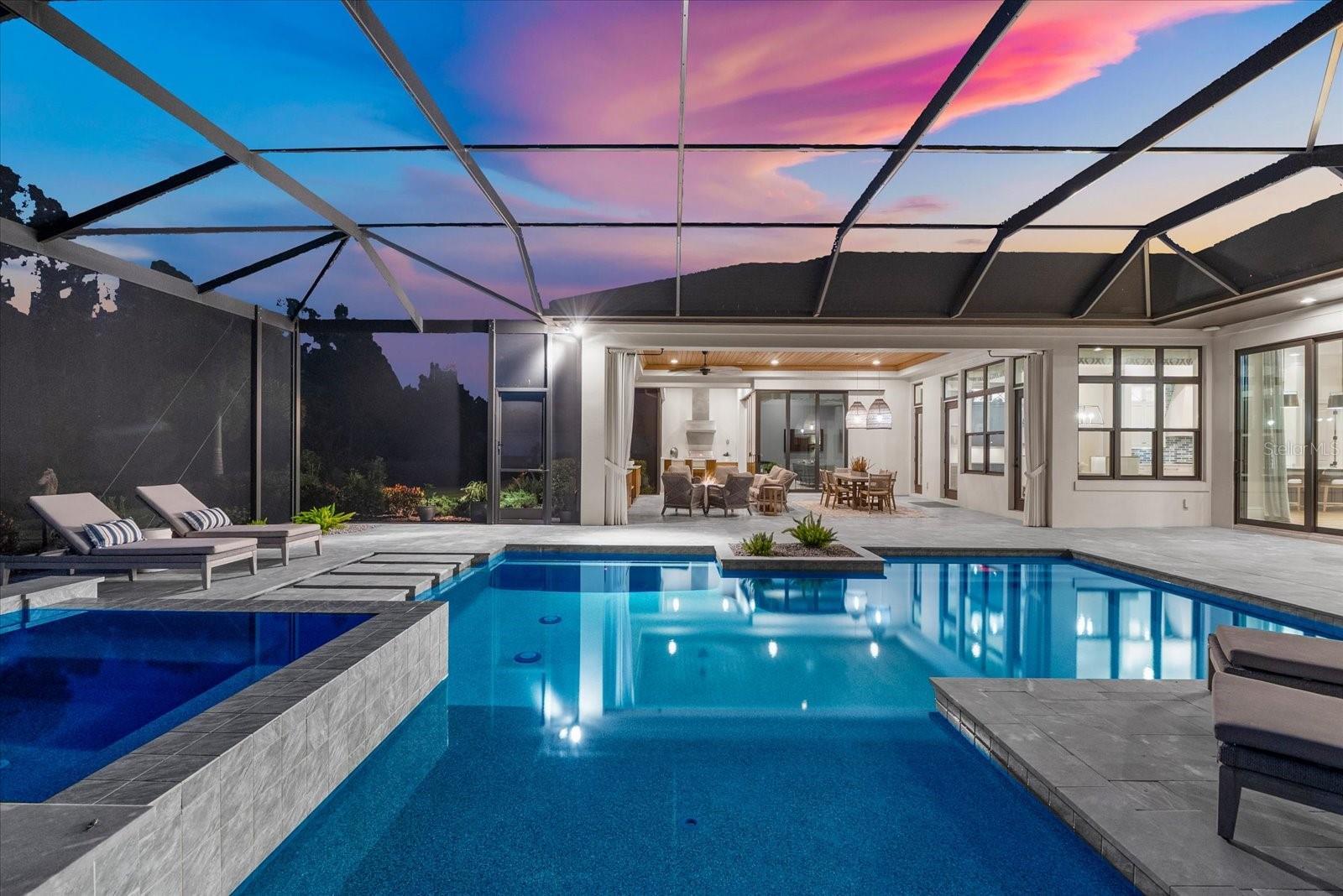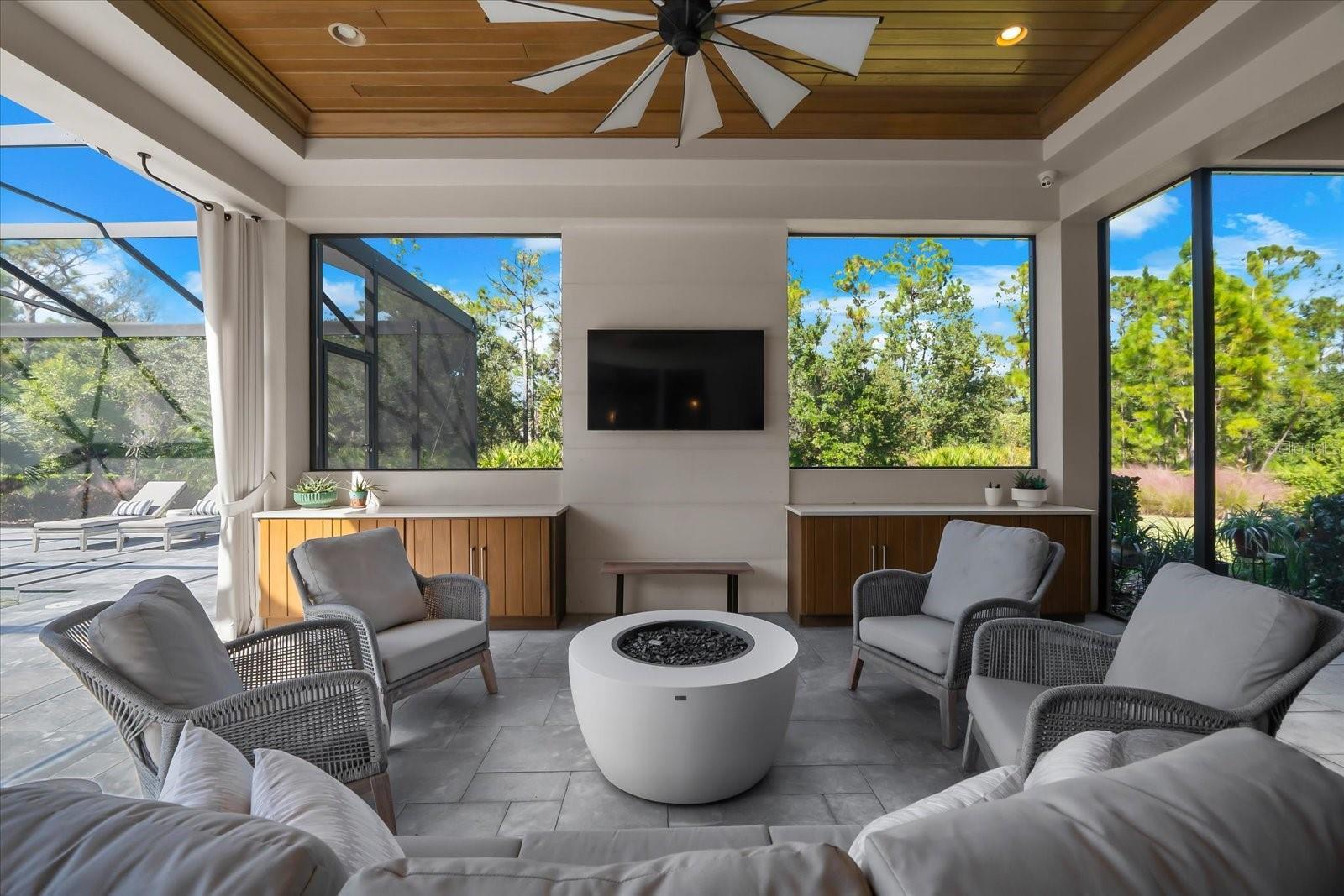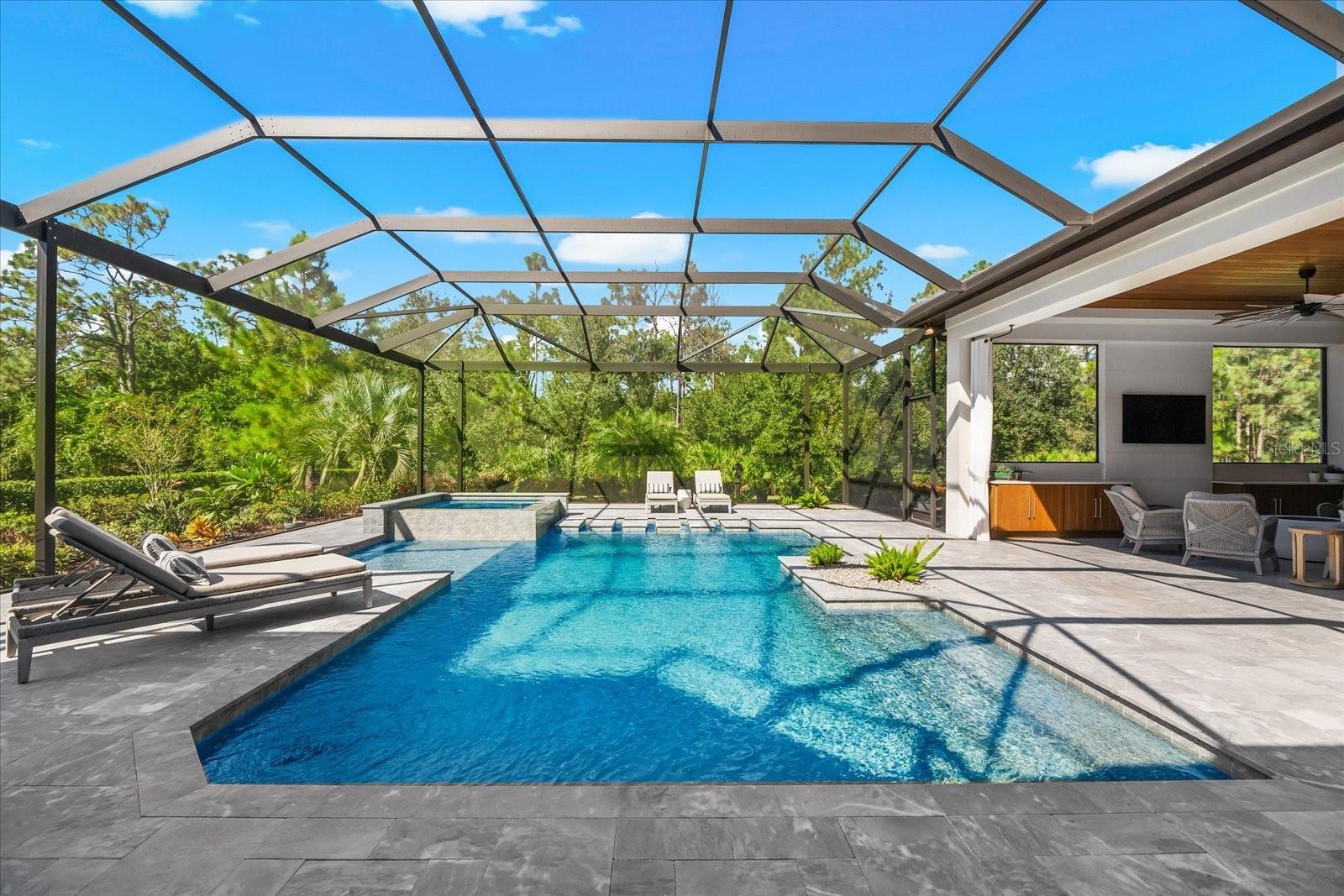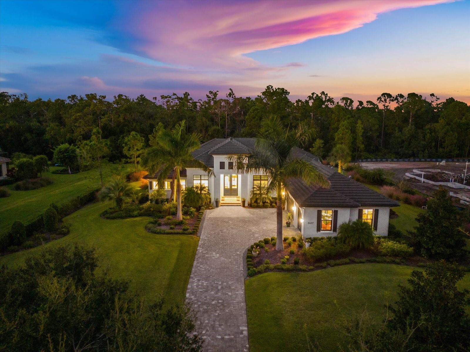 Under contract-accepting backup offers. A Rare Opportunity in The Concession – Former Anchor Builders Model. Why wait to build when you can move right into this award-winning, professionally decorated and fully furnished former model home? Winner of the 2021 Parade of Homes for Best Overall Home and Certified Green Home, this Anchor Builders’ masterpiece blends the highest level of quality and timeless craftsmanship with modern luxury, all set on a private one-acre homesite in the prestigious Concession. From the moment you arrive, the grand driveway and stone-columned entry create an unforgettable first impression. Step inside to soaring ceilings, walls of impact glass, oak floors, and architectural details that showcase the extraordinary level of finish. At the heart of the home, an open great room with a dramatic stone fireplace flows seamlessly into the chef’s kitchen equipped with Sub-Zero, Wolf, and Cove appliances, quartz counters, a large center island, raised panel custom cabinetry, and butler’s pantry. Every detail is designed for entertaining and effortless living. Relax in the primary suite, a spa-like retreat featuring a stand-alone tub, oversized shower, dual vanities with custom cabinetry, two walk-in closets with built-ins, and serene pool views. Three additional en-suite bedrooms each offer their own private sanctuary, complete with designer bathrooms and walk-in closets with custom shelving. Work from home in the office/den, complete with custom built-in shelves and a desk, offering both functionality and elegance. A versatile bonus room serves as a favorite gathering spot, with corner sliding doors that open to the outdoor lanai, perfect for entertainment, media, or play. But the true showstopper is outside. The expansive lanai is a resort all its own, complete with outdoor kitchen, fire pit, cypress wood ceilings, custom cypress cabinetry, leathered marble pavers, saltwater pool with sun shelf, and spa. Imagine evenings by the fire, weekend gatherings around the grill, and quiet mornings overlooking your private, wooded view. Smart home technology, energy-efficient insulation, custom window treatments, plantation shutters, and even a climate-controlled interior storage room ensure this residence is as functional as it is beautiful. Exquisite and meticulously maintained, this home enjoys an ideal location within The Concession, a gated community known for its privacy, serene natural beauty, and spacious estate homesites. Meticulously maintained and elegantly furnished, this is more than a home, it’s a statement of style, comfort, and luxury. Few properties offer this level of design, privacy, and lifestyle. Opportunities of this caliber within The Concession are exceedingly rare; experience a residence that truly stands apart.