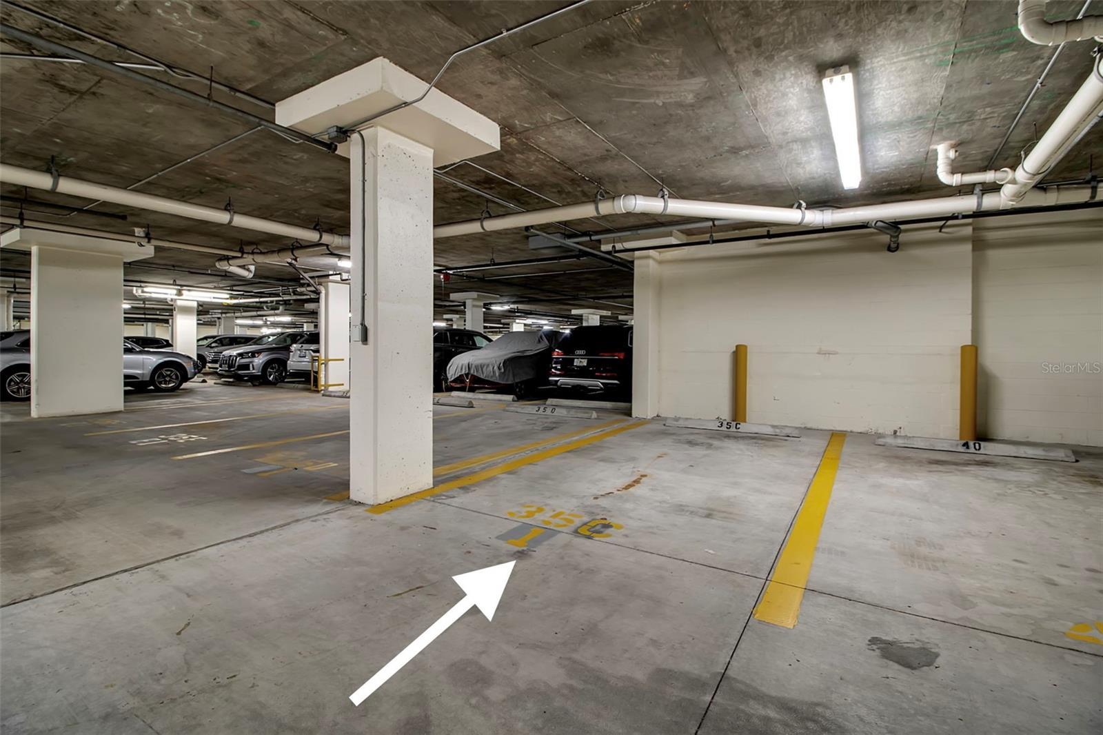 - Assigned, Common, Covered, Deeded, Garage Door Opener, Ground Level, Guest, Open, Portico, Basement