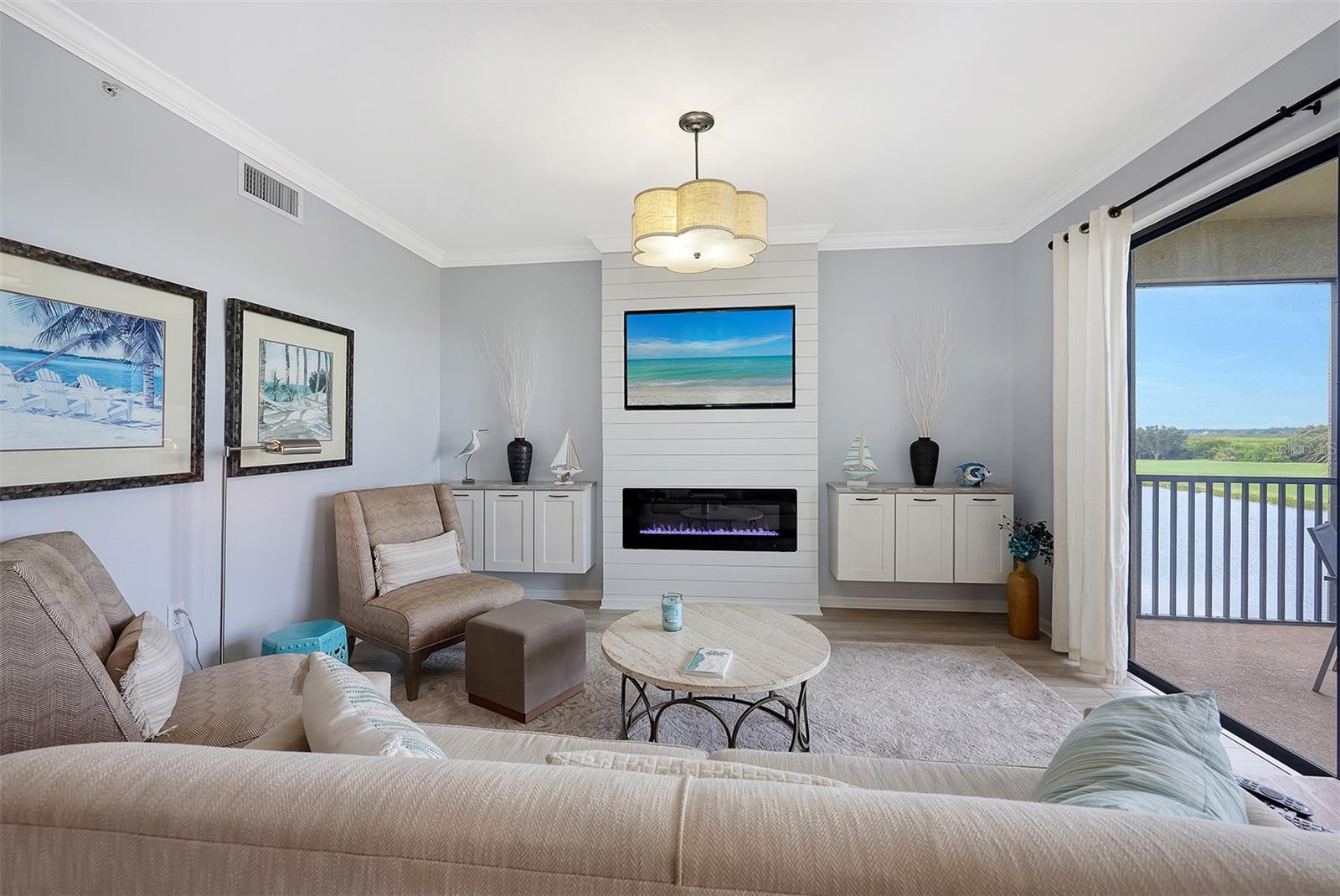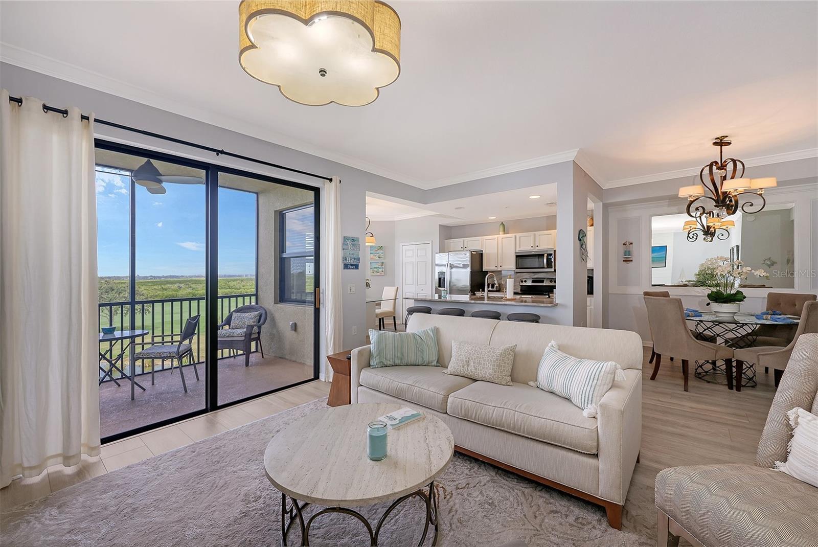 AVAILABLE FOR 2026 PRIME SEASON. Come play golf, tennis or pickleball at River Strand. This unit has great views of the lake, greenbelt, golf course and amazing sunsets. This unit has been remodeled with the latest colors of the year and new kitchen counter tops, new flooring, all new paint through out. It will WOW you when you walk in with the soothing color selection and beachy flare through out. The master suite has a king and the guest bedroom has a queen bed. This gated golf resort community is great location for easy access to I75, Costco and new restaurants. Come and enjoy the warm weather and sunshine rays.