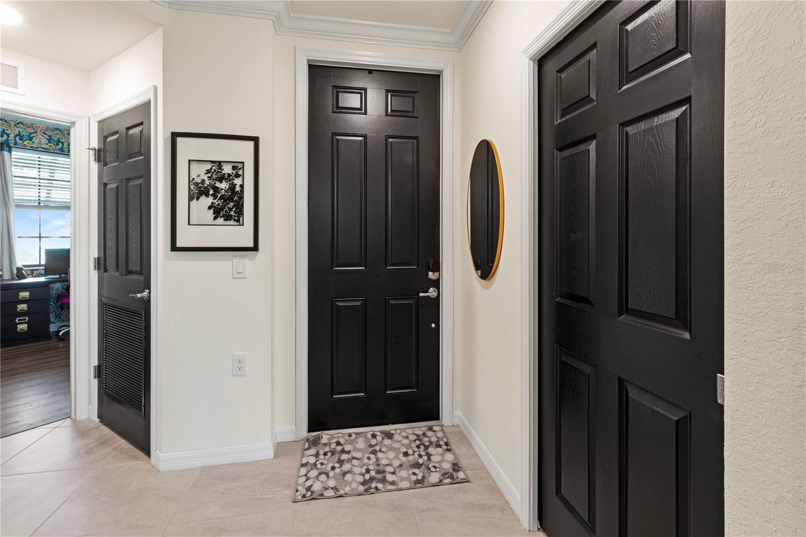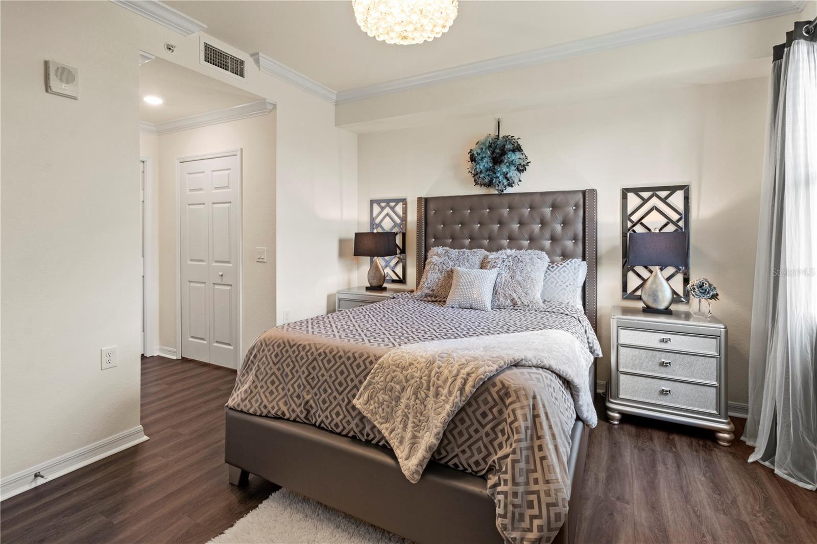- Crown Molding, Eat-in Kitchen, High Ceilings, Open Floorplan, Solid Surface Counters, Solid Wood Cabinets, Walk-In Closet(s), Window Treatments
