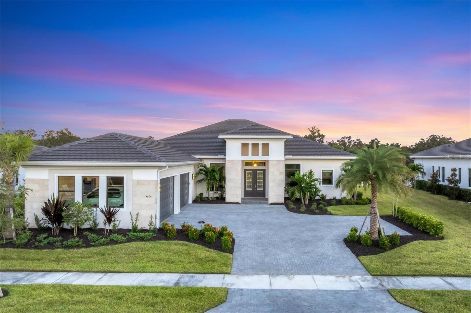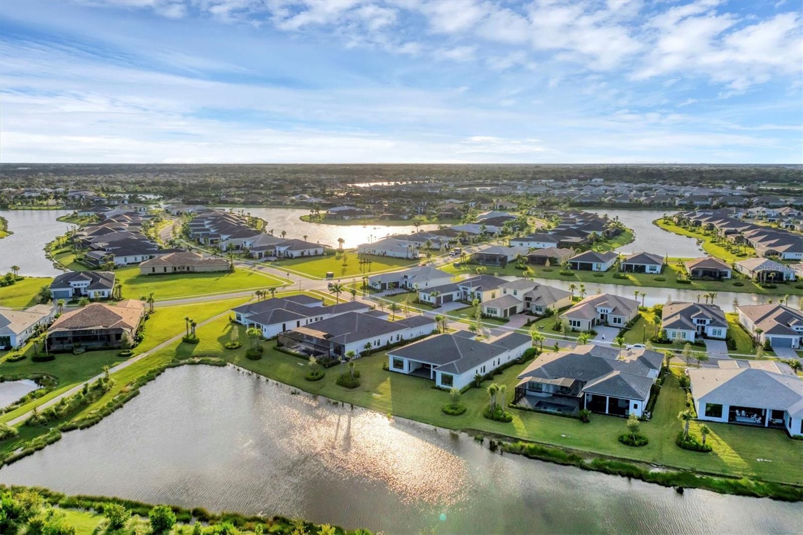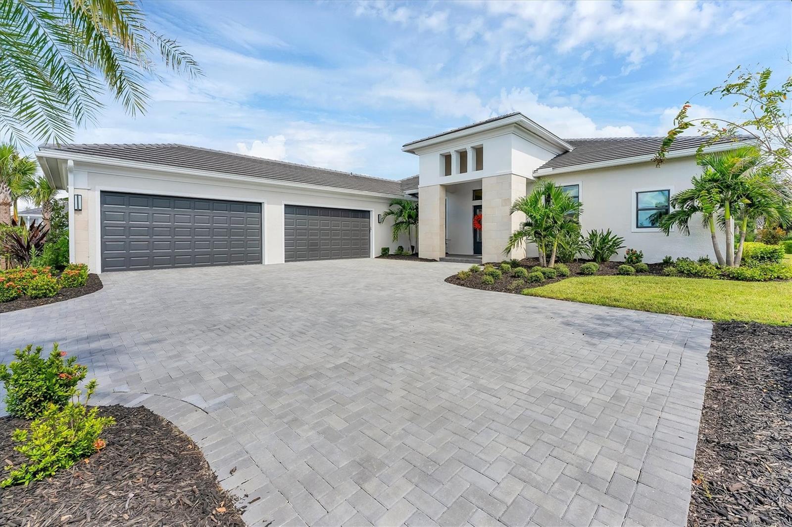 Looking for THE best views in the community? You'll discover them here, every day! Welcome to Artistry–Sarasota, where you can experience luxurious resort-style amenities, security and maintenance-free living without the CDD fees. This beautifully designed Palmer model with bonus room and four-bay garage provides storm security with impact windows and doors, concrete block construction and concrete tile roof, as well as the energy efficiency of spray foam insulation. With one of the most optimal floor plans available, this residence offers generous living spaces with ample natural light and showcases the most spectacular views in the community. Located in the coveted section of Artistry on an estate-sized lot, you will enjoy the serene and naturistic views overlooking the water as well as the green and lush preserve that borders this side of Mondrian Court. From the moment you and your guests enter through double glass doors, you’re greeted by a wall of sliding glass that invites you out to the covered lanai and breathtaking views. Continuing throughout the home, you will see countless elegant features and design on display. This luxurious residence offers spacious living areas, three-bedrooms, 4.5 baths, a private office/den, a formal dining room, great room and a designated pool bath, a large bonus room with built-in wet bar, remote shades and an exterior door to access the covered lanai. The outdoor living area provides ample space for a pool and is plumbed and wired for an outdoor kitchen. The home is equipped with several significant upgrades, from oversized modern style crown molding accentuating the 12-foot tray ceilings to gorgeous plank wood-grain tile flooring, the extended kitchen island with quartz waterfall edges, upgraded cabinetry, professional appliance suite including a natural gas cooktop with range hood, double wall ovens, built-in refrigerator, beverage center, sophisticated tile and countertops, accented by brushed hardware, tankless gas water heater, bonus bath serving as a pool bath and a rare four-bay garage. When it comes time to retreat and relax, escape to your generous primary suite with a designated space for a sitting area, exterior door with access to the covered lanai, a luxurious primary bath with large walk-in shower, garden tub, dual vanities, water closet and two walk-in closets. On the other side of the home, you will find two additional en-suite bedrooms with numerous upgrades, bonus room with wet bar, pool bath, laundry room and a half-bath for guests. In addition to all the aesthetic features, this refined residence showcases the epitome of peace, serenity and privacy. Community features and amenities include two gated entrances, huge pool, clubhouse, tennis and pickleball court, playground area and fitness center, all surrounded by tranquil, landscaped walking paths. Artistry is a maintenance-free, upscale community with no CDD fees, convenient to just about everything that makes Sarasota and Lakewood Ranch desirable, particularly the shopping, dining, entertainment, excellent schools and our destination beaches. There is an art to living well and you’ll find it here in Artistry-Sarasota!