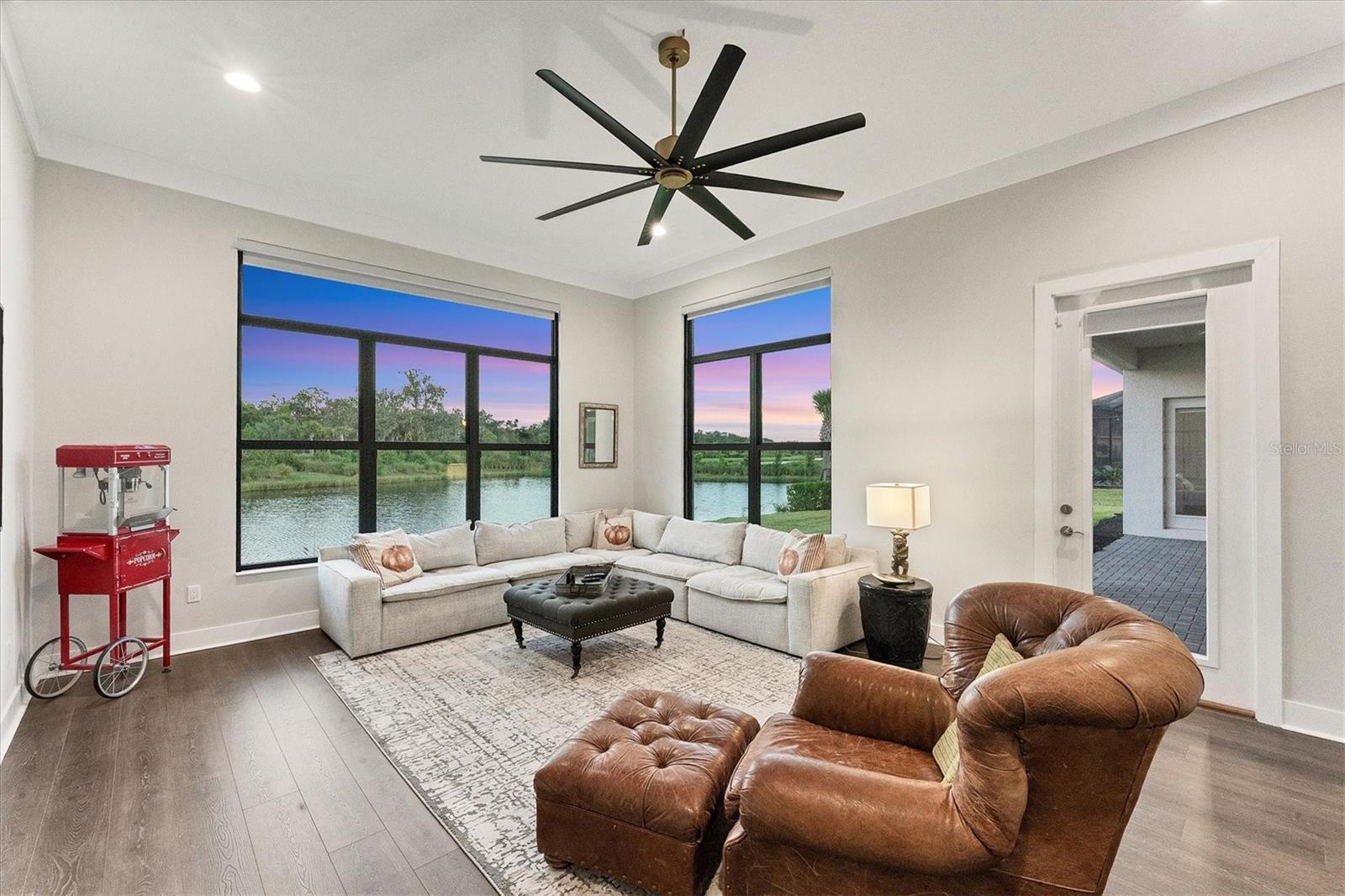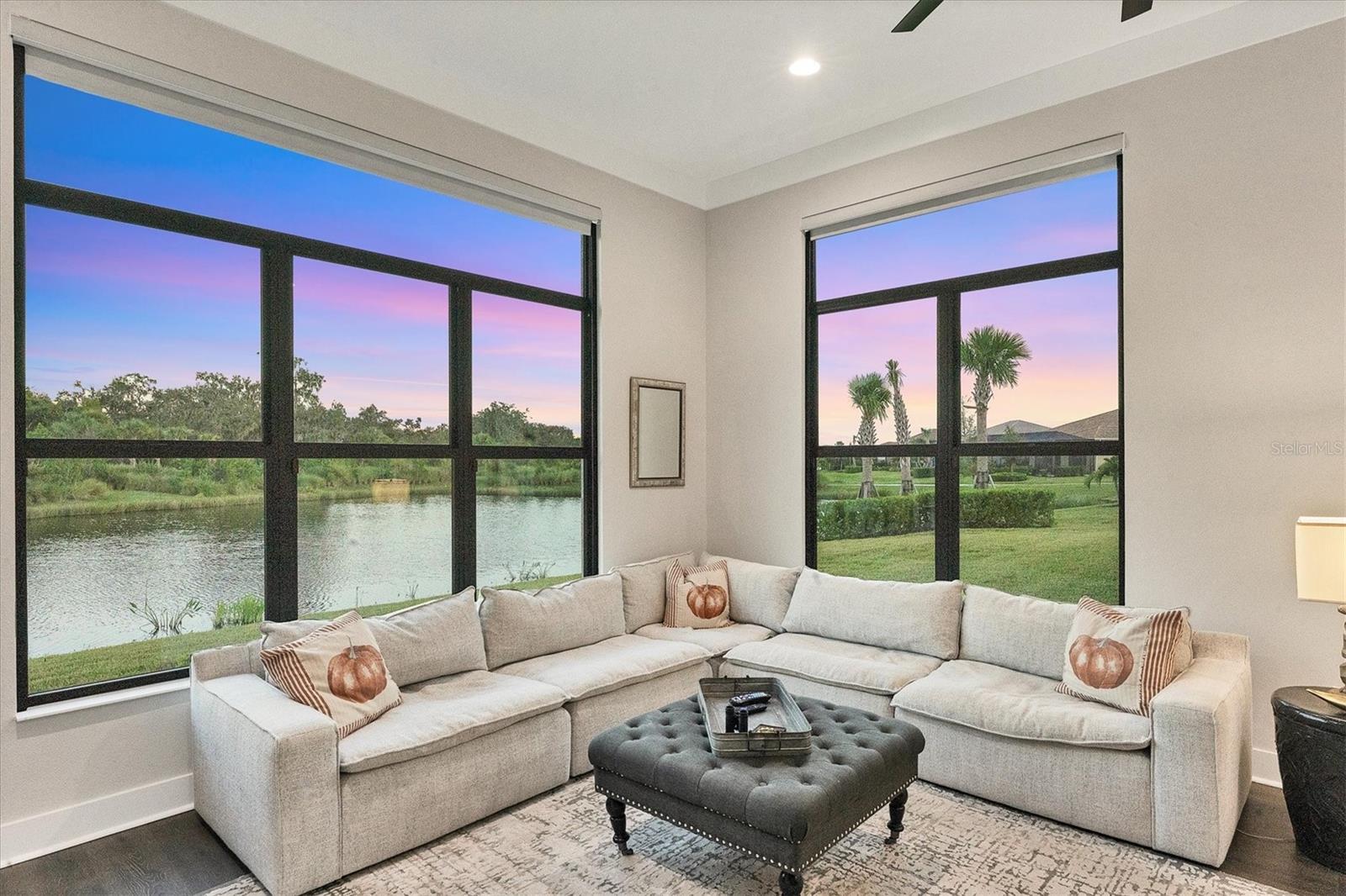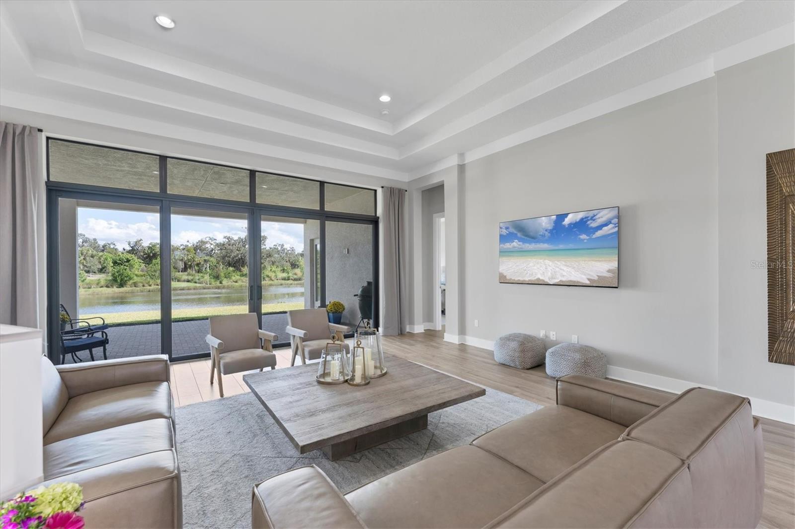 Looking for THE best views in the community? You'll discover them here, every day! Welcome to Artistry–Sarasota, where you can experience luxurious resort-style amenities, security and maintenance-free living without the CDD fees. This beautifully designed Palmer model with bonus room and four-bay garage provides storm security with impact windows and doors, concrete block construction and concrete tile roof, as well as the energy efficiency of spray foam insulation. With one of the most optimal floor plans available, this residence offers generous living spaces with ample natural light and showcases the most spectacular views in the community. Located in the coveted section of Artistry on an estate-sized lot, you will enjoy the serene and naturistic views overlooking the water as well as the green and lush preserve that borders this side of Mondrian Court. From the moment you and your guests enter through double glass doors, you’re greeted by a wall of sliding glass that invites you out to the covered lanai and breathtaking views. Continuing throughout the home, you will see countless elegant features and design on display. This luxurious residence offers spacious living areas, three-bedrooms, 4.5 baths, a private office/den, a formal dining room, great room and a designated pool bath, a large bonus room with built-in wet bar, remote shades and an exterior door to access the covered lanai. The outdoor living area provides ample space for a pool and is plumbed and wired for an outdoor kitchen. The home is equipped with several significant upgrades, from oversized modern style crown molding accentuating the 12-foot tray ceilings to gorgeous plank wood-grain tile flooring, the extended kitchen island with quartz waterfall edges, upgraded cabinetry, professional appliance suite including a natural gas cooktop with range hood, double wall ovens, built-in refrigerator, beverage center, sophisticated tile and countertops, accented by brushed hardware, tankless gas water heater, bonus bath serving as a pool bath and a rare four-bay garage. When it comes time to retreat and relax, escape to your generous primary suite with a designated space for a sitting area, exterior door with access to the covered lanai, a luxurious primary bath with large walk-in shower, garden tub, dual vanities, water closet and two walk-in closets. On the other side of the home, you will find two additional en-suite bedrooms with numerous upgrades, bonus room with wet bar, pool bath, laundry room and a half-bath for guests. In addition to all the aesthetic features, this refined residence showcases the epitome of peace, serenity and privacy. Community features and amenities include two gated entrances, huge pool, clubhouse, tennis and pickleball court, playground area and fitness center, all surrounded by tranquil, landscaped walking paths. Artistry is a maintenance-free, upscale community with no CDD fees, convenient to just about everything that makes Sarasota and Lakewood Ranch desirable, particularly the shopping, dining, entertainment, excellent schools and our destination beaches. There is an art to living well and you’ll find it here in Artistry-Sarasota!