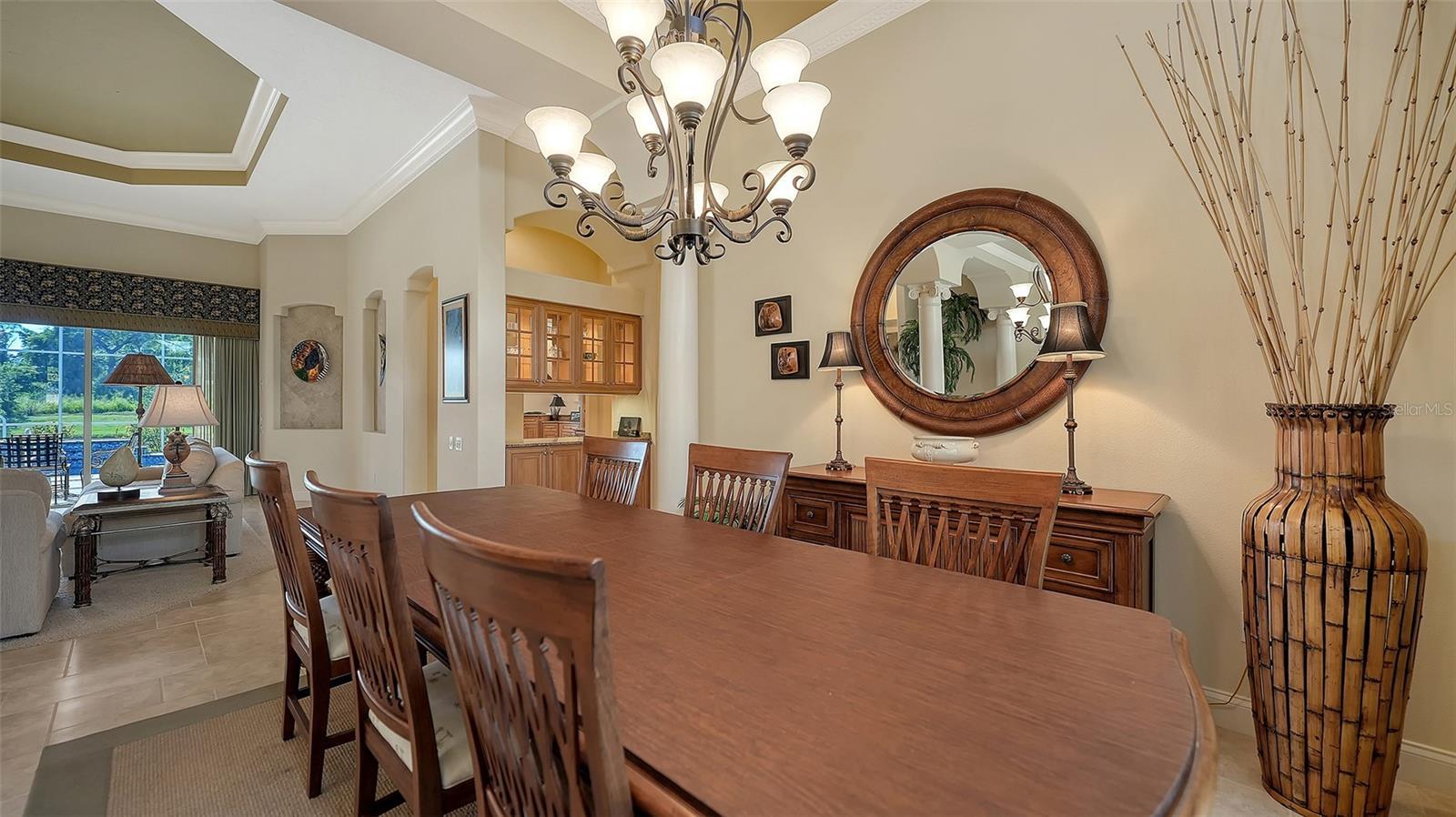 - Built-in Features, Ceiling Fans(s), Central Vaccum, Crown Molding, Dry Bar, Kitchen/Family Room Combo, Primary Bedroom Main Floor, Solid Wood Cabinets, Split Bedroom, Stone Counters, Tray Ceiling(s), Walk-In Closet(s)