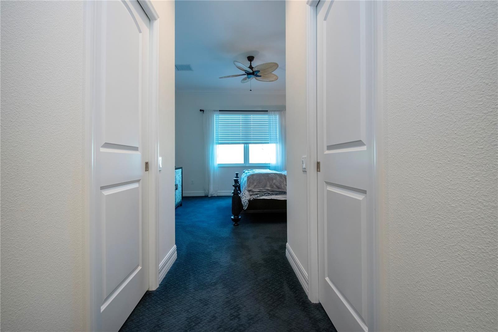 - Ceiling Fans(s), Coffered Ceiling(s), Crown Molding, Open Floorplan, Pest Guard System, Primary Bedroom Main Floor, Solid Surface Counters, Solid Wood Cabinets, Split Bedroom, Thermostat, Walk-In Closet(s), Window Treatments
