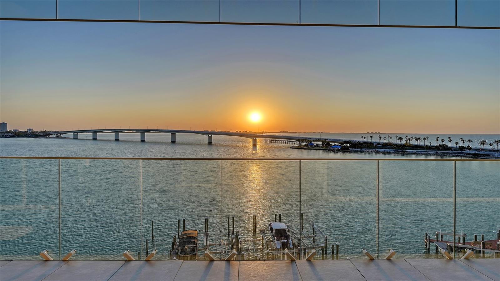 Discover the pinnacle of direct bayfront excellence blending sculptural modern form with water views. Full-floor residence at AQUA is one of only eight in Sarasota’s most exclusive boutique building found on Golden Gate Point. Perched on the sixth floor with 180° views of Sarasota Bay and the iconic Ringling Bridge, this home offers a level of elegance and customization rarely found—even in new construction. From the moment you step off your private elevator into the foyer, the residence unfolds with simple, clean lines spotlighting floor-to-ceiling 10-foot glass walls which frame the Bay & Sunsets like living artwork. More than $500,000 in curated upgrades elevate the interiors, transforming this barely lived in 4,100+ sq ft space into a truly one-of-a-kind lifestyle rarely found in Sarasota’s market. Open-concept layout lives like a single-family home with distinct entertaining areas, a stunning waterfront dining room, and a bespoke wet bar. Chef’s kitchen is a study in form and function, seamlessly integrated into the living space while offering top-tier appliances and finishes: Wolf cooktop and ovens, 2 Miele dishwashers , Sub-Zero refrigerator, Cuisines Laurier cabinetry with a 9 ft expansive island topped with striking Cielo quartzite. Private primary suite is designed as a serene escape, featuring stunning water views, custom walk-in closets uniquely designed with two separate individual sections of sleek Cuisimax poly-gloss doors and packing station. Elevated features in the spa-style bathroom include dual vanities topped with striking azure crystal marble, a soaking tub, and a large glass-enclosed shower Two generous guest suites offer en-suite privacy, while a fourth bedroom currently serves as a sleek office. With discreet concierge services found only in a 5-star boutique style building, Aqua offers an enclosed oversized private two-car garage with an EV charging station & dehumidifier, private boat dock that accommodates 36' boat + flat kayak lift, temperature-controlled wine storage/wine tasting room, fitness studio, heated pool and spa and meeting room. Be part of vibrant downtown living in a secluded quiet location.