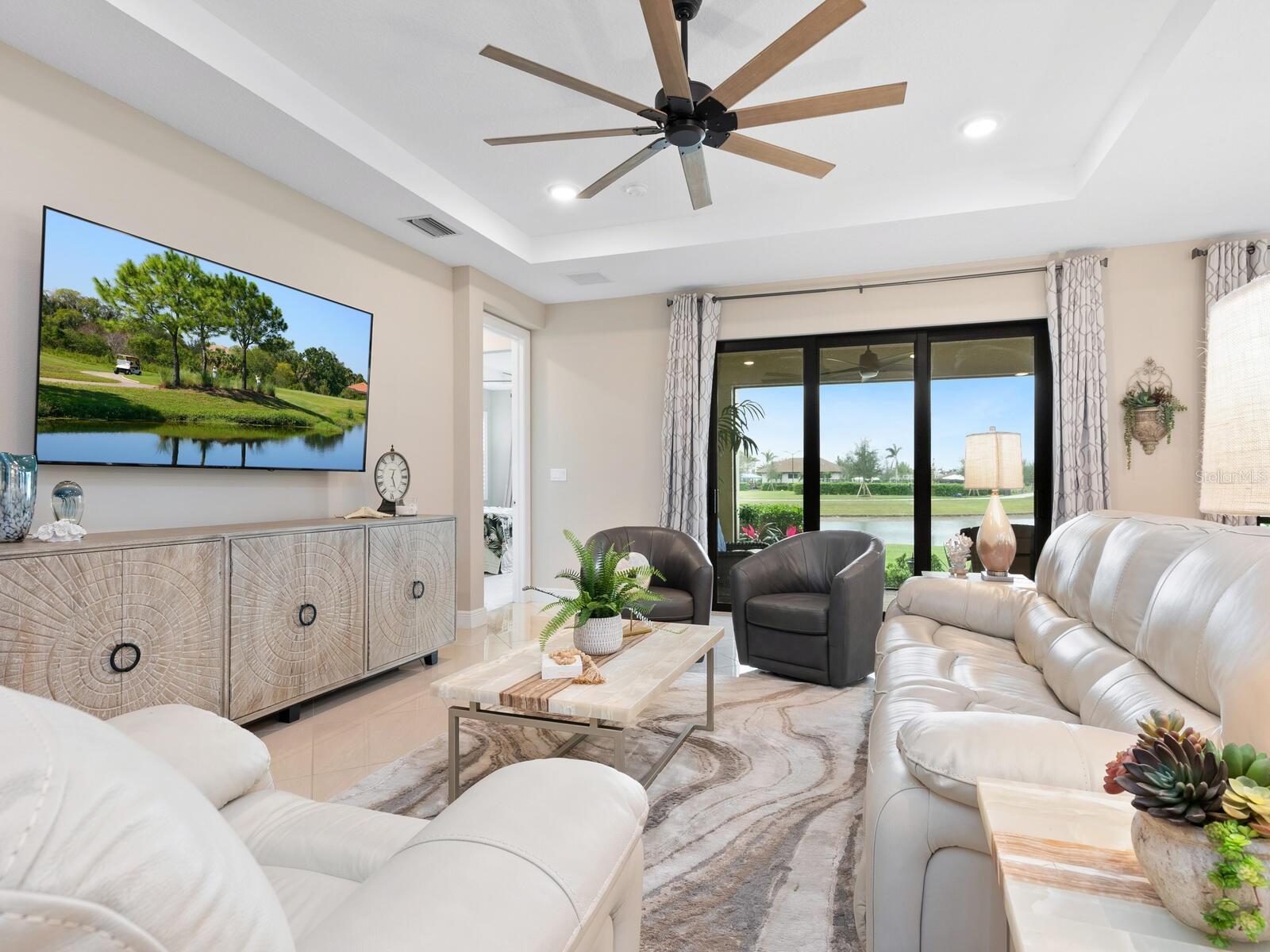 Cresswind feels like an over-55 cruise ship on land — there’s always something to do and someone to do it with. The community’s full-time Lifestyle Director keeps the calendar packed with activities and events, so you can enjoy all that Cresswind has to offer both indoors and out. Inside, you’ll find a Cresswind SmartFit Training Center, Cardio Studio, Arts & Crafts Studio, multipurpose event rooms, a lounge, game room, and plenty of social spaces and clubs. Outdoors, enjoy 8 pickleball courts, 2 tennis courts, small and large dog parks, a resort-style pool, resistance pool and spa, an event and food-truck plaza, 2 bocce courts, and even more spaces designed for connection and fun. Monthly fees include lawn maintenance, irrigation, cable, and internet — leaving you more time to relax and enjoy life. This 3-bedroom, 3-bath home with a den offers peace of mind as much as comfort. Built to the latest codes, it’s not in a flood zone, features hurricane-impact windows, and had no storm damage during the summer of 2024. Inside, thoughtful upgrades elevate every room — from the elegant porcelain tile flooring and expanded kitchen to the tray ceilings and open layout. And at the end of the day, you can unwind on the screened lanai and watch the sunset shimmer over the lake — the perfect close to another beautiful day at Cresswind.