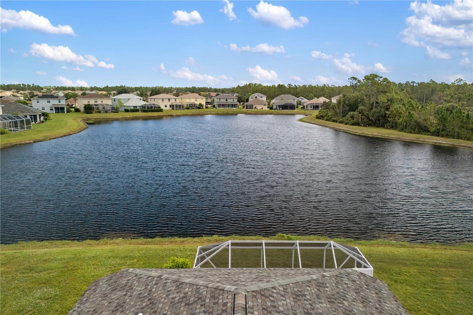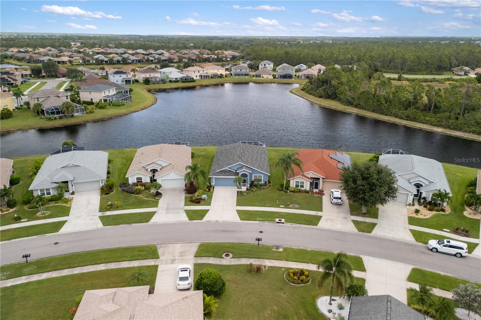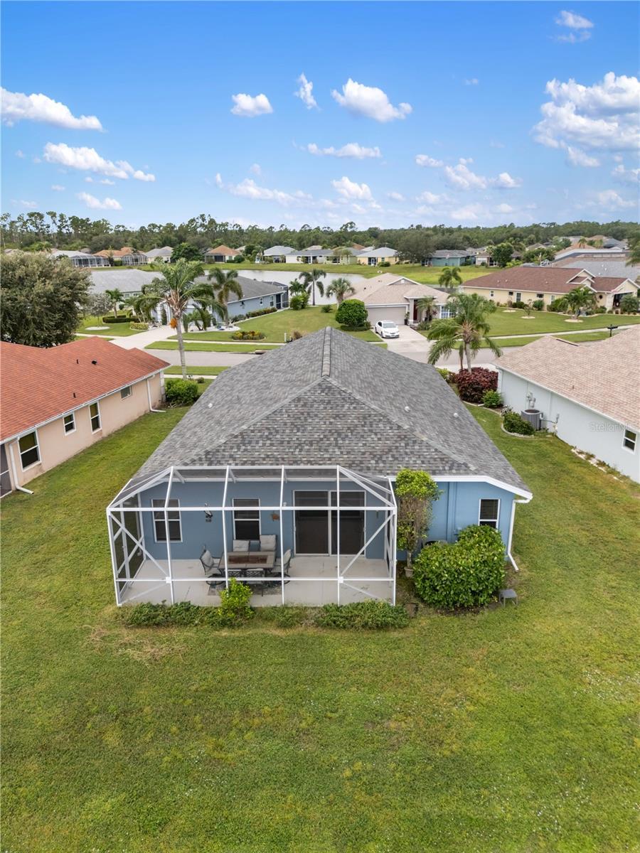 From the moment you enter this immaculate home, you’ll be greeted by gorgeous lake views which are backed by a quiet preserve that adds to your privacy. Soaring ceilings and graceful archways create an open, elegant feel. This spacious layout features 4 bedrooms, 2 full baths, and a versatile bonus room. The eat-in kitchen shines with new stainless-steel Whirlpool appliances, granite counters, real oak cabinets with crown molding, under-cabinet lighting, and a freshly installed backsplash. A built-in hallway cabinet keeps everyday items neatly organized. This home has an abundance of storage! The kitchen’s bar and dining nook are accented by new pendant lighting, and dimmer switches are installed throughout for perfect ambiance. Both bathrooms have granite counters, updated lighting, vessel sinks, and tiled showers. Easy-care, carpet-free flooring throughout: hardwood in main living areas, wood-laminate in bedrooms and bonus room, and neutral tile in wet areas. Blinds dress the windows for privacy. Smart and solid impact-rated sliding glass doors (plus some impact windows), new HVAC in 2022, roof replaced in 2020 and recently freshened landscaping make this home absolutely move in ready. Community perks abound: heated saltwater resort-style pool and hot tub, tennis, basketball, and pickleball courts, fitness center, playground, billiard room, and library—plus a full calendar of clubhouse activities. Lawn care is provided by the HOA, so you can relax and enjoy the view. Conveniently located near I-75, Wellen Park, the Braves stadium, golf, shopping, and Gulf Coast beaches.